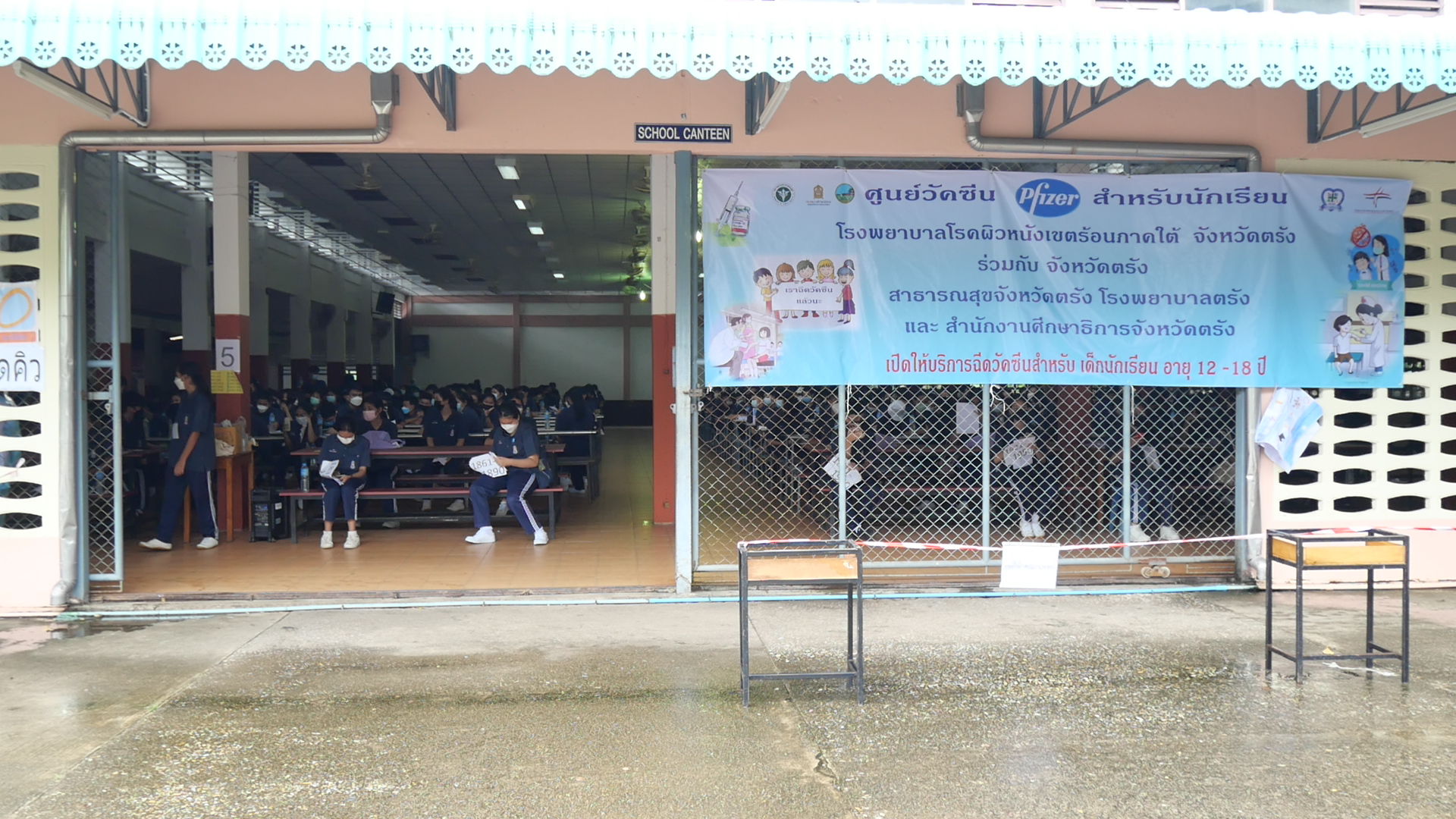 โรงเรียนสภาราชินีจังหวัดตรัง นำนักเรียนชั้นมัธยมศึกษา กว่า 2,700 คน มารับการฉีดวัคซีน Pfizer เพื่อเตรียมในการเปิดการเรียนการสอน เฉพาะชั้นมัธยมเป็นอันดับแรก ในขณะที่การฉีดวัคซีนให้กับนักเรียนเมื่อวานนี้เป็นวันแรก วัคซีนไม่มีผลกระทบต่อเด็กนักเรียนแต่อย่างใด จะมีก็เพียงอาการเวียนหัว 4 คน