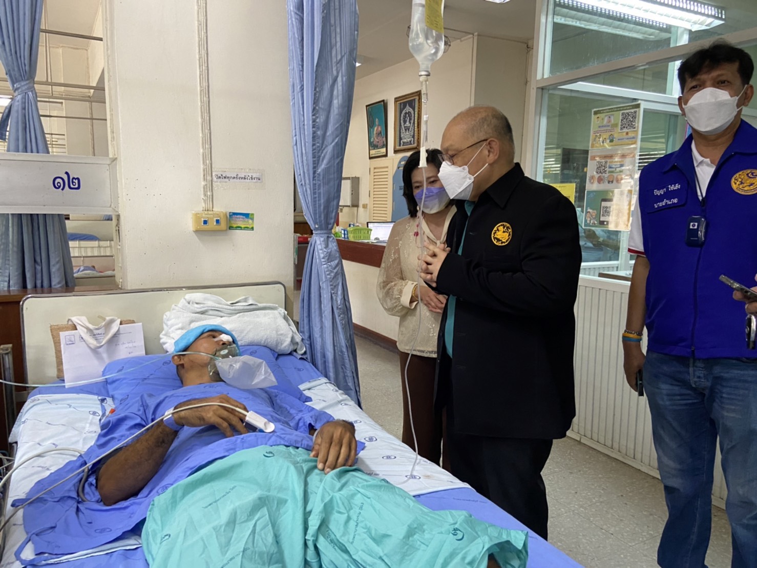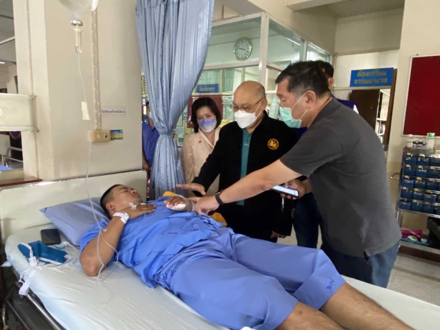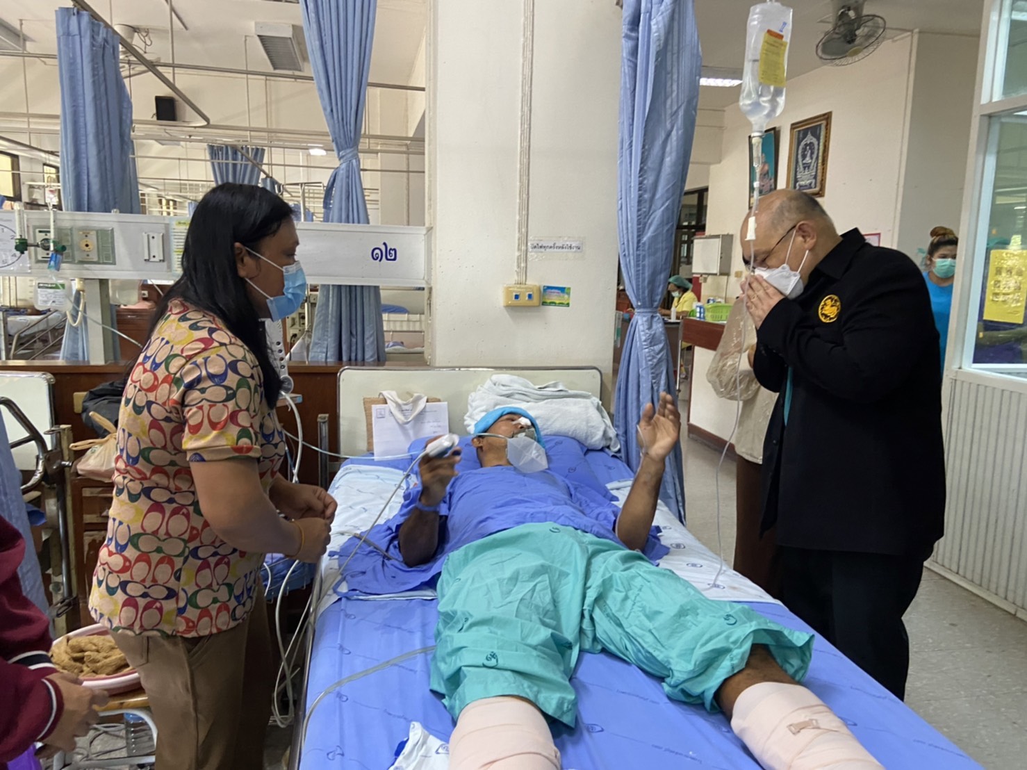 วันเสาร์ที่ 9 ตุลาคม 2564 เวลา 15.30 นาฬิกา นายชัยชาญ สิทธิวิรัชธรรม ผู้ว่าราชการจังหวัดสิงห์บุรี นางจิตติวรรณ สิทธิวิรัชธรรม นายกเหล่ากาชาดจังหวัดสิงห์บุรี ร่วมด้วย นพ.พงษ์นรินทร์ ชาติรังสรรค์ ผอ.รพ.สิงห์บุรี และนายปัญญา ใช้เฮ็ง นายอำเภอเมืองสิงห์บุรี เยี่ยมและให้กำลังใจตำรวจ ตชด. จาก จ.กาญจนบุรี ปฏิบัติหน้าที่ช่วยผู้ประสบภัยน้ำท่วมในพื้นที่จังหวัดสิงห์บุรี ที่ประสบอุบัติเหตุบริเวณ อ.บางระจัน จ.สิงห์บุรี จำนวน 3 ราย ณ โรงพยาบาลสิงห์บุรี