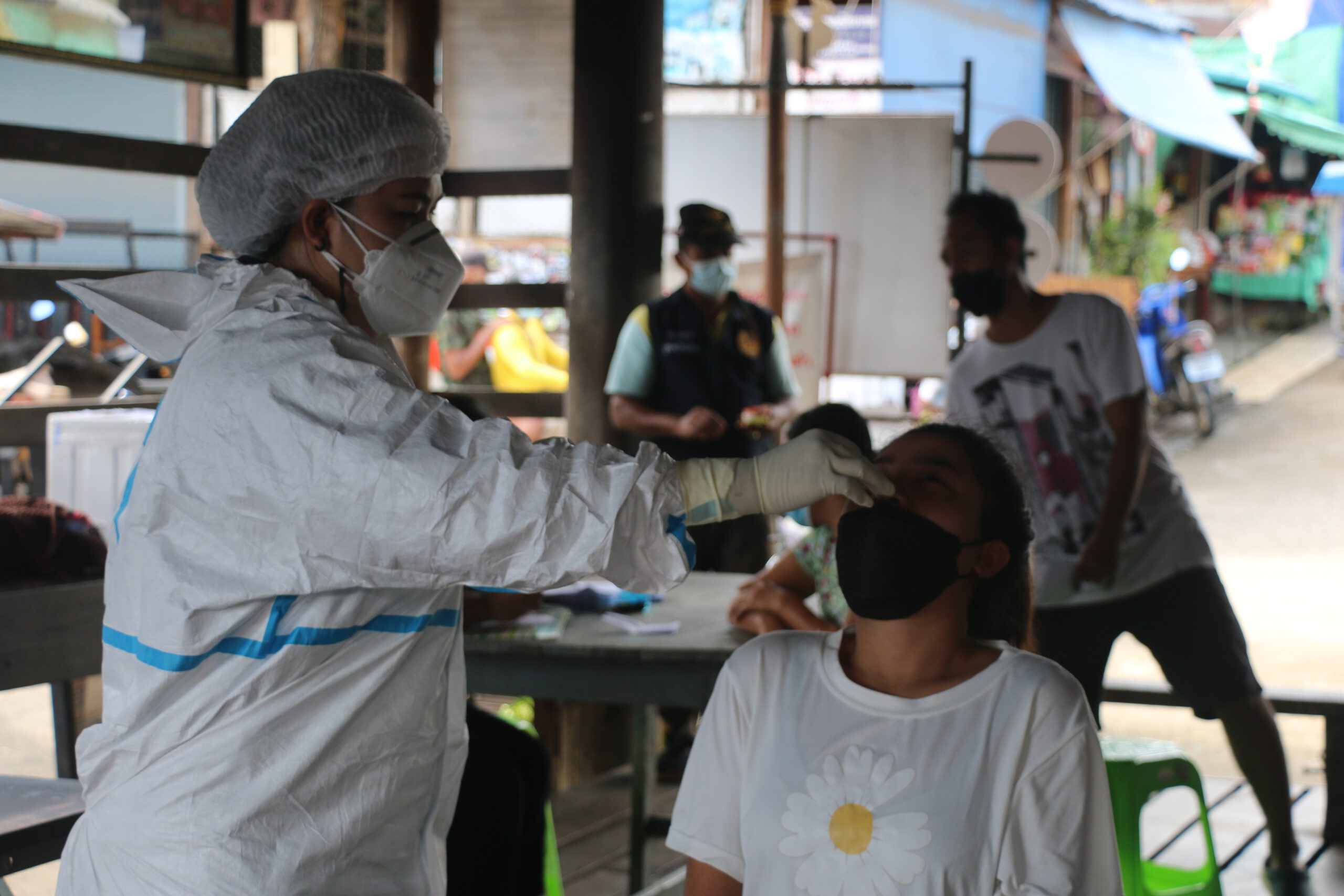 กาญจนบุรี เทศบาลตำบลวังกะ สาธารณสุขอำเภอใช้ชุดตรวจ ATK ตรวจเชิงรุกกลุ่มผู้ประการร้านค้าเชิงสะพานมอญ ทั้ง 2 ฝั่ง คนขับเรือนำเที่ยว รวมทั้งเด็กปะแป้ง บนสะพานไม้ฯ เพื่อสร้างความมั่นใจให้นักท่องเที่ยว หลังจาก ผวจ.กาญจนบุรี ประกาศเปิดท่องเที่ยว