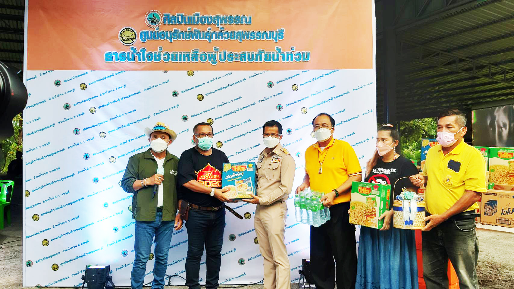 จากสถานการณ์น้ำท่วมจังหวัดลพบุรี ยังคงวิกฤต บางจุดระดับน้ำสูงกว่า 2-3 เมตร ชาวบ้านได้รับความเดือดร้อนอย่างหนัก บ้างก็ต้องออกมาอาศัยพักอยู่ริมถนน คณะสงฆ์จังหวัดสุพรรณบุรีรวมทั้งกลุ่มศิลปินและชาวสุพรรณบุรีต่างให้กำลังใจและรวบรวมสิ่งของอุปโภค บริโภค น้ำดื่มและยาสามัญประจำบ้าน ส่งต่อและให้กำลังใจพี่น้องชาวลพบุรีผ่านวิกฤตนี้ไปให้ได้ และยังมีนักท่องเที่ยวที่ทราบข่าวโครงการดีๆ ต่างทยอยนำสิ่งของไปมอบให้ พี่น้องชาวลพบุรี เพื่อเป็นการบรรเทาความเดือดร้อนในเบื้องต้น