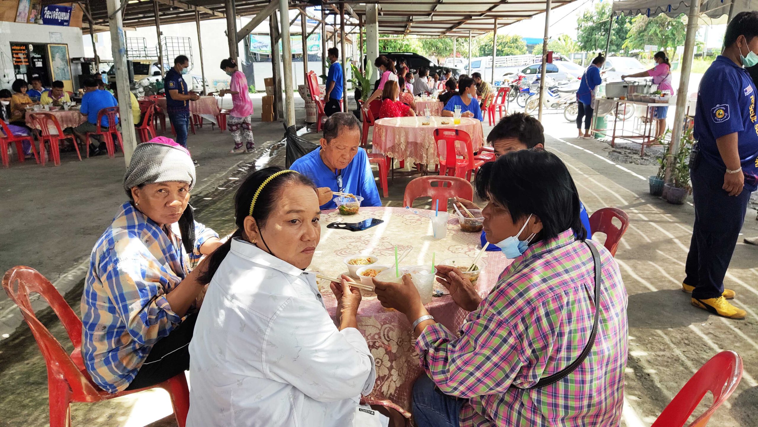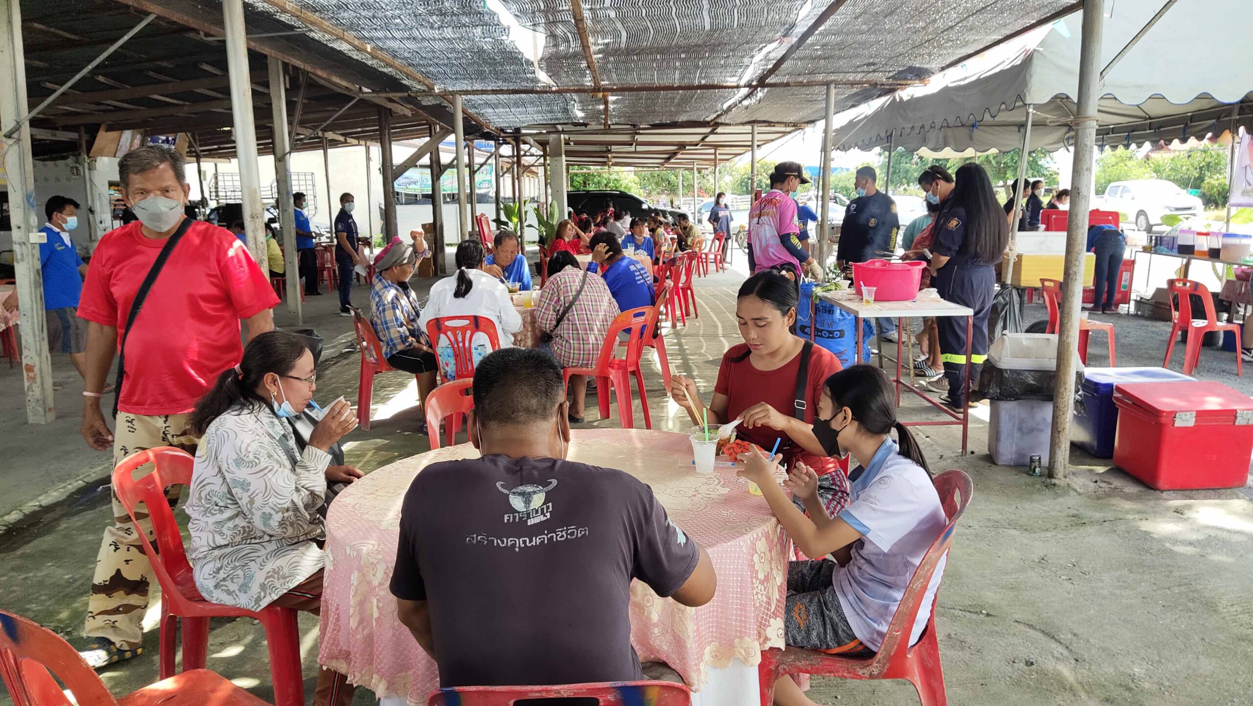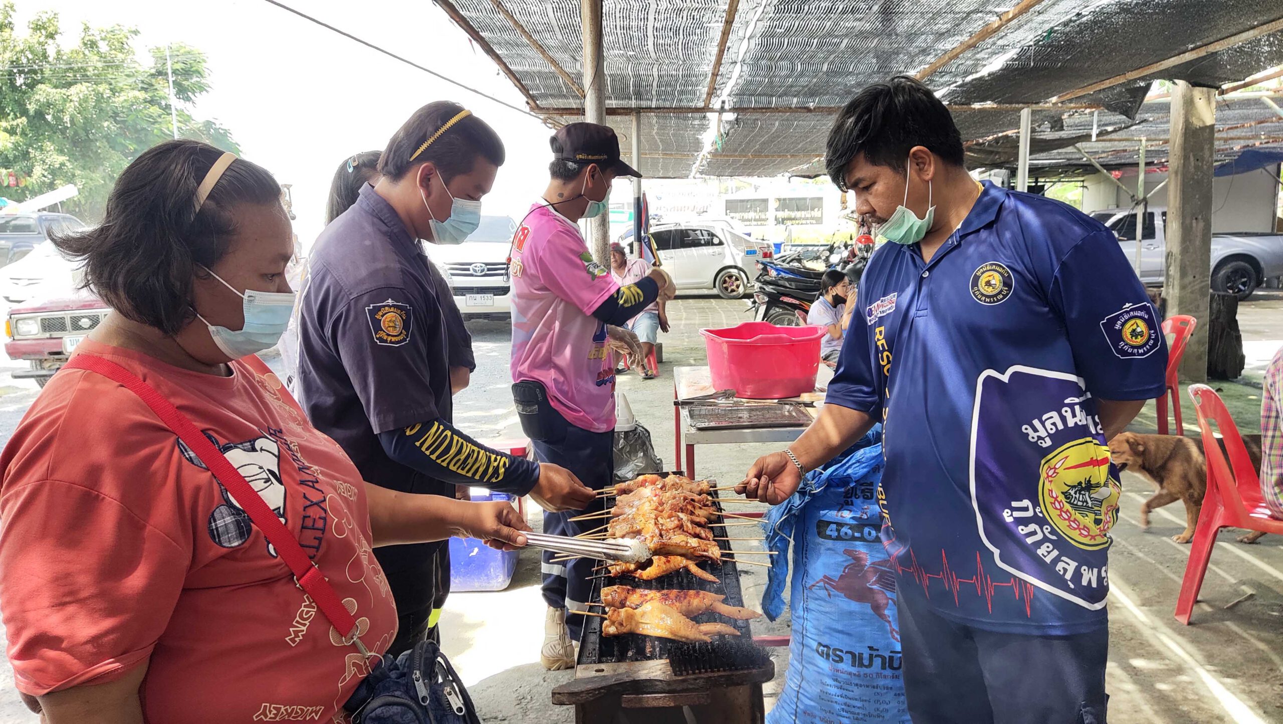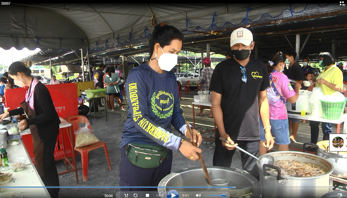 ที่ จ.สุพรรณบุรี นายวีระธนา คงใจดี เจ้าของเต็นท์รถยนต์ วีระเจริญยนต์ อ.ดอนเจดีย์อาหาร จ.สุพรรณบุรี พร้อมอาสากู้ภัยมูลนิธิเสมอกันกู้ภัยสุพรรณบุรี เขต อ.ดอนเจดีย์ ได้ตั้งเต็นท์ที่ริมถนนสายดอนเจดีย์ – สระกระโจม บริเวณสี่แยกไฟแดงหนองนิวเอน ต.ดอนเจดีย์ เพื่อจัดทำอาหาร หลายเมนู ทั้งข้าวเหนียว ส้มตำ ไก่ย่าง ขนมจีนแกงเขียวหวาน น้ำยา ขนมหวาน ก๋วยเตี๋ยวน้ำดื่ม มาบริการให้ประชาชนที่ผ่านไปมาได้รับประทานฟรี ตลอดทั้งวันโดยเริ่มตั้งแต่เวลา 08.30 น.เป็นต้นไปจนกระทั่งถึงช่วงเวลาเย็น มีพี่น้องประชาชนที่เดินทางผ่านไปมาส่วนมากจะมากันเป็นครอบครัวแวะเวียนเข้ามารับประทานกันอย่างอิ่มหนำสำราญแบบไม่อั้น