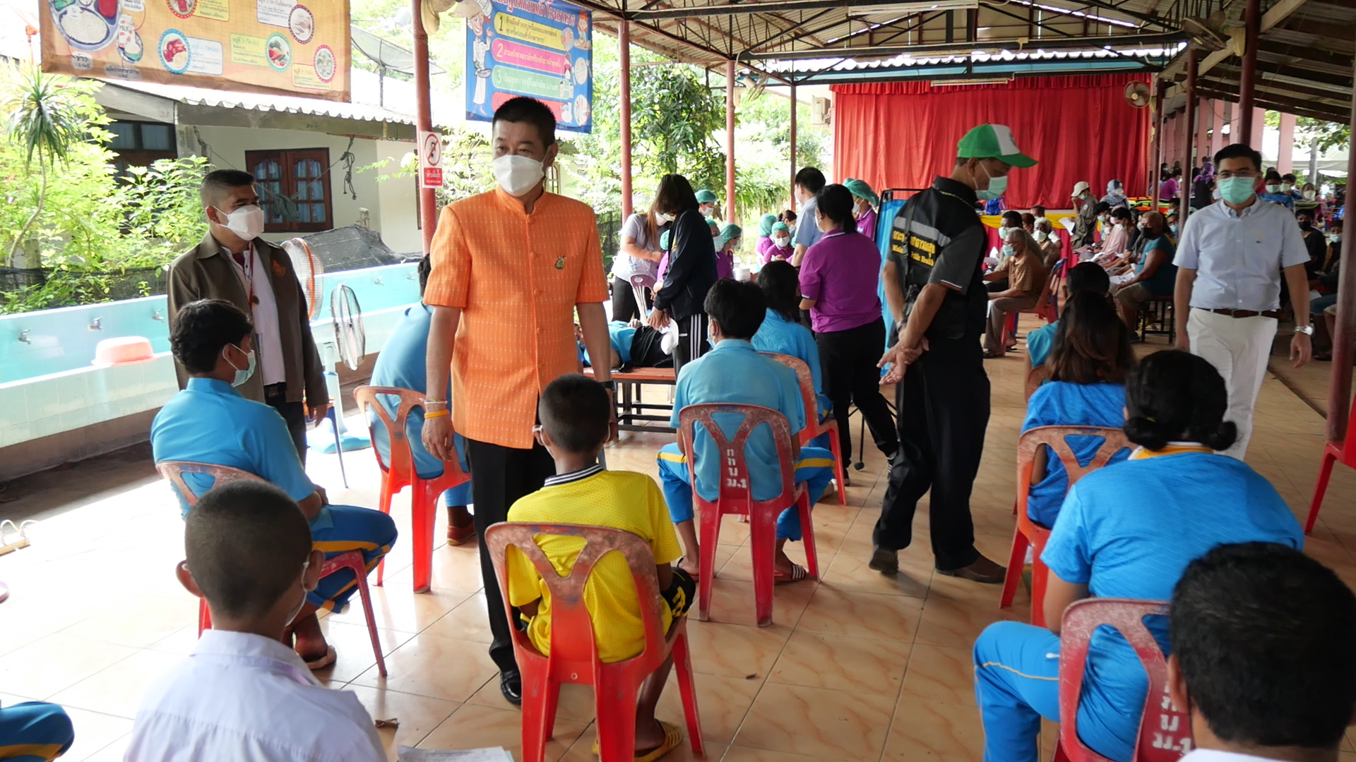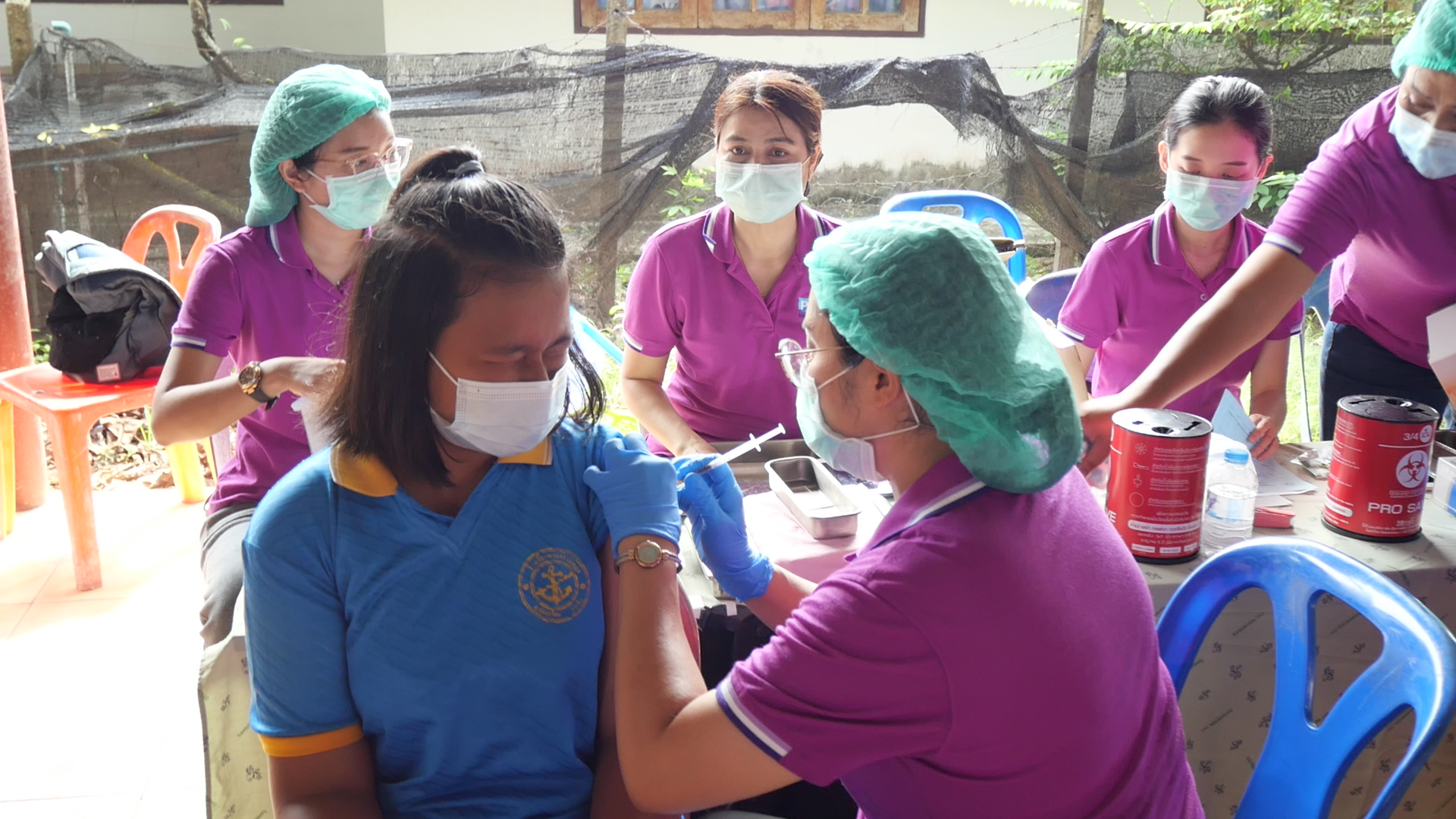 ที่โรงเรียนบ้านหาดทรายทอง ตำบลเกาะสุกร อำเภอปะเหลียน จังหวัดตรัง นายขจรศักดิ์ เจริญโสภา ผู้ว่าราชการจังหวัดตรัง พร้อมด้วยนายอำเภอปะเหลียน, นายแพทย์ตุลกานต์ มักคุ้น โฆษก ศบค.จังหวัดตรัง และเจ้าหน้าที่แพทย์ พยาบาลโรงพยาบาลปะเหลียน,เจ้าหน้าที่ฝ่ายปกครอง,และ อสม.ตำบลเกาะสุกร ร่วมกันนั่งเรือไปเกาะสุกร เพื่อนำวัคซีนไปฉีดให้กับนักเรียนและประชาชนบนเกาะสุกร เพื่อเป็นการอำนวยความสะดวกให้กับประชาชนและนักเรียนบนเกาะสุกร เพื่อที่จะได้ไม่ต้องเสียเวลาในการนั่งเรือขึ้นไปบนฝั่ง เพื่อรับการฉีดวัคซีนและในวันนี้จะฉีดวัคซีนอีก 900 กว่าคน ทางจังหวัดตรังตั้งเป้าหมายการฉีดวัคซีนของประชาชนบนเกาะประมาณ 70 เปอร์เซ็นต์ จึงจะเปิดการท่องเที่ยว การฉีดวัคซีนในครั้งนี้เป็นเกาะแรกจาก 3 เกาะที่ต้องเร่งรณรงค์ในการฉีดวัคซีน เนื่องจากเกาะสุกรเป็น 1 ใน 3 เกาะ ที่ทางจังหวัดตรังจะเปิดให้มีการท่องเที่ยวหรือตรังแซนด์บ๊อกซ์ ทั้งนี้ประชาชนและให้นักเรียนให้ความมือเป็นอย่างดีและต้องการที่จะฉีดวัคซีนเป็นอย่างมาก ประชากรบนเกาะสุกรมีกว่า 2 พันคน ที่ผ่านมาฉีดวัคซีนไปแล้วกว่าพันคนหรือประมาณ 50 เปอร์เซ็นต์