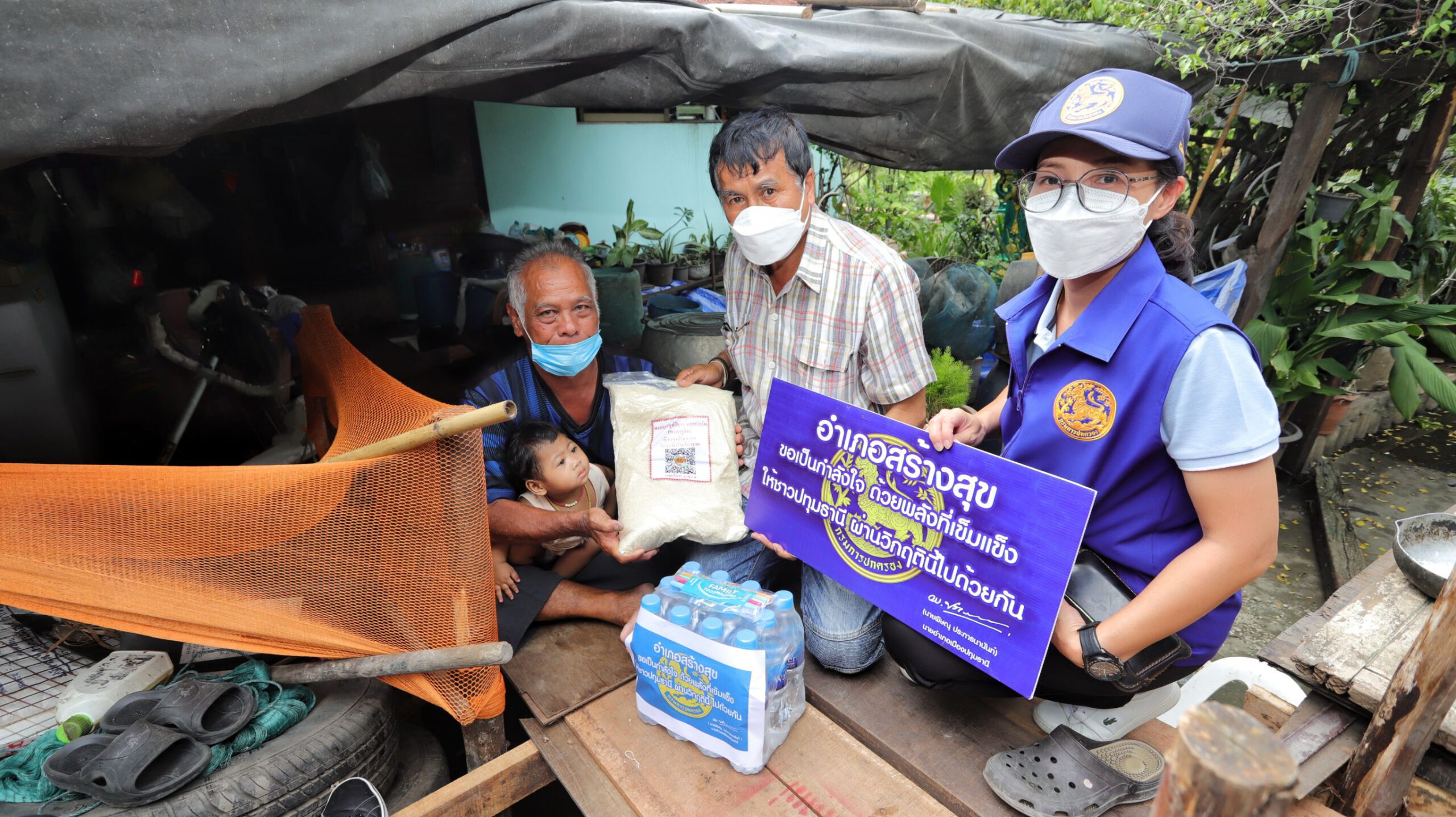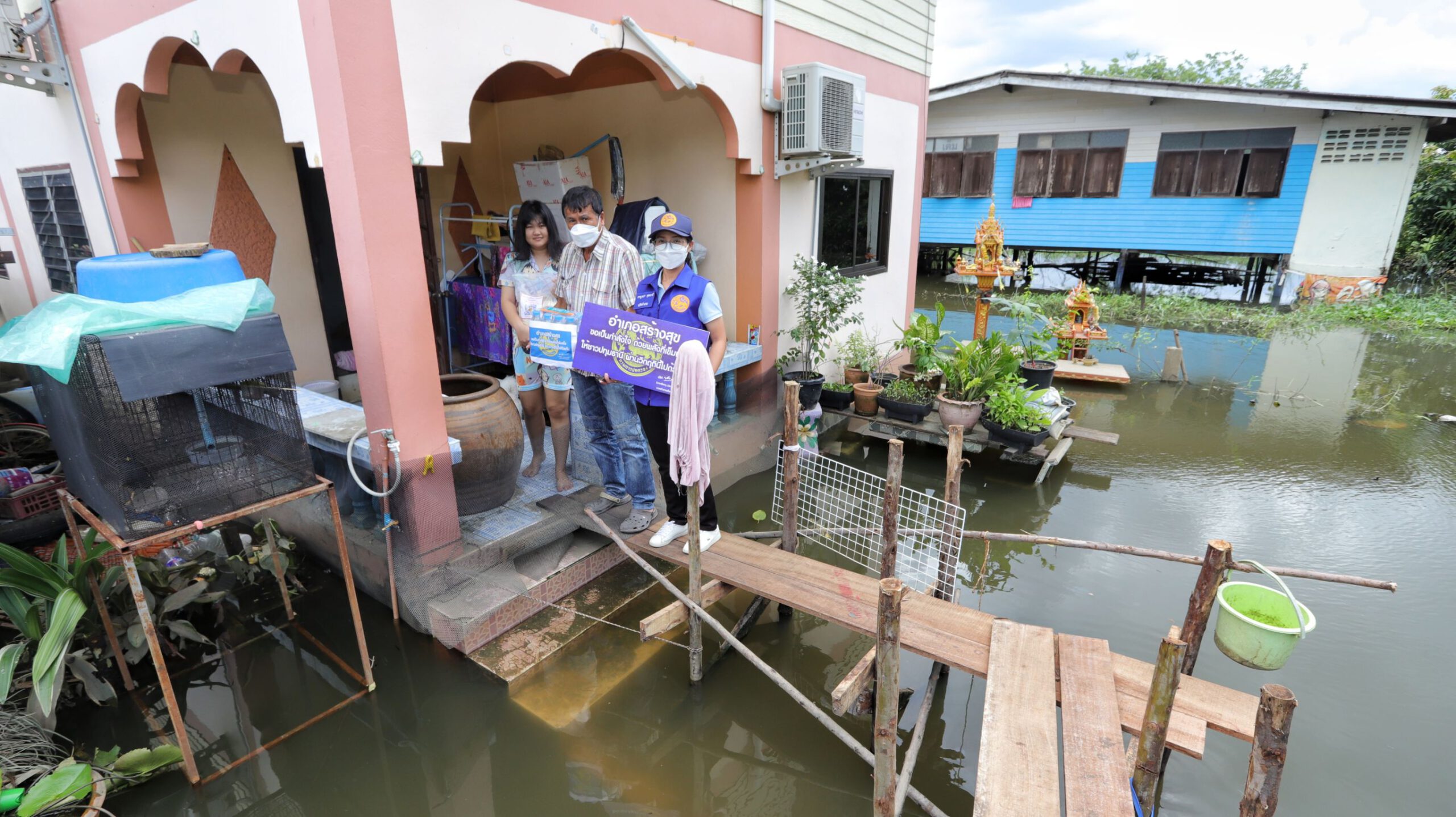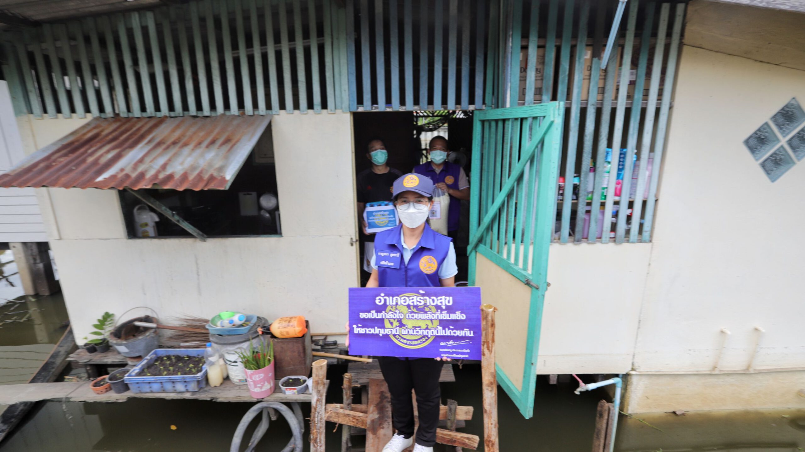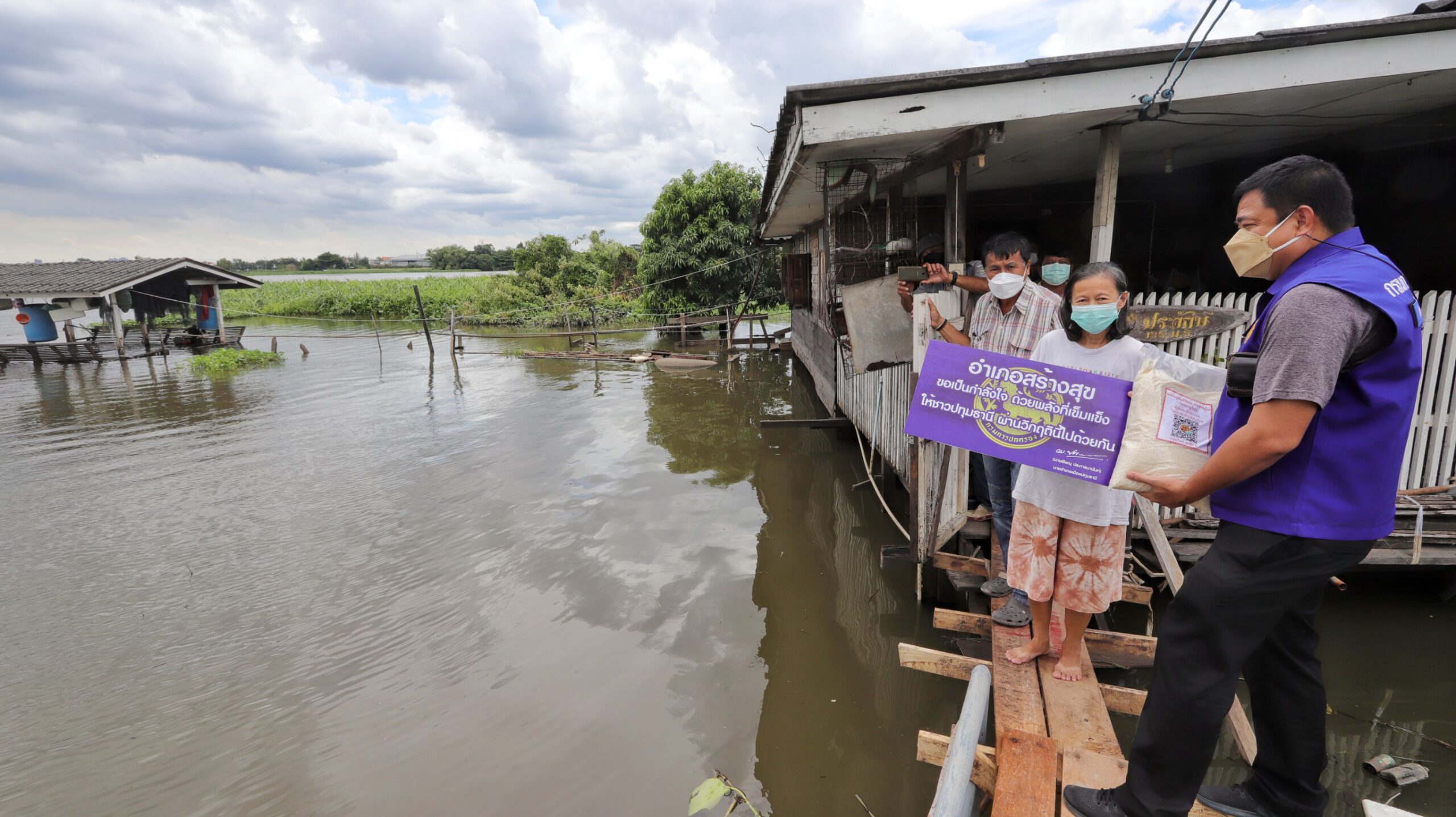 ช่วยต่อเนื่อง นอภ.เมืองปทุมธานีลุยเคาะประตู มอบข้าวสาร น้ำดื่ม ชาวบ้านริมน้ำ สู้ภัยน้ำท่วม