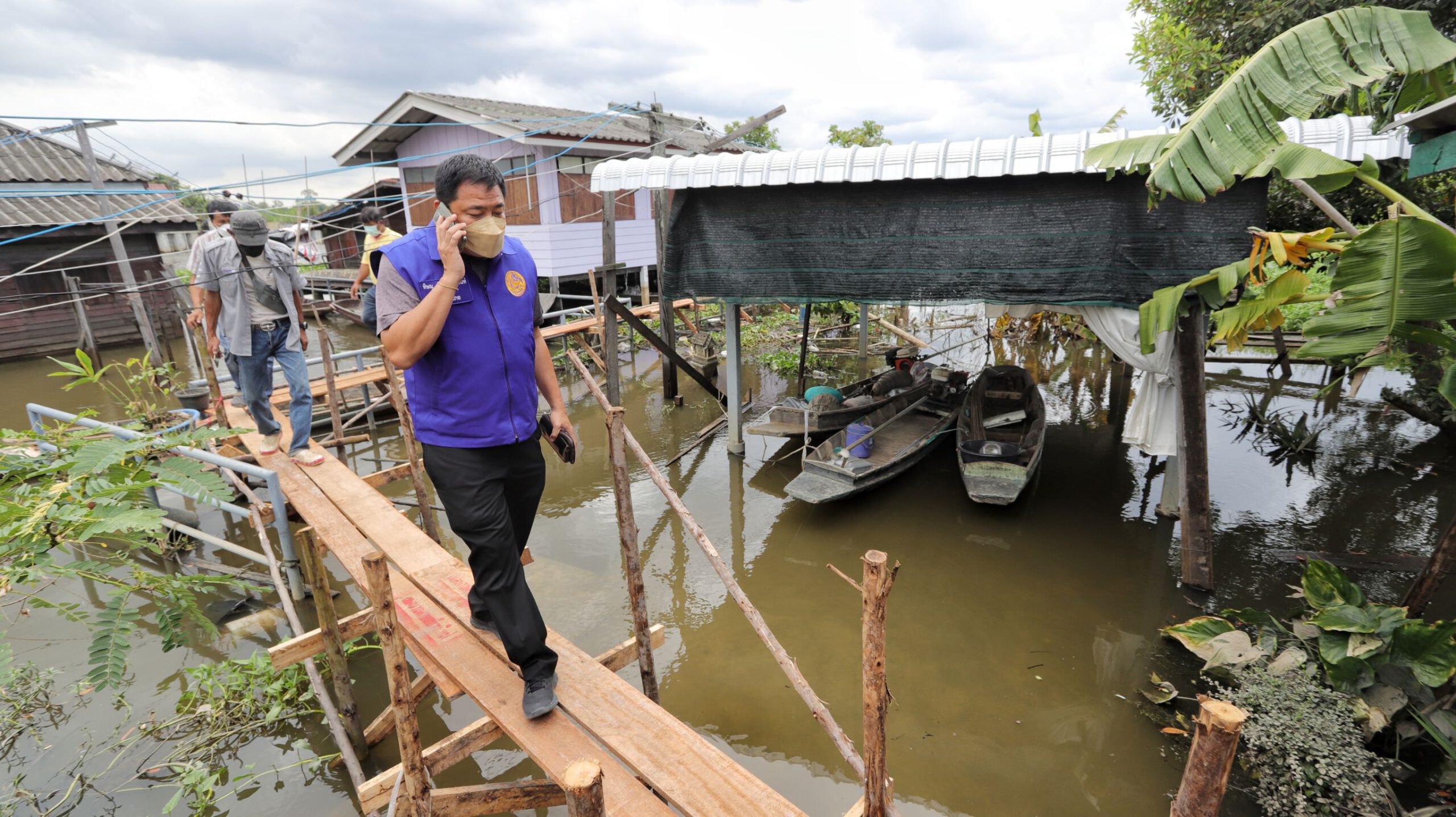 นายสมบูรณ์ ปานย้อย นายกเทศมนตรีตำบลบ้านใหม่ กล่าวว่า เทศบาลตำบลบ้านใหม่ ได้สร้างสะพานไม้เดินทางเท้าสูง 2.00 เมตร ระยะทางยาวกว่า 150 เมตร หลังระดับน้ำในแม่น้ำเจ้าพระยาไหลเข้าท่วมบริเวณชุมชน หมู่ที่5 ซึ่งส่วนใหญ่บ้านปลูกติดริมแม่น้ำเจ้าพระยา ระดับน้ำท่วมสูง ชาวบ้านต้องใช้เรือพายในการเดินทางเข้า-ออกชุมชน