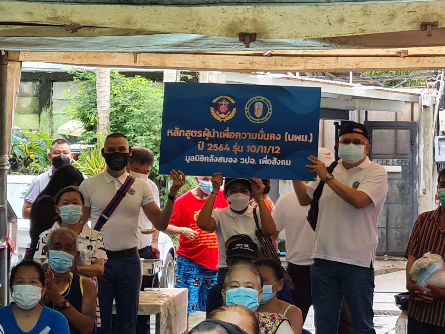 วันนี้ (17 ต.ค.64) คณะนักศึกษาหลักสูตรผู้นำพอเพียงเพื่อความมั่นคง (นพม.) ประจำปี 2564 รุ่นที่ 10 11 และ 12 จัดกิจกรรมกลุ่มสัมพันธ์และ CSR ณ ชุมชนบ้านมั่นคงสวนพลู เขตสาทร กรุงเทพฯ โดยมีวัตถุประสงค์เพื่อมอบเงินบริจาค สิ่งของ เช่น ข้าวสาร ไข่ไก่ ฯลฯ รวมถึงร่วมกันประกอบอาหาร ณ ครัวกลางของชุมชน คือ เมนูแกงเขียวหวานลูกชิ้นปลากราย ข้าว ขนมจีน เพื่อแจกจ่ายคนในชุมชนที่ได้รับผลกระทบจากการแพร่ระบาดของเชื้อไวรัสโคโรนา 2019 (โควิด-19) และในกิจกรรมดังกล่าวได้รับเกียรติจาก พลตรีกิตติ คงสมบัติ รองผอ.หลักสูตร และคณะทีมอาจารย์ประจำหลักสูตร เข้าร่วมกิจกรรมครั้งนี้อีกด้วย