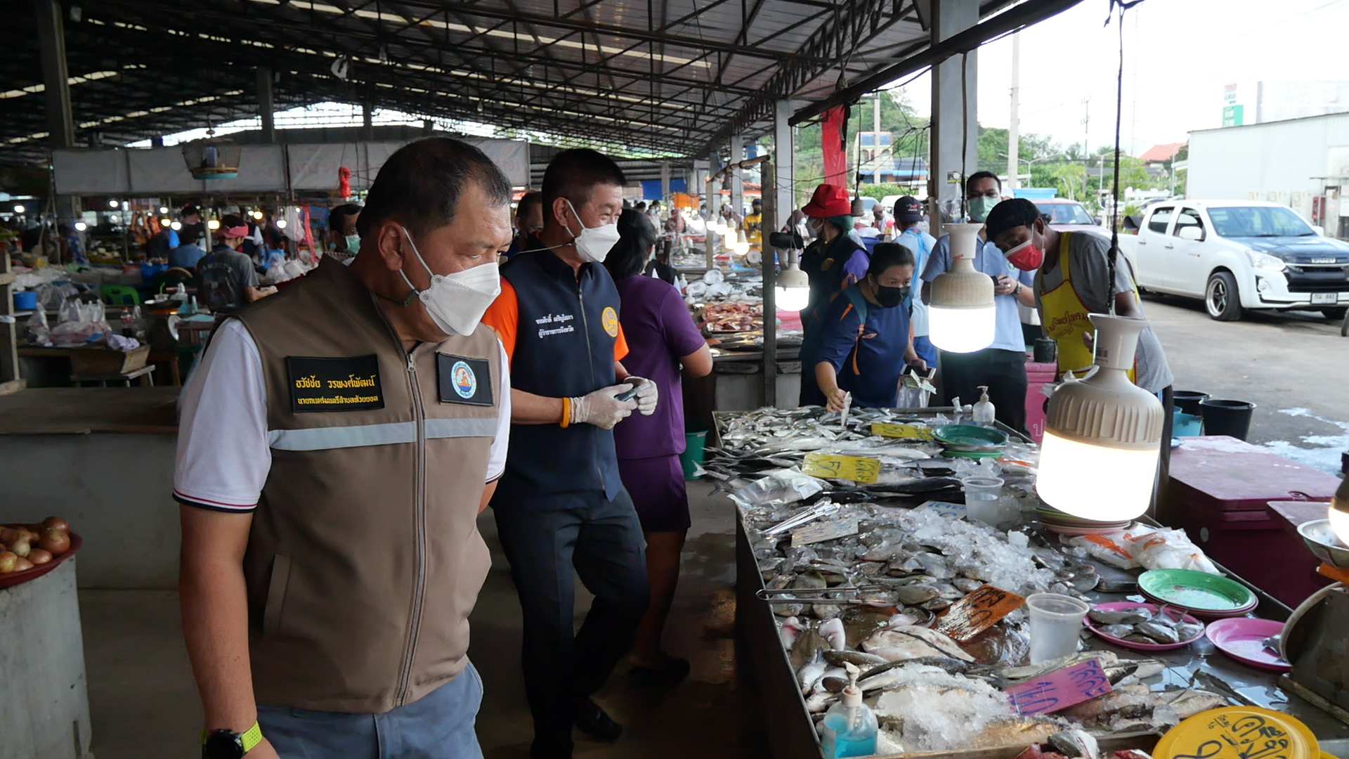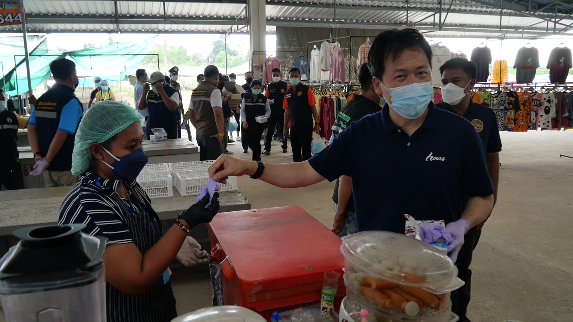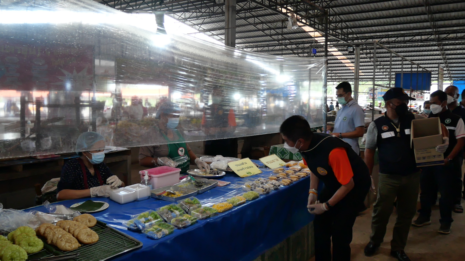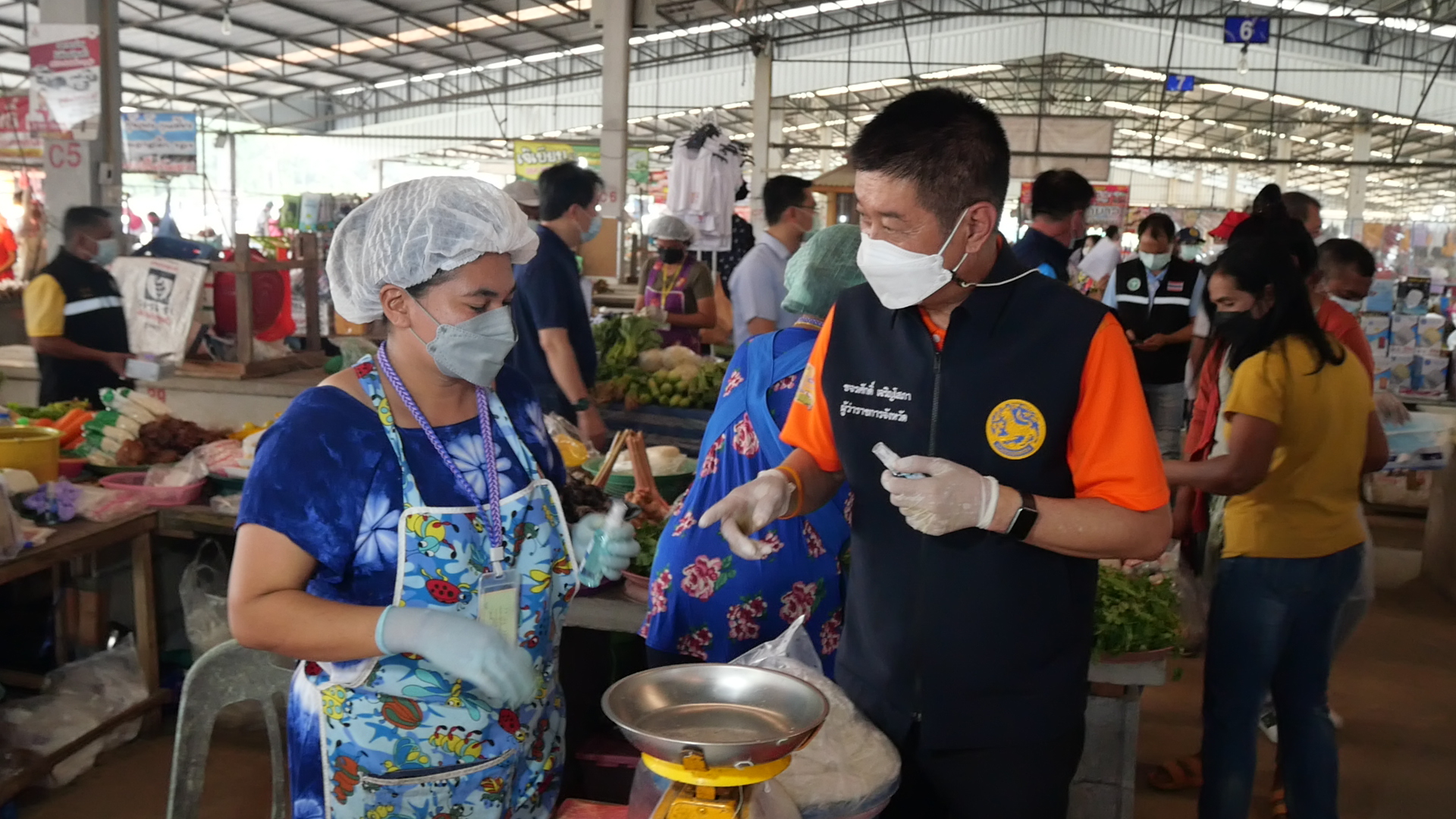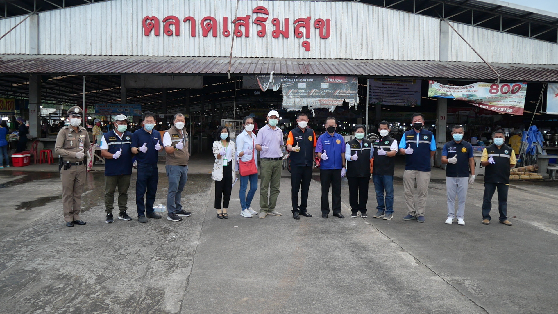 ตรัง ผู้ว่าฯพร้อมคณะ ลงพื้นที่เดินตลาดเสริมสุข(ตลาดนัดควนหนังขำ) เยี่ยมให้กำลังใจพ่อค้าแม่ค้า พร้อมแจกแอลกอฮอล์ หน้ากากอนามัย และถุงมือ ชื่นชมเจ้าของตลาด และประชาชนที่ปฏิบัติตามมาตรการป้องกันโควิด-19