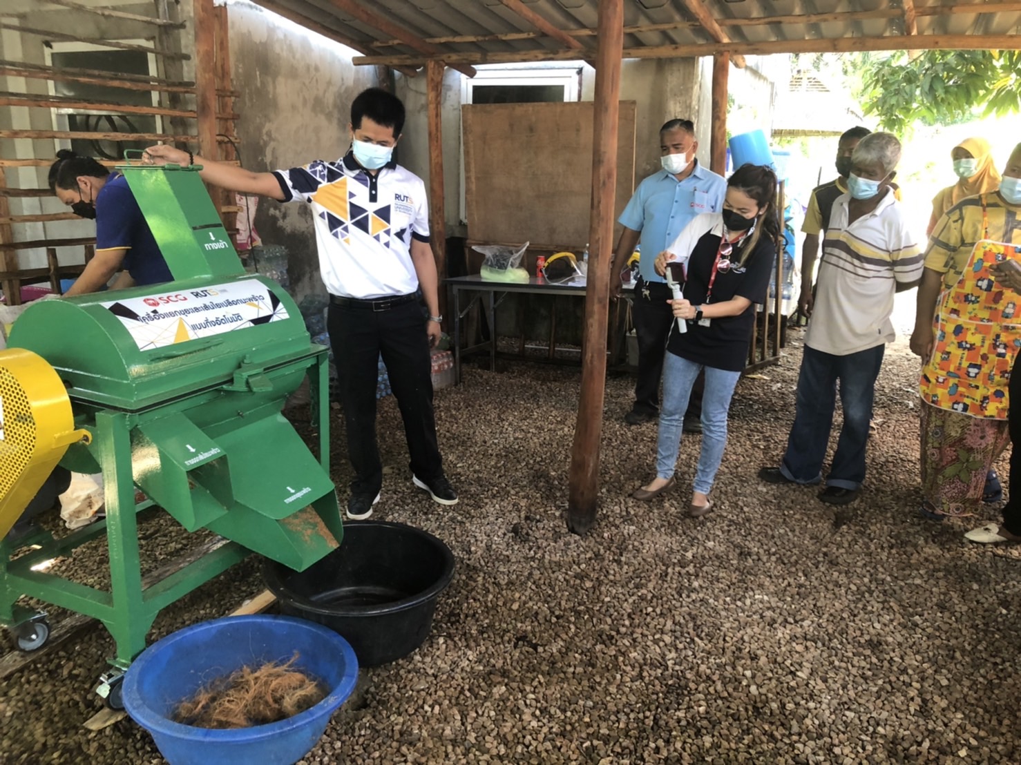 ผศ.วรพงค์ บุญช่วยแทน ผู้อำนวยการสำนักการจัดการนวัตกรรมและถ่ายทอดเทคโนโลยี ลงพื้นที่ถ่ายทอดเทคโนโลยีและส่งมอบนวัตกรรมเครื่องแยกขุยและเส้นใยมะพร้าวกึ่งอัตโนมัติ ซึ่งได้รับการสนับสนุนจาก บริษัท SCG (ทุ่งสง) จำกัด ดำเนินงานภายใต้โครงการบริการทางวิชาการ คณะวิศวกรรมศาสตร์ มทร.ศรีวิชัย ณ ชุมชนบ้านมดตะนอย ตำบลเกาะลิบง อำเภอกันตัง จังหวัดตรัง ซึ่งชุมชนบ้านมดตะนอย ตำบลเกาะลิบง อำเภอกันตัง จังหวัดตรัง เป็นชุมชนที่มีต้นมะพร้าวเยอะมาก หากต้องปอกมะพร้าวด้วยมือ ต้องใช้กำลังคนมาก และเปลือกมะพร้าวก็ไม่สามารถนำมาใช้ประโยชน์ต่อได้ เพราะตามหลักการทำงานของชาวบ้านคือ การขายมะพร้าวที่ปอกแล้ว ซึ่งเส้นใยมะพร้าวเมื่อแยกออกมาจากเปลือกแข็ง สามารถนำมาใช้ประโยชน์และสร้างรายได้เสริมให้กับชาวบ้านในชุมชนได้อีกหนึ่งช่องทาง