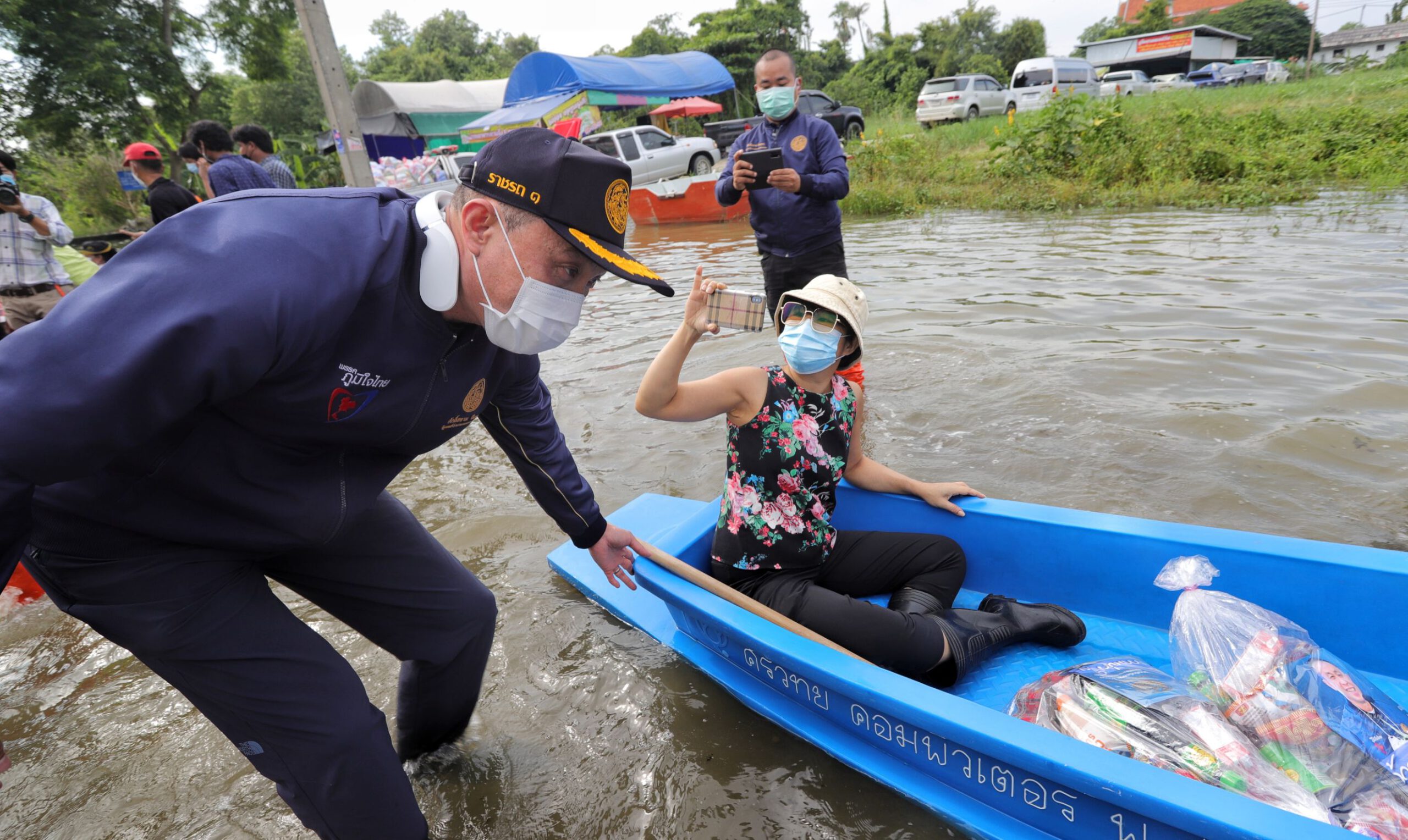 วันที่21 ต.ค.64เวลา 14.30 น. นายศักดิ์สยาม ชิดชอบ รัฐมนตรีว่าการกระทรวงคมนาคม พร้อมคณะผู้บริหารกระทรวงคมนาคม ลงพื้นที่ตรวจเยี่ยมให้กำลังใจประชาชน พร้อมมอบถุงยังชีพให้กับประชาชนผู้ประสบอุทกภัยและตรวจเส้นทางคมนาคมที่ได้รับความเสียหายจากอุทกภัย ในพื้นที่จังหวัดปทุมธานี โดยมี นายณรงค์ศักดิ์ โอสถธนากร ผู้ว่าราชการจังหวัดปทุมธานี นายดรณ์ สมิตะเกษตริน ปลัดจังหวัดปทุมธานี นางสาวธนิยา นัยพินิจ หัวหน้าสำนักงานจังหวัดปทุมธานี นายมนตรี ลังกาพินธุ์ นายอำเภอสามโคก นายชาญ พวงเพ็ชร์ อดีตนายกอบจ.ปทุมธานี นายพิษณุ พลธี สส.เขต6 ปทุมธานี นายอนาวิล รัตนสถาพร สส.เขต3ปทุมธานี นางพรพิมล ธรรมสาร สส.เขต5 ปทุมธานี หัวหน้าส่วนราชการและหน่วยงานที่เกี่ยวข้องเข้าร่วมลงพื้นที่ว่าการอำเภอสามโคก (หลังเก่า) อำเภอสามโคก จังหวัดปทุมธานี