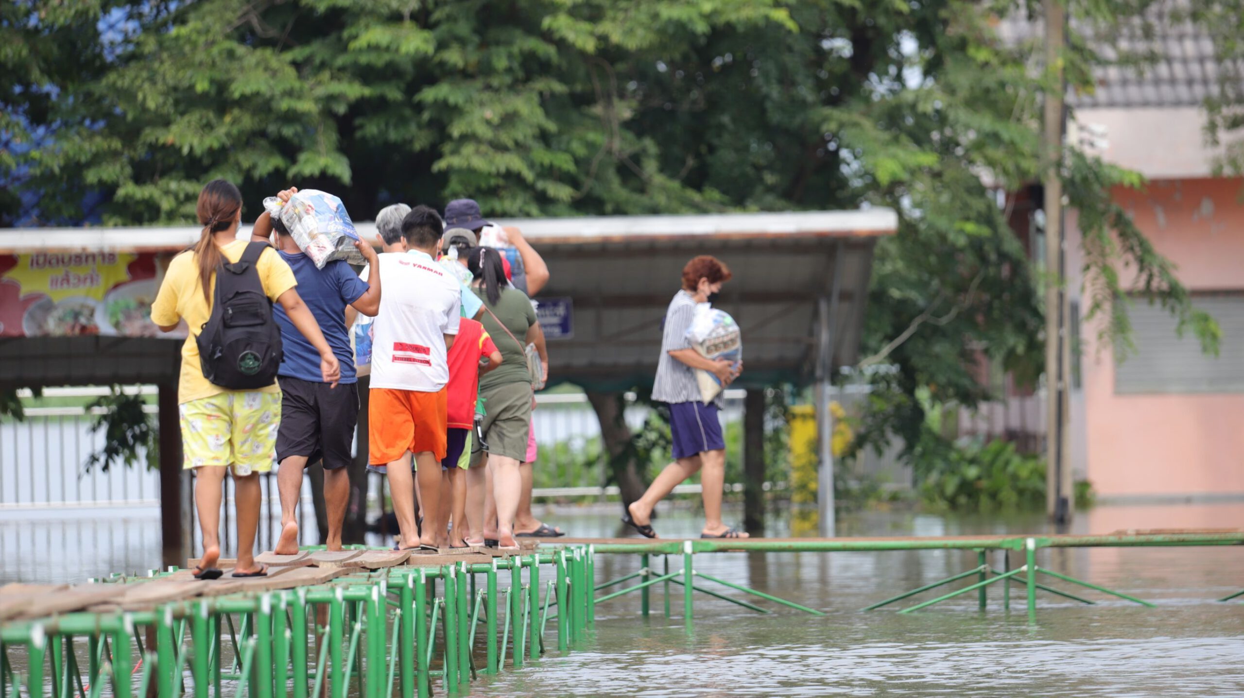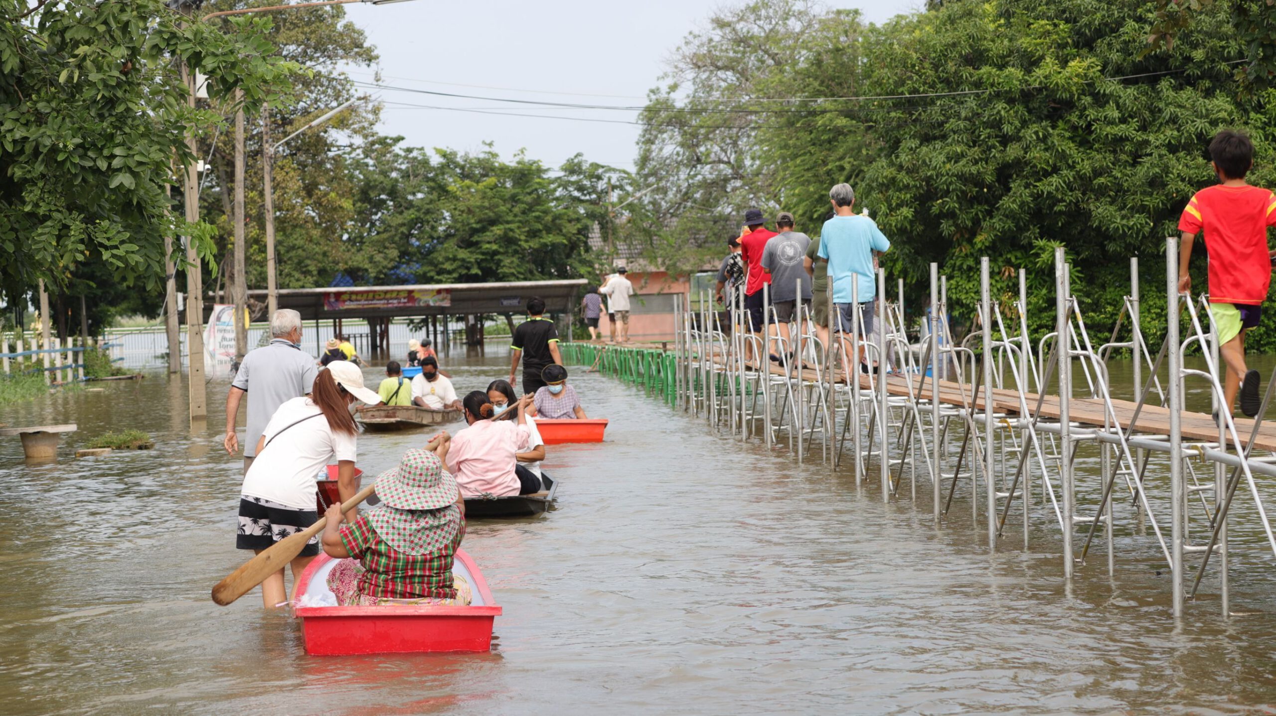 ทั้งนี้จังหวัดปทุมธานี ได้รับผลกระทบจากแม่น้ำเจ้าพระยาขึ้นสูงเอ่อล้นตลิ่งเวลาฤดูน้ำจะส่งผลกระทบอยู่ 2 อำเภอ คือ อำเภอเมืองปทุมธานี และอำเภอสามโคก ในส่วนของอำเภอสามโคก มีประชาชนได้รับผลกระทบอยู่นอกคันกั้นน้ำหรือริมตลิ่ง 11 ตำบล 31 หมู่บ้าน จำนวน 3,300 ครัวเรือน โดยภาครัฐร่วมกับผู้นำท้องถิ่น ได้ช่วยการสร้างสะพานไม้เป็นทางเดินให้ กับประชาชนใช้สัญจรและประชาสัมพันธ์แจ้งเตือนระดับน้ำ แจ้งเตือน วิธีใช้ไฟฟ้าอย่างปลอดภัย เมื่อต้องใช้ขณะเกิดน้ำท่วม