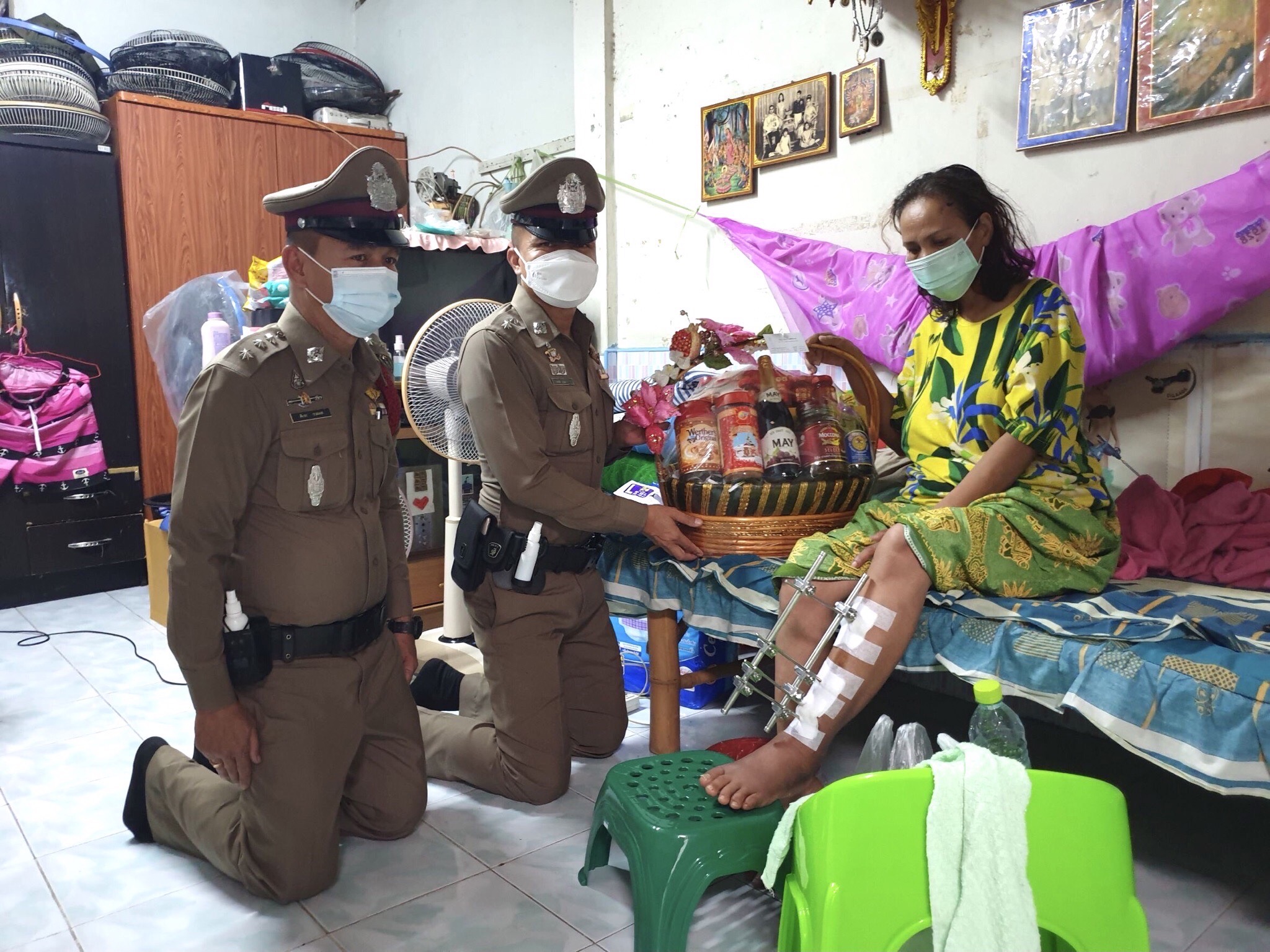 วันที่21 ต.ค.64 พ.ต.อ.ธนากร วงศ์สิริลักษณ์ ผกก.สภ.เมืองสมุทรสาคร ได้มอบหมายให้ พ.ต.ท.วรศิศธิ์ อุ่นเธียมโสม สว.(สอบสวน)สภ.เมืองสมุทรสาคร และ ร.ต.อ.ดิเรก รวมผล รอง สวป.สภ.เมืองสมุทรสาคร ตรวจเยี่ยมให้กำลังใจ รายงานความคืบหน้า พร้อมทั้งชี้แจงขั้นตอนการสอบสวนคดีจราจร ให้กับ น.ส.เสงี่ยม. ตุมกา อายุ 55 ปี พักอาศัยอยู่ห้องเช่าไม่มีเลขที่ เคหะชุมชนมหาชัย ซอย 6/4 ต.มหาชัย อ.เมือง จ.สมุทรสาคร ทราบ ซึ่งเป็นผู้เสียหาย กรณีถูกรถจักรยานยนต์ ยี่ห้อยามาฮ่า สีน้ำเงินขาว ทะเบียน สสส-257 กรุงเทพฯ ขับขี่โดย นาย AUNG MYO TNANT สัญชาติเมียนมาร์ อายุ 27 ปี เฉี่ยวชน เมื่อวันที่ 19 ก.ย.64 เวลาประมาณ 07.00 น.ที่บริเวณ เคหะชุมชนมหาชัย ต.มหาชัย อ.เมือง จ.สมุทรสาคร ที่ผ่านมา โดยคู่กรณีทั้ง 2 ฝ่าย ได้รับบาดเจ็บ พลเมืองดีนำตัวส่งรักษาที่ รพ.สมุทรสาคร