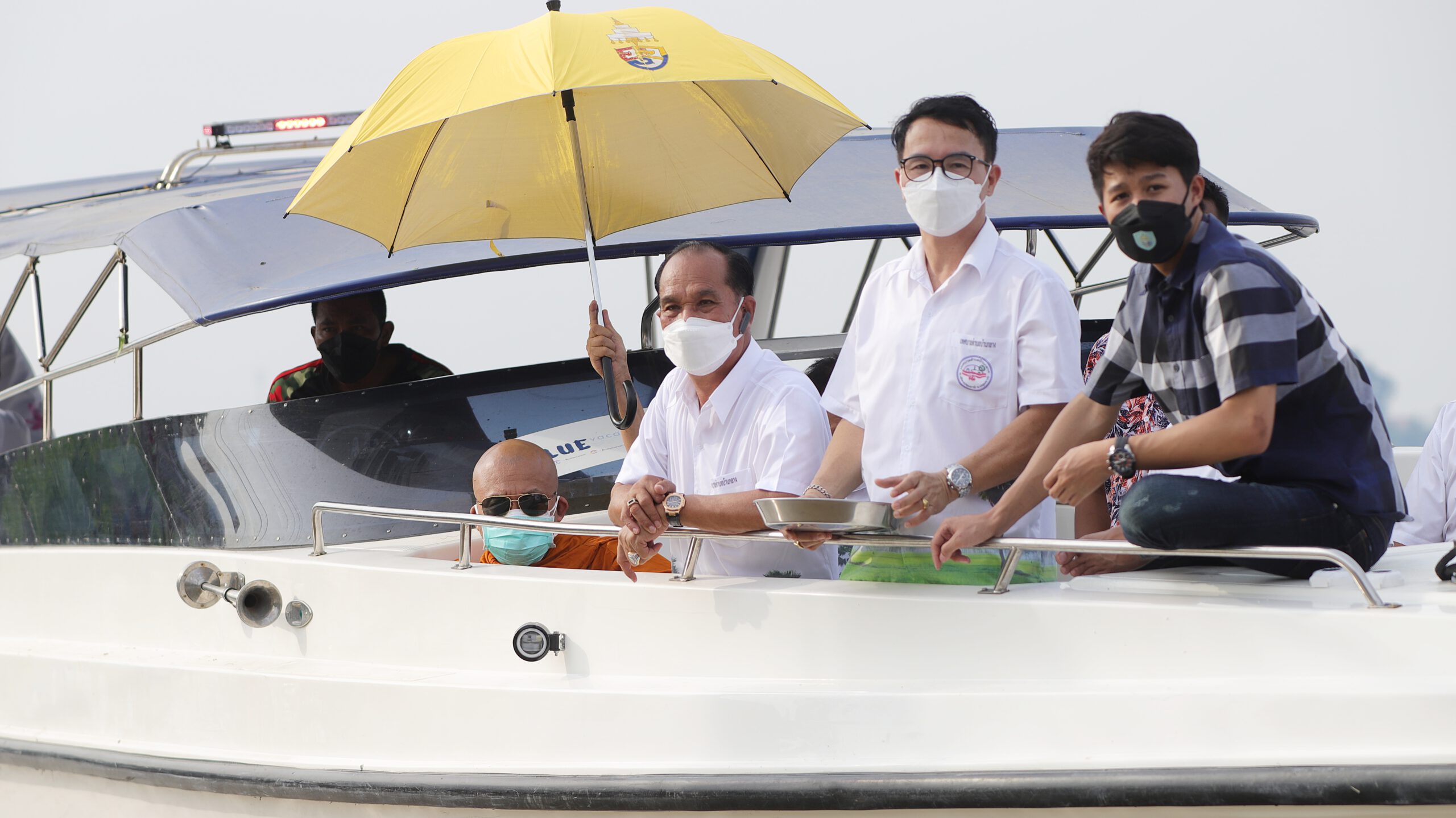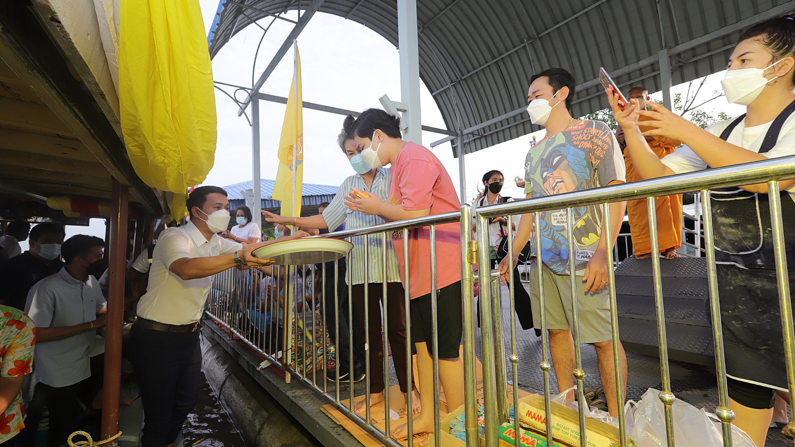 เมื่อเวลา 07.30 น. วันที่ 22 ต.ค.2564 ที่ท่าเรือวัดมะขาม และท่าเรือวัดศาลเจ้า ตำบลบ้านกลาง อำเภอเมือง จังหวัดปทุมธานี นายดรณ์ สมิตะเกษตริน ปลัดจังหวัดปทุมธานี นายพิษณุ ประภาธนานันท์ นายอำเภอเมืองปทุมธานี นายสายัณ นพขำ นายกเทศมนตรีตำบลบ้านกลาง นายศุภชัย นพขำ ส.ส.ปทุมธานี เขต 2 พรรคเพื่อไทย พร้อมข้าราชการพ่อค้า ประชาชน ร่วมประเพณีทำบุญตักบาตรพระร้อยทางเรือซึ่งเป็นประเพณีเก่าแก่ของวัดที่อยู่ตามริมฝั่งแม่น้ำเจ้าพระยาทั้งสองฝั่งแม่น้ำ