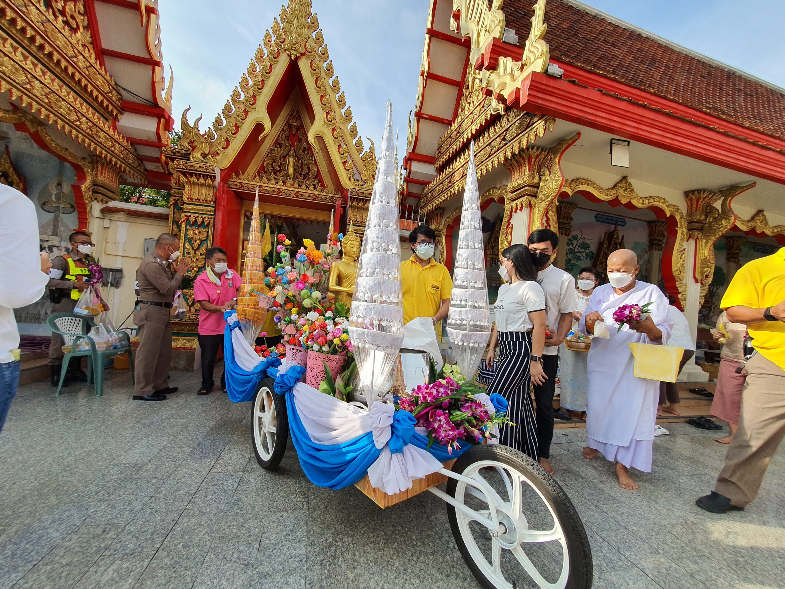 *****ต่อมาในเวลา12.00น.ได้มีการตั้งขบวนแห่ในพิธีทอดกฐิน ประจำปี 2564 โดยปีนี้ คุณจิรพันธ์ รอดปัญญา เป็นประธานทอดผ้าพระกฐินโดยมีพุทธศาสนิกชน รวมทั้งเจ้าหน้าที่ตำรวจ เจ้าหน้าที่จากโรงพยาบาลบางพลี เข้าร่วมพิธีกันจำนวนมาก โดยมีการเว้นระยะห่าง และทุกคนต้องสวมหน้ากากอนามัย ปฏิบัติตามมาตรการป้องกันไวรัสโควิด-19 อย่างเคร่งครัด