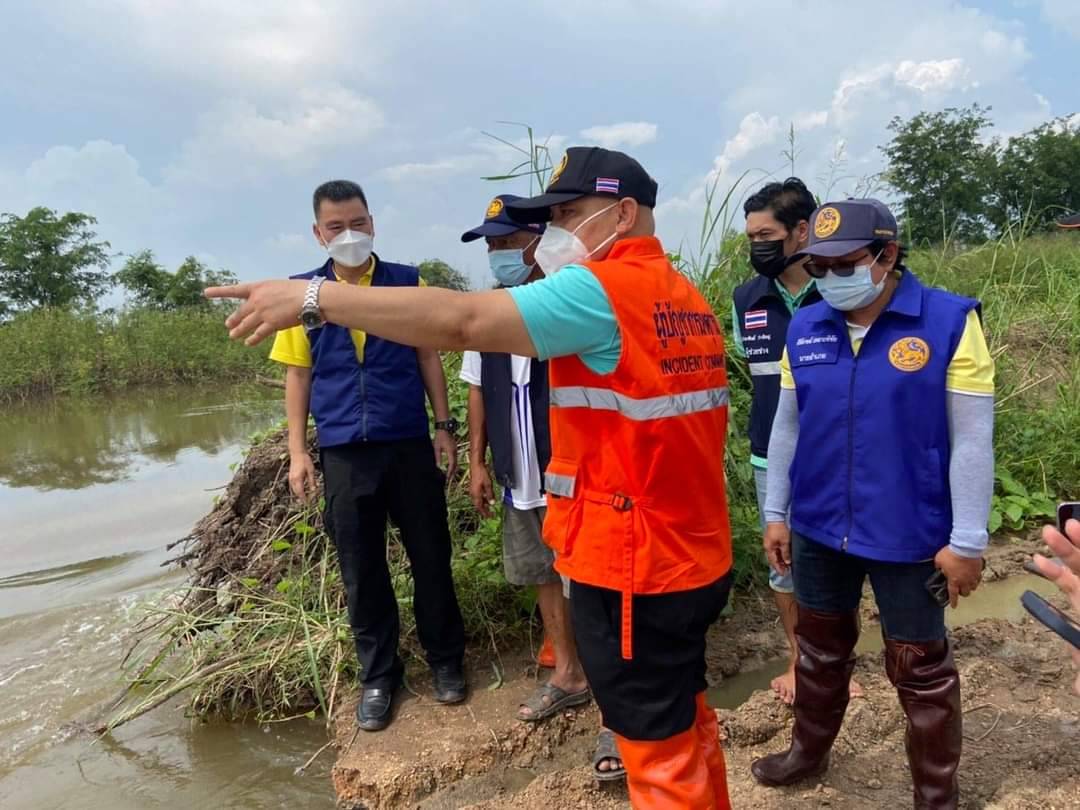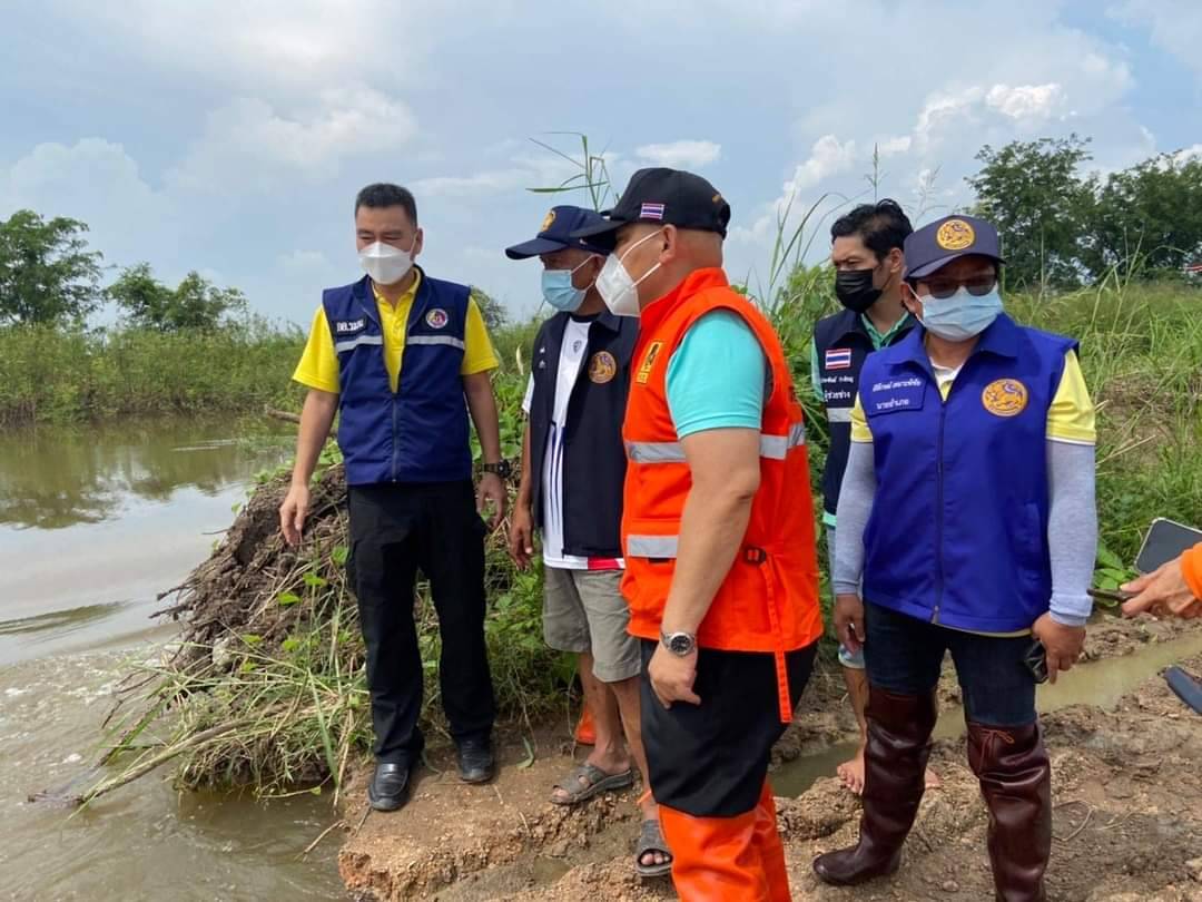 วันศุกร์ที่ 22 ตุลาคม 2564 เวลา 11.00 น. นายชัยชาญ สิทธิวิรัชธรรม ผู้ว่าราชการจังหวัดสิงห์บุรี ร่วมด้วย พ.อ.ชายธนัญชา วาจรัต รอง ผอ.รมน.สิงห์บุรี น.ส.นงเยาว์ เทพศิริ หัวหน้าสำนักงานป้องกันและบรรเทาสาธารณภัย นายปัญญา ใช้เฮ็ง นายอำเภอเมืองสิงห์บุรี นางศิริลักษณ์ เหมาะพิชัย นายอำเภออินทร์บุรี ลงพื้นที่กรณีถนนคันดินชำรุด ทำให้มวลน้ำจากคลองชลประทานเชื่อมแม่น้ำเจ้าพระยาทะลักเข้าท่วมทุ่งเชียงราก ต.ชีน้ำร้าย อ.อินทร์บุรี จ.สิงห์บุรี โดยได้ประชุมวางแผน แก้ไขปัญหา มอบให้ ชลประทานเร่งแก้ไขปัญหาโดยนำกระสอบทรายขนาดใหญ่ (ถุง BIGBAG) อุดจุดถนนคันดินที่น้ำเข้า เพื่อป้องกันไม่ให้น้ำท่วมพื้นที่ทุ่งเชียงรากและชุมชนใกล้เคียง ซึ่งชลประทานจะสามารถดำเนินการปิดกั้นได้ภายใน 1 วัน