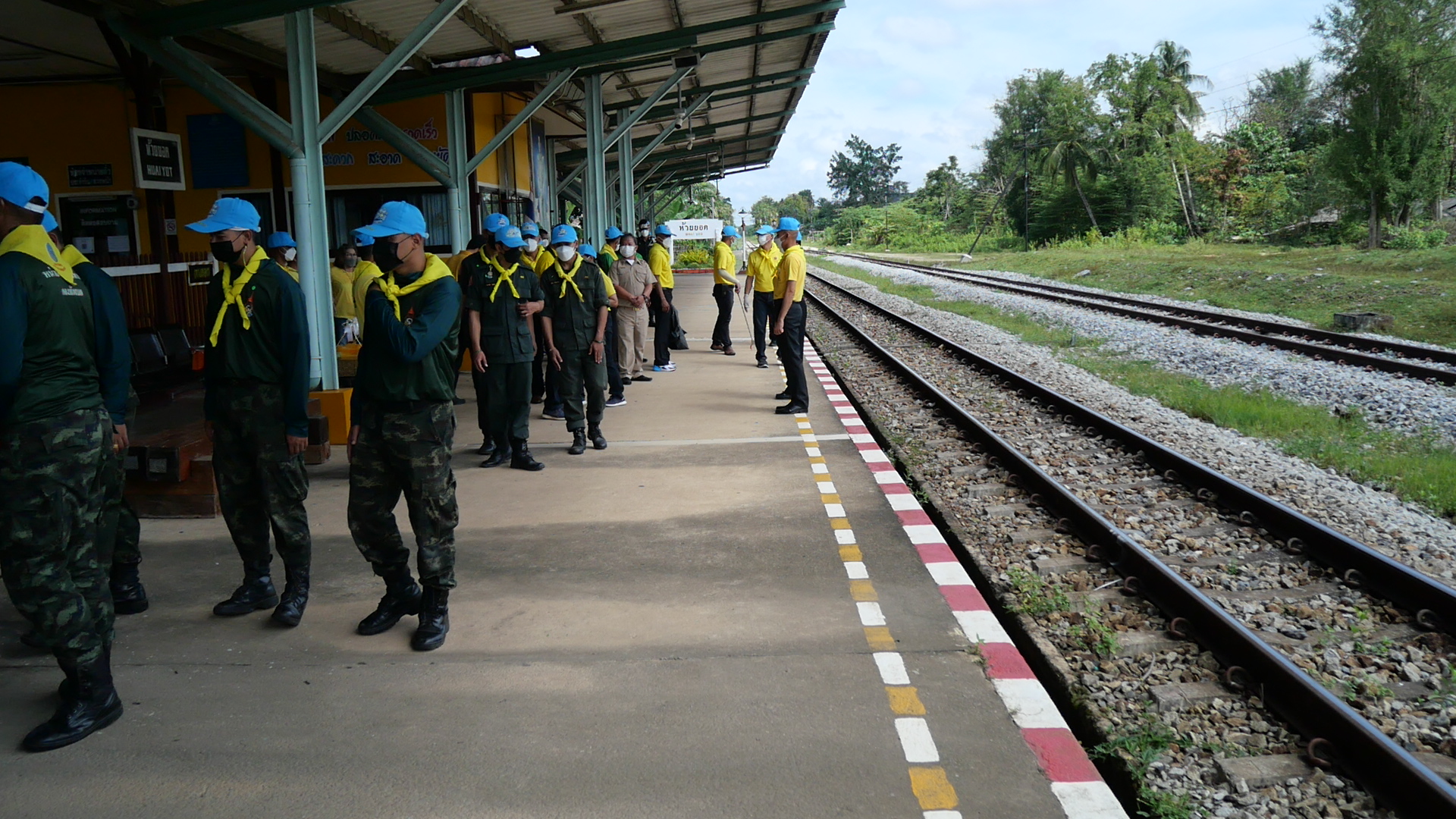 ผู้อำนวยการศูนย์อำนวยการจิตอาสาพระราชทาน มณฑลทหารบกที่ 43 นำกำลังพลจิตอาสา ร่วมกับ ร.15 พัน 4 ศูนย์อำนวยการจิตอาสา อ.ห้วยยอด และประชาชนจิตอาสา พัฒนาสร้างเสริมภูมิทัศน์สถานีรถไฟห้วยยอดเนื่องในวันปิยมหาราช