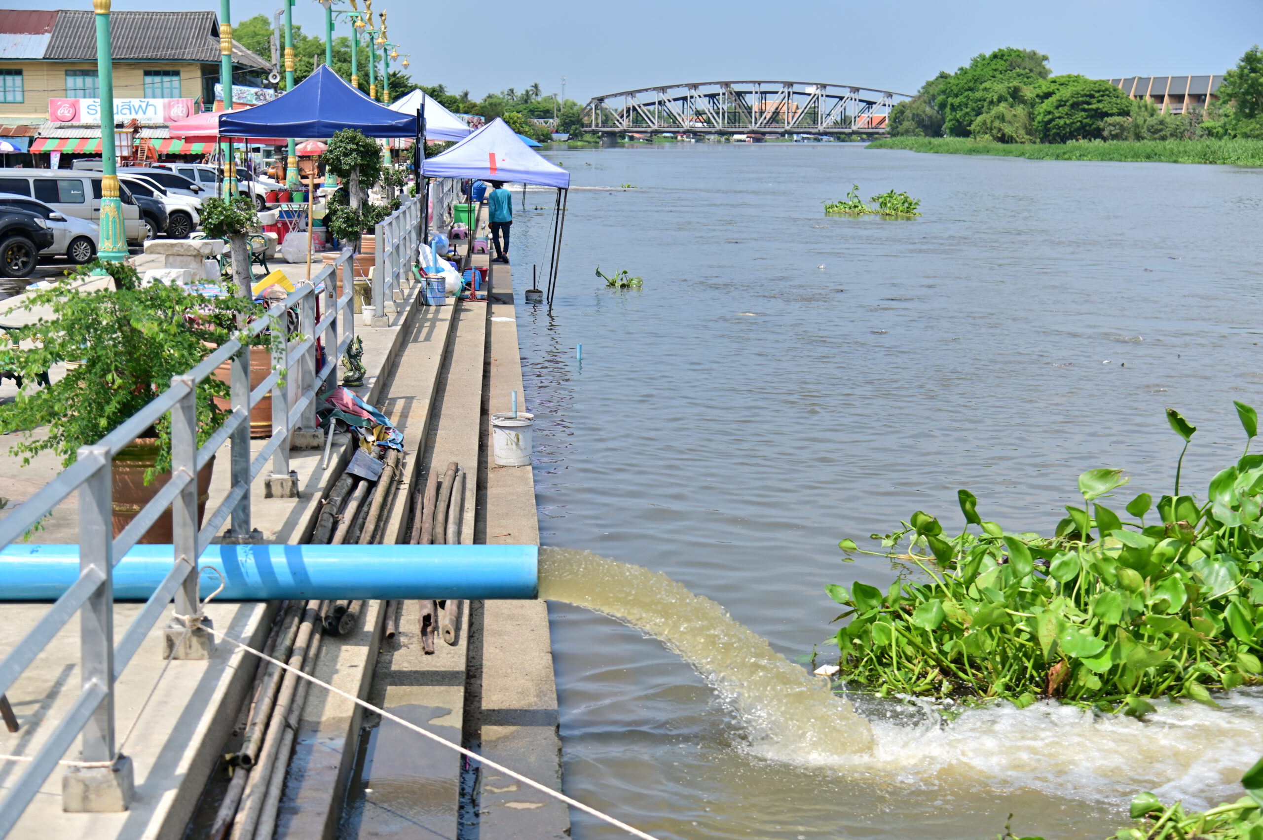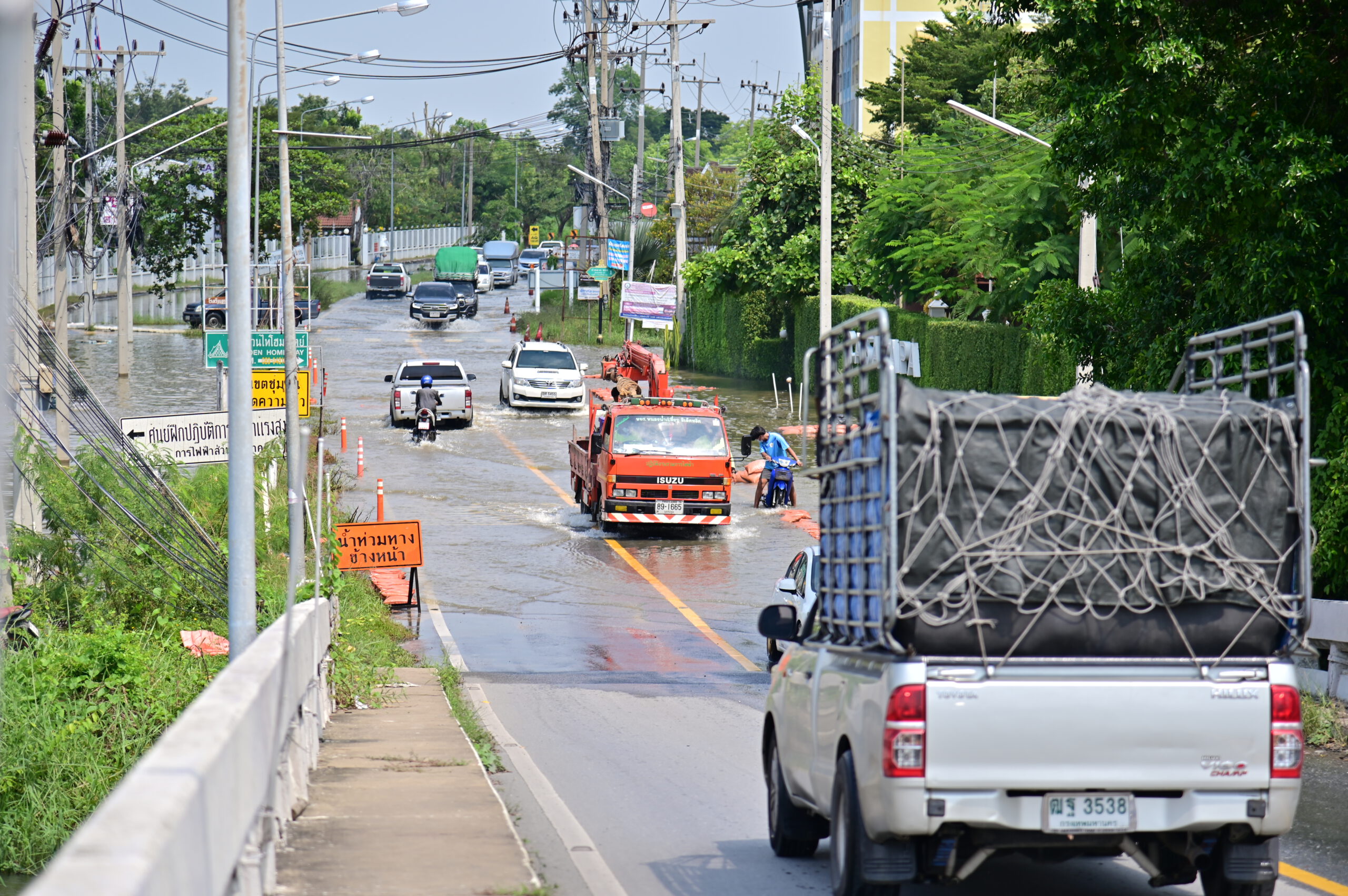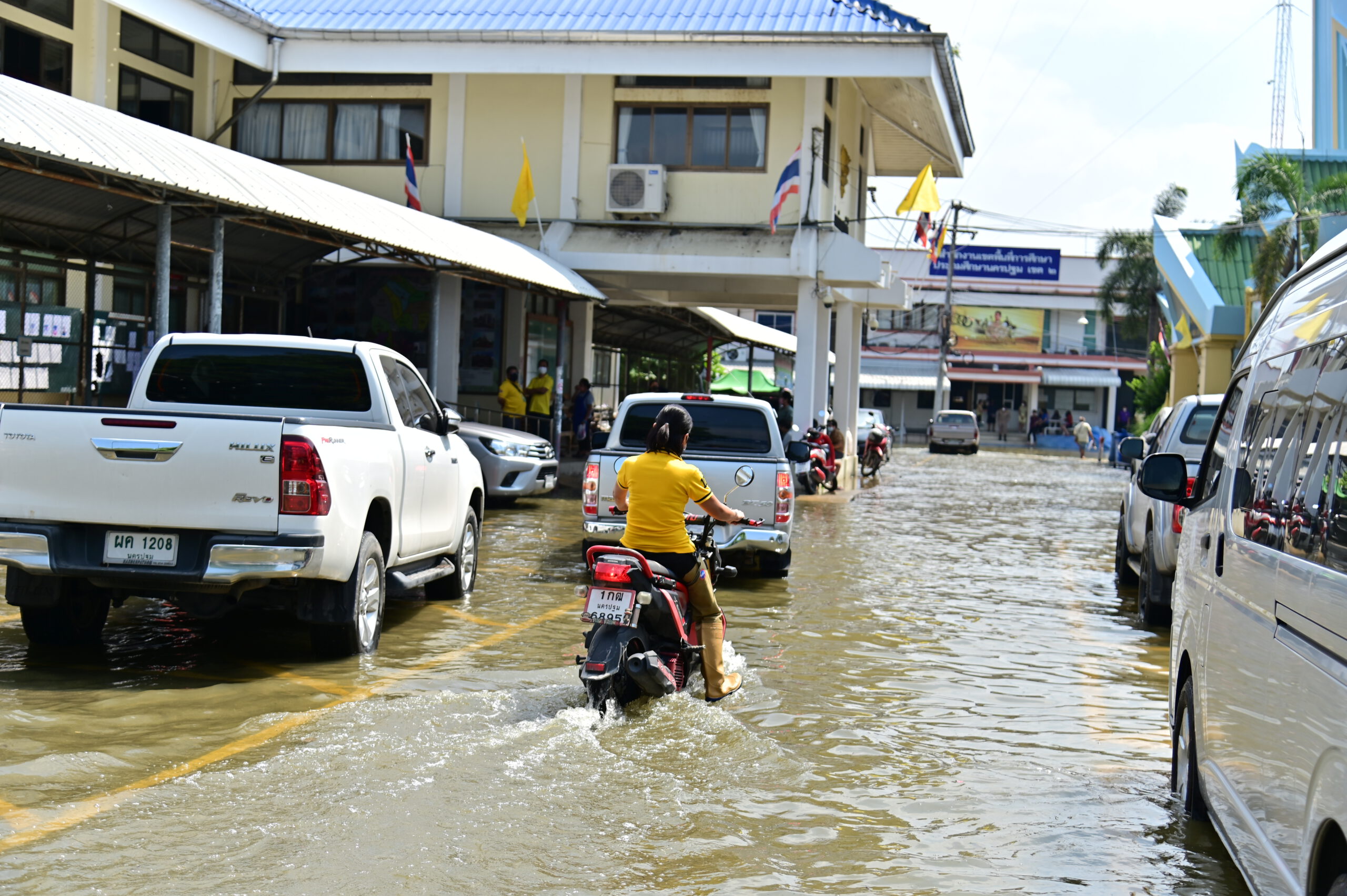 ระดับน้ำในแม่น้ำท่าจีนที่จังหวัดนครปฐมยังคงเพิ่มสูงขึ้นอย่างต่อเนื่อง ล่าสุดเอ่อล้นท่วมบริเวณหน้าที่ว่าการอำเภอนครชัยศรี ตลอดจนพื้นที่การเกษตร ซึ่งชาวบ้านได้เร่งช่วยกันลงแขกเกี่ยวข้าวใส่เรือ ก่อนที่ผลผลิตจะได้รับความเสียหาย