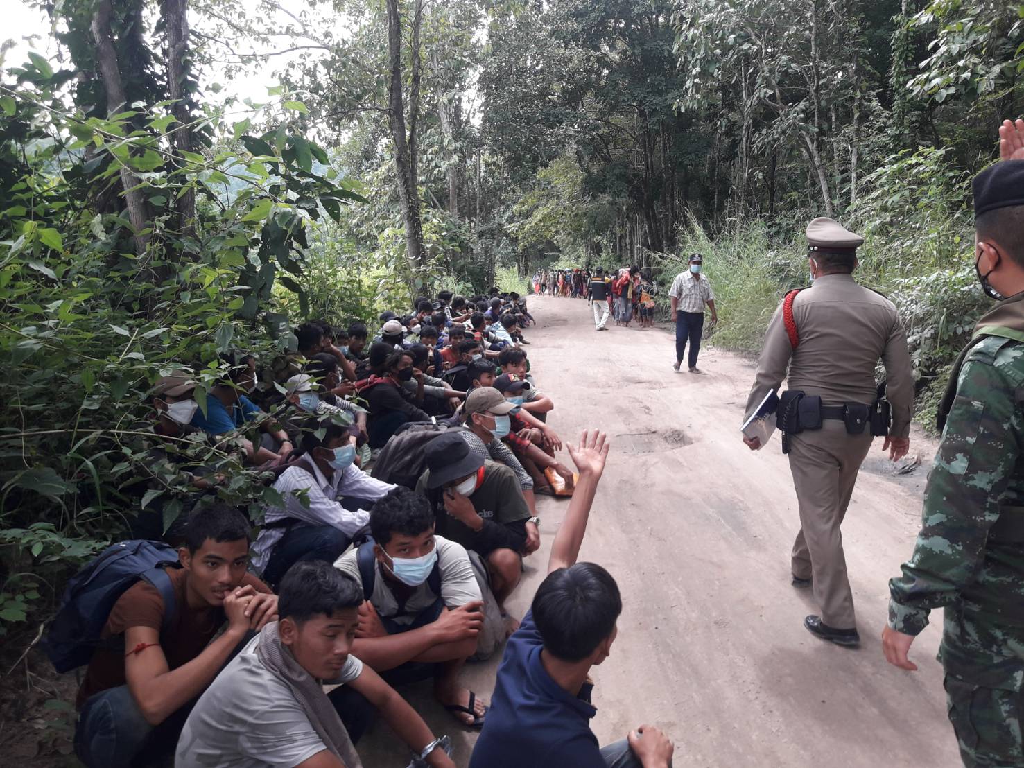 กาญจนบุรี ขบวนการขนแรงงานต่างด้าวหลบหนีเข้าเมือง ถอดใจปล่อยทิ้งต่างด้าวให้ ทหารหน่วยเฉพาะกิจลาดหญ้าจับวันเดียวเกือบ 400 คน