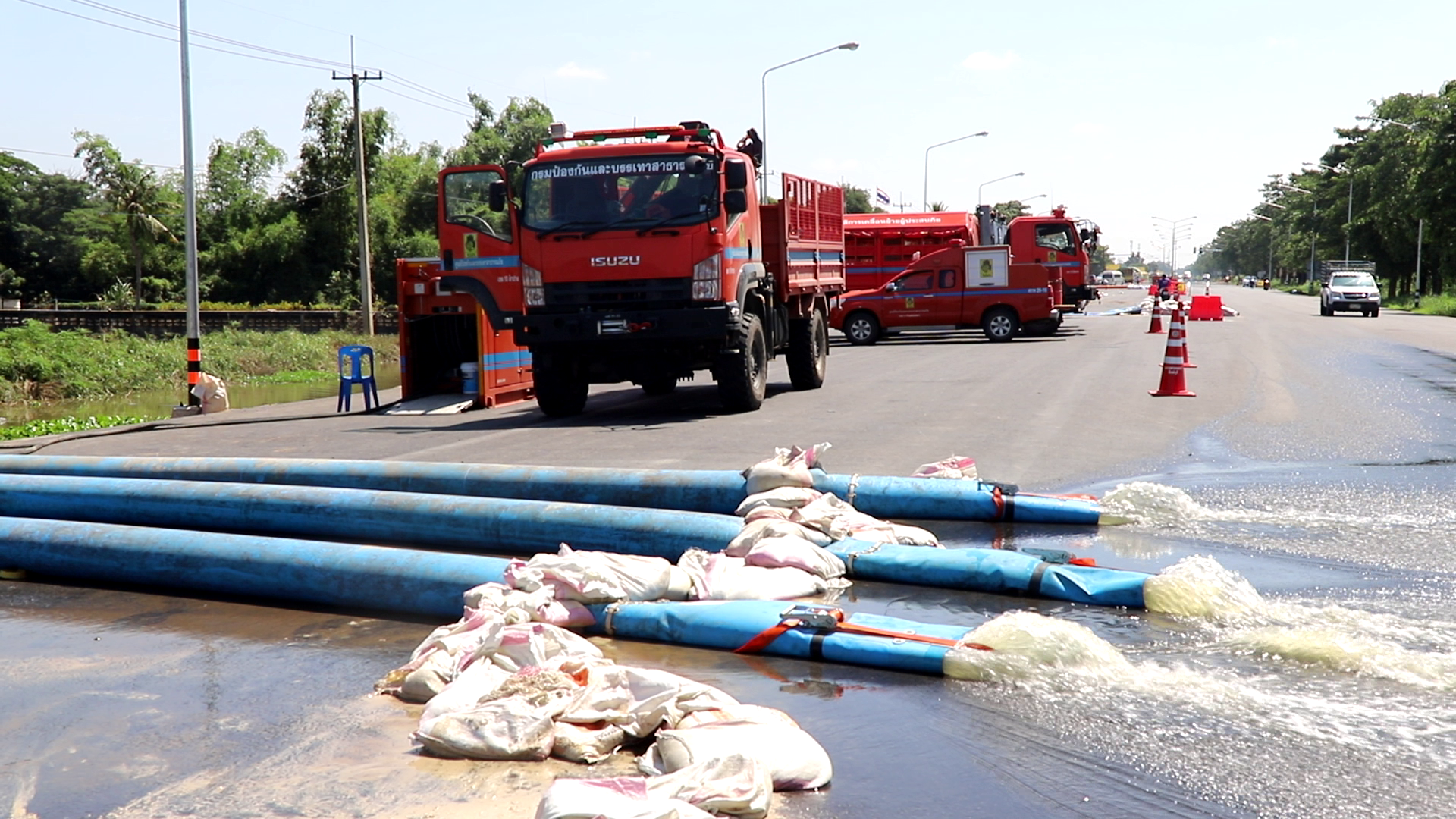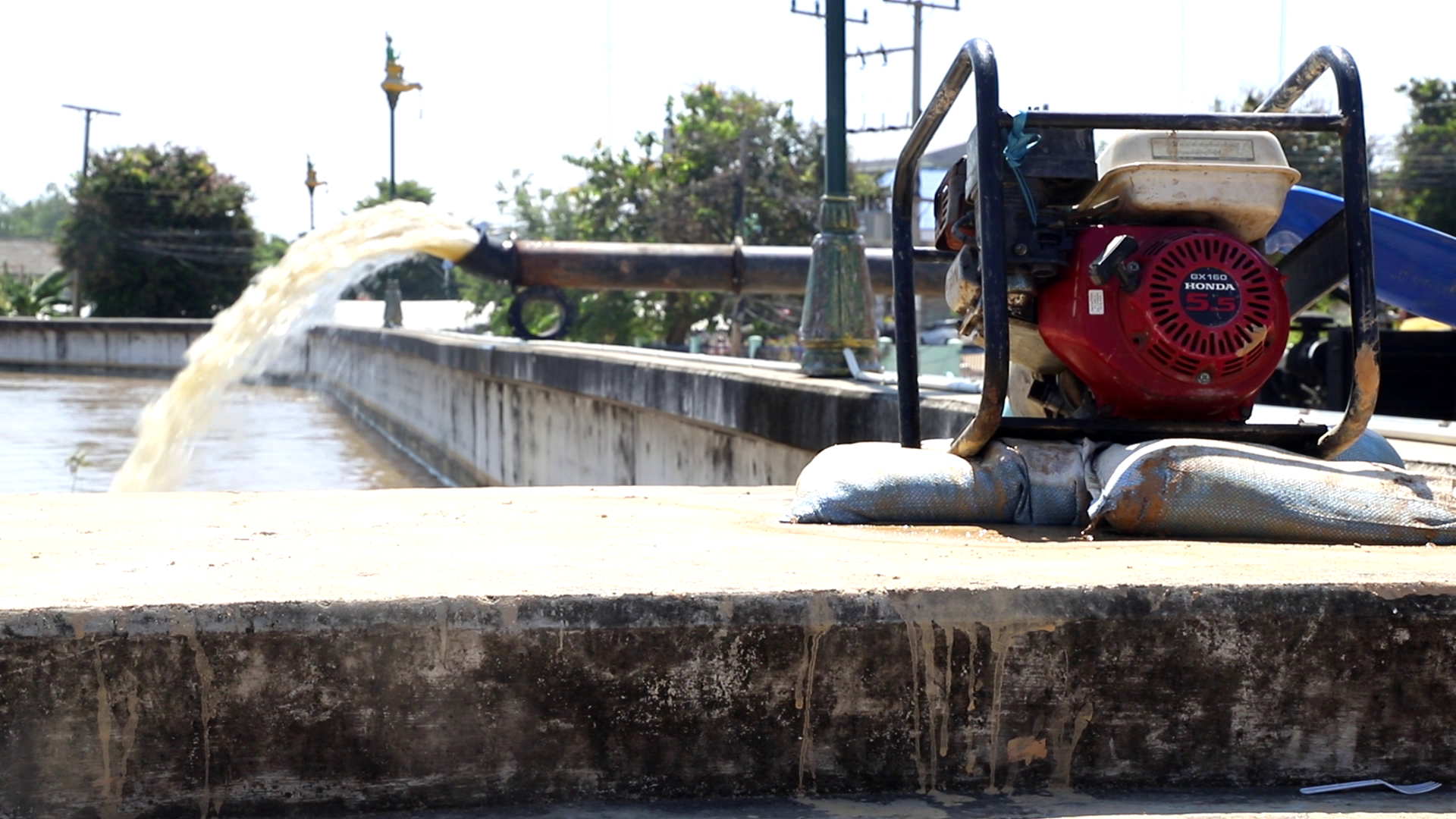ระหว่างที่น้ำเข้าท่วมบ้านเรือนประชาชน เทศบาลตำบลอินทร์บุรี ได้น้ำถุงบรรจุทรายขนาดใหญ่ หรือบิ๊กแบ็ค ไปทำการอุดช่องผนังกันน้ำในบริเวณที่พัง จนน้ำหยุดไหล หลังจากนั้นจึงได้ประสานหน่วยงานต่างๆ นำเครื่องสูบน้ำมาทำการสูบน้ำออก ซึ่ง ณ ปัจจุบันระดับน้ำลดลงบ้านเรือนประชาชนจำนวนกว่า 750 หลัง เข้าสู่สภาวะปกติแล้ว ยังเหลืออีกประมาณ 100 หลังคาเรือน ที่ยังได้รับผลกระทบอยู่ ซึ่งคาดว่าจะใช้เวลาอีกประมาณ 2 ถึง 3 วัน ถึงจะสามารถกู้พื้นที่ หมู่ 3 และหมู่ 4 เข่าสู่ภาวะปกติได้ร้อยเปอร์เซ็นต์ ทั้งนี้ที่ล่าช้า ก็สืบเนื่องจากต้องมีการย้ายเครื่องสูบน้ำจำนวนหลายเครื่อง ไปจุดใหม่ ที่เป็นพื้นที่ลุ่มกว่า ที่สามารถสูบน้ำได้ดีกว่าด้วย