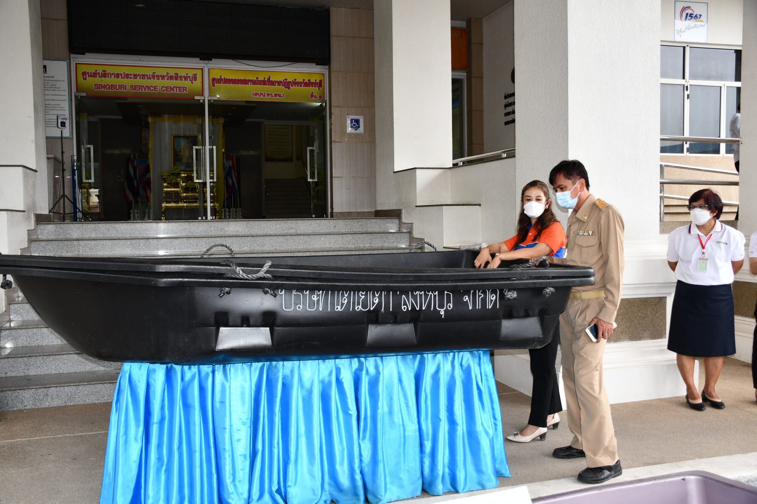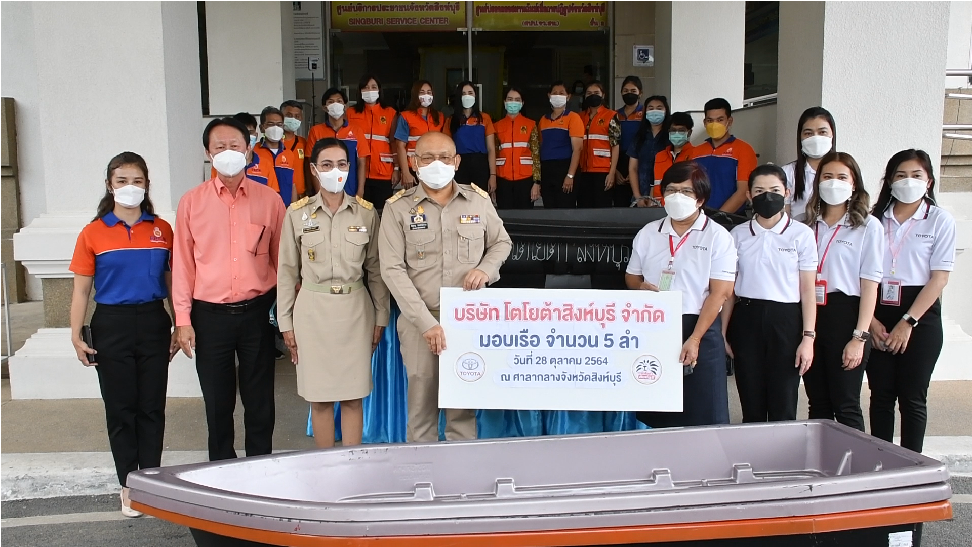 คุณสุปราณี จัตุรัส ผู้ช่วยกรรมการฝ่ายขายและการตลาด โตโยต้าสิงห์บุรี จำกัด พร้อมนายวิจิตร เลิศไพบูลย์วงศ์ ประธานสภาอุตสาหกรรมและพนักงานบริษัทโตโยต้าสิงห์บุรี เนื่องจากพี่น้องประชาชนที่มีบ้านพักอาศัยอยู่ในพื้นที่ลุ่มต่ำนอกคันกั้นน้ำที่ประสบน้ำท่วมบางครัวเรือนยังขาดเรือสัญจรไปมา ซึ่งสำนักงานป้องกันบรรเทาสาธารณภัยจะได้นำเรือเข้าไปช่วยเหลือประชาชนที่ประสบอุทกภัยจังหวัดสิงห์บุรีสะดวกมากยิ่งขึ้น