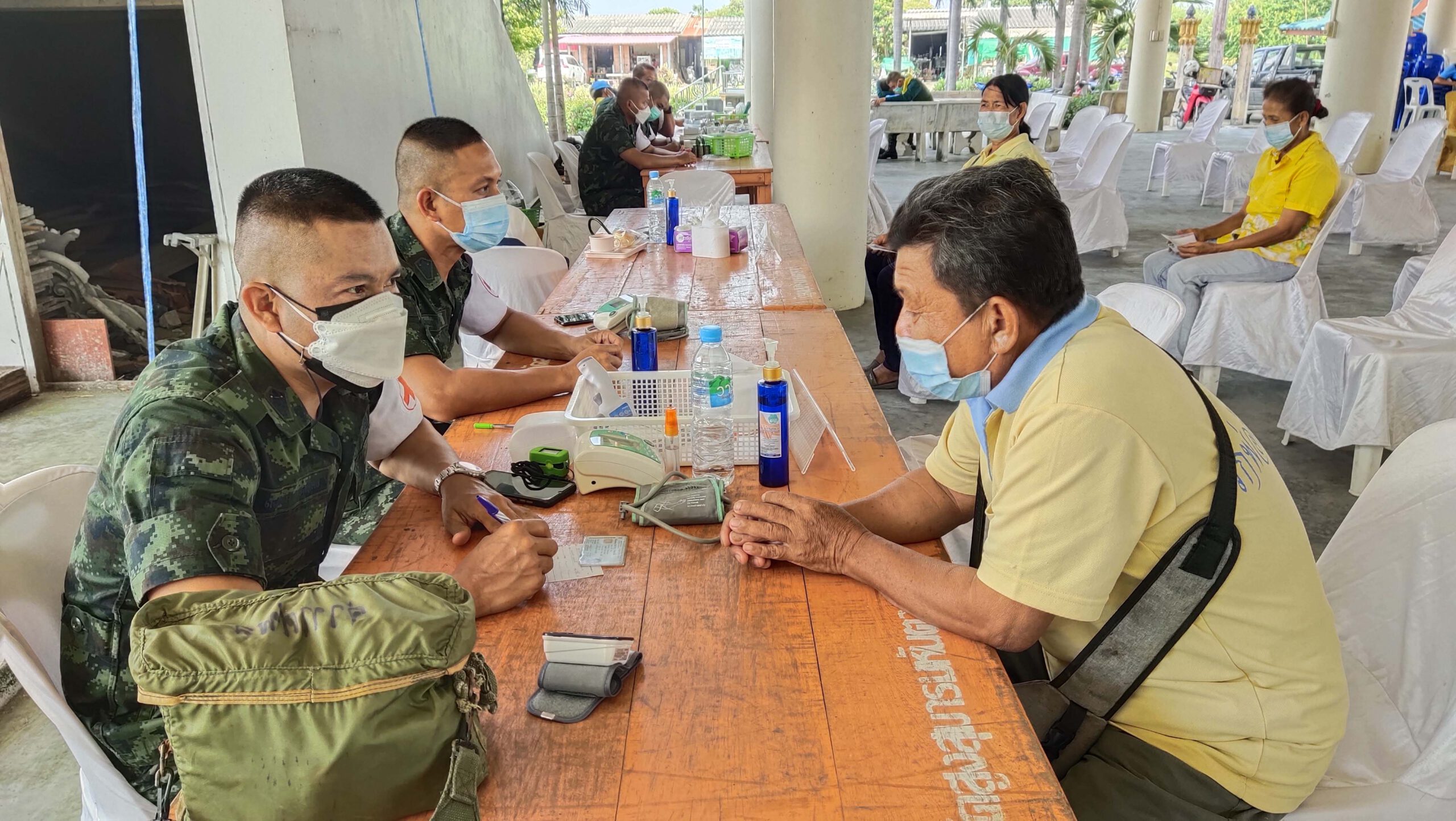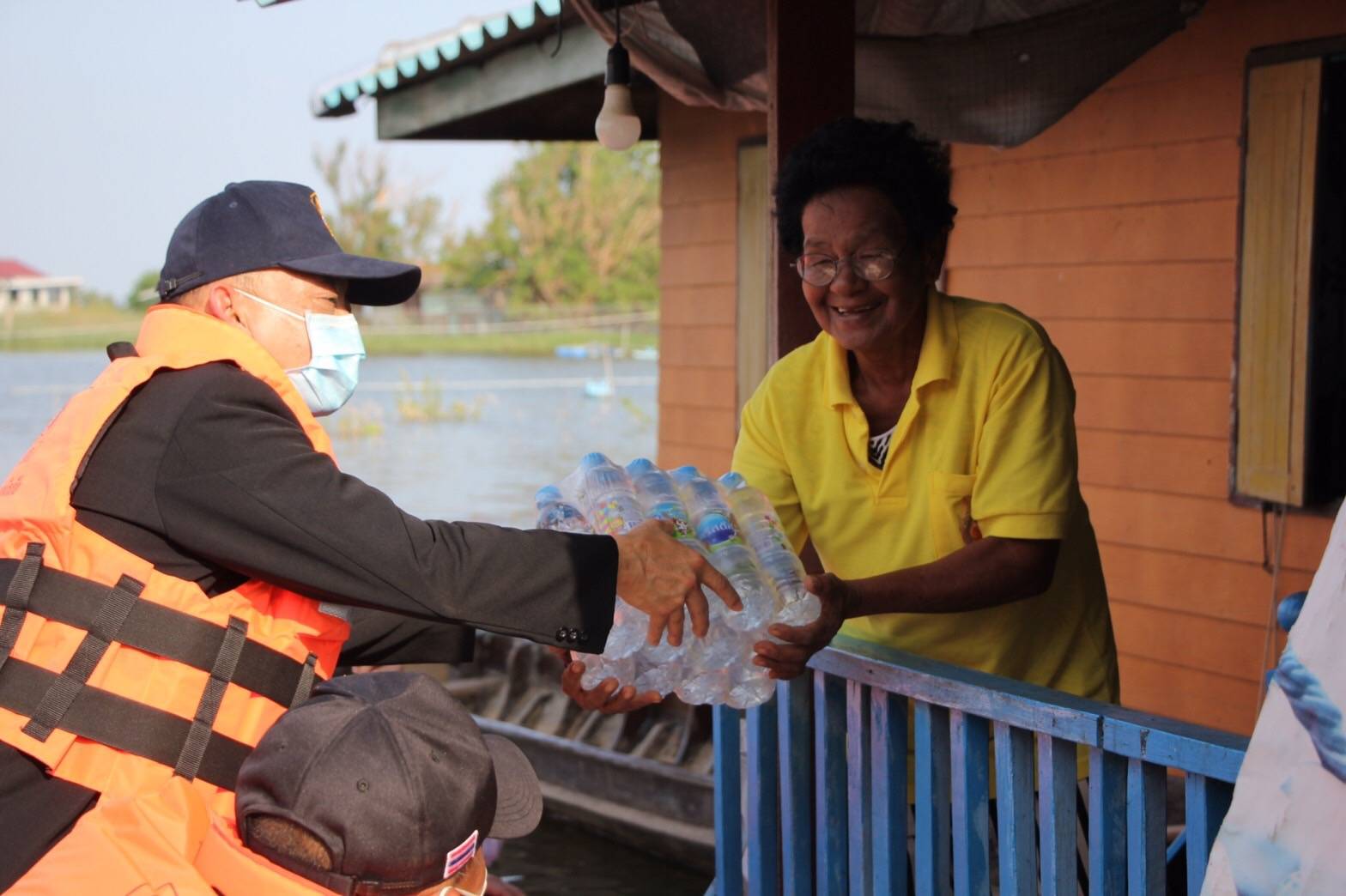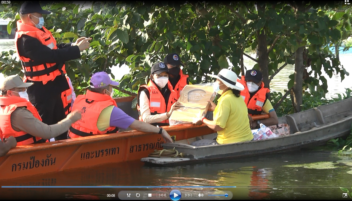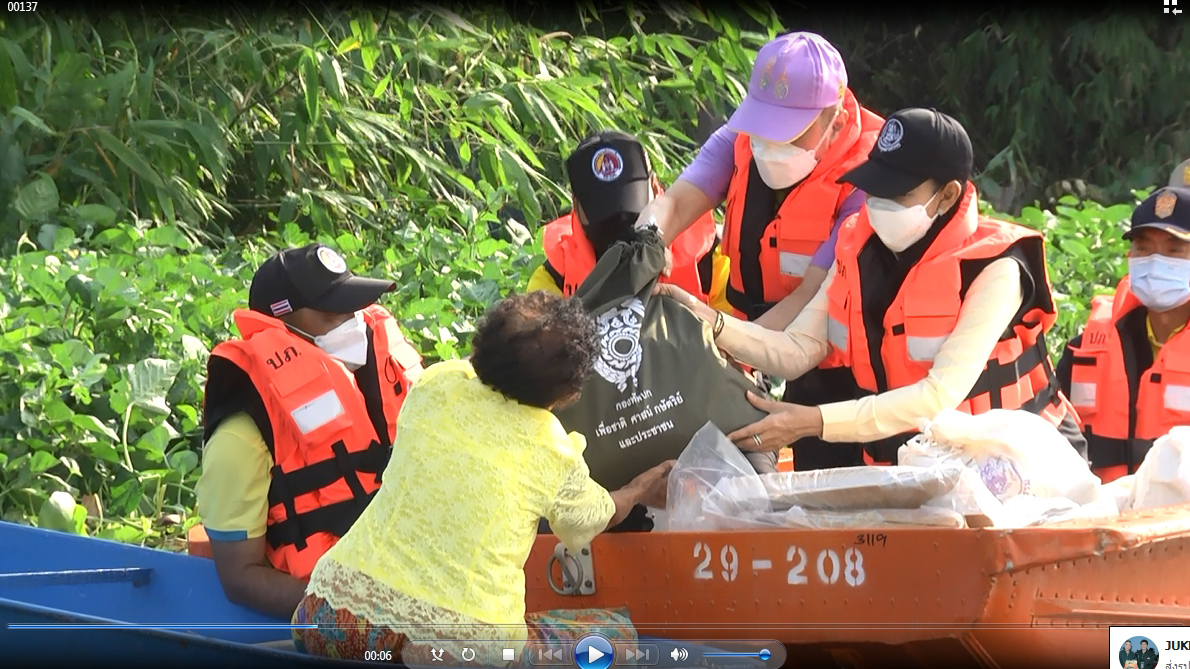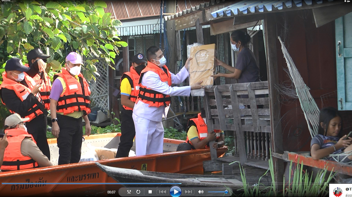 พลตรีประพนธ์ กิติญาณทรัพย์ เสนาธิการกองทัพภาคที่ 1 และนางวรวรรณ ชิตอรุณ รองปลัดกระทรวงอุตสาหกรรม ได้พบปะพูดคุยประชาชนที่มารับถุงยังชีพว่าวันนี้ได้มามอบถุงยังชีพเป็นการช่วยบรรเทาความเดือดร้อนเบื้องต้น นอกจากนี้กองพันเสนารักษ์ กรมสนับสนุน กองพลทหาราบที่ 9 ได้จัดทีมแพทย์มาตรวจวัดความดัน จัดยาสามัญประจำบ้าน เช่นยาแก้ปวด ลดไข้ แก้ไอ แก้คัน แก้น้ำกัดเท้า และยาทากันยุง เนื่องจากน้ำที่ท่วมเริ่มเน่าเสีย ทั้งนี้ขอเป็นกำลังใจให้พี่น้องประชาชนที่ประสบอุทกภัยทุกคนขอให้อดทนอีกไม่นานสถานการณ์ก็จะคลี่คลายเนื่องจากทุกฝ่ายกำลังช่วยกันแก้ไขปัญหากันอย่างเต็มที่หลังจากนำลดเข้าสู่ภาวะปกติหน่วยงานภาครัฐก็จะเร่งเข้ามาสำรวจและให้ความช่วยเหลือในด้านต่างๆต่อไป จากนั้นคณะได้ขึ้นเรือเดินทางไปมอบถุงยังชีพ ให้กับประชาชนที่ประสบอุทกภัยที่อยู่ริมสองฝั่งคลองในพื้นที่ตำบลจรเข้ใหญ่ เพื่อเป็นการบรรเทาความเดือดร้อน อีกทั้งยังเป็นการสร้างขวัญและกำลังใจแก่ผู้ประสบอุทกภัย