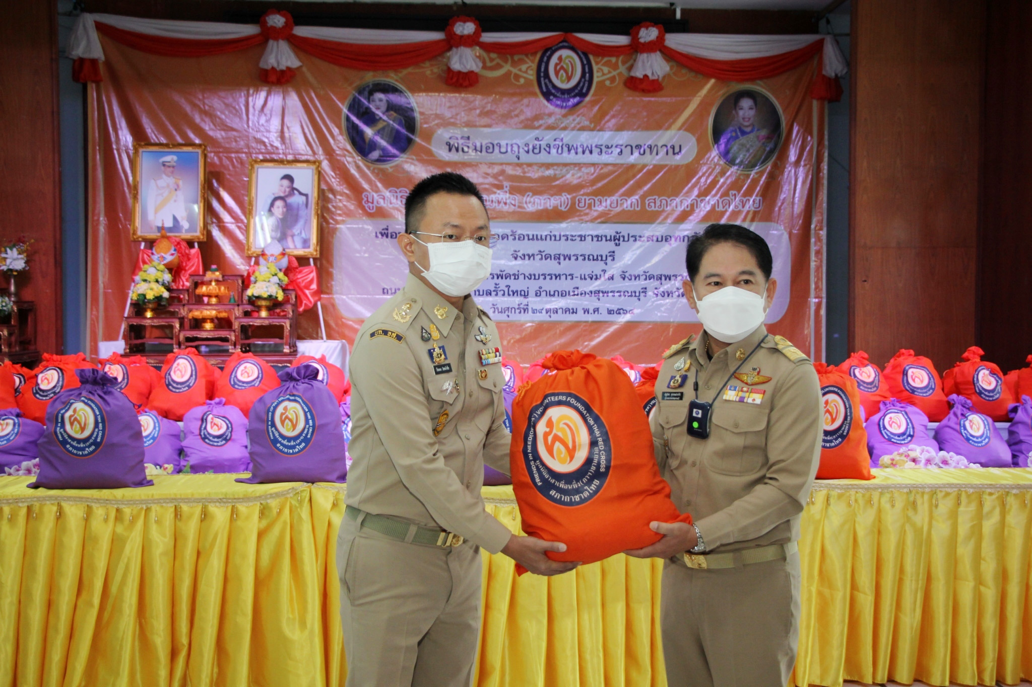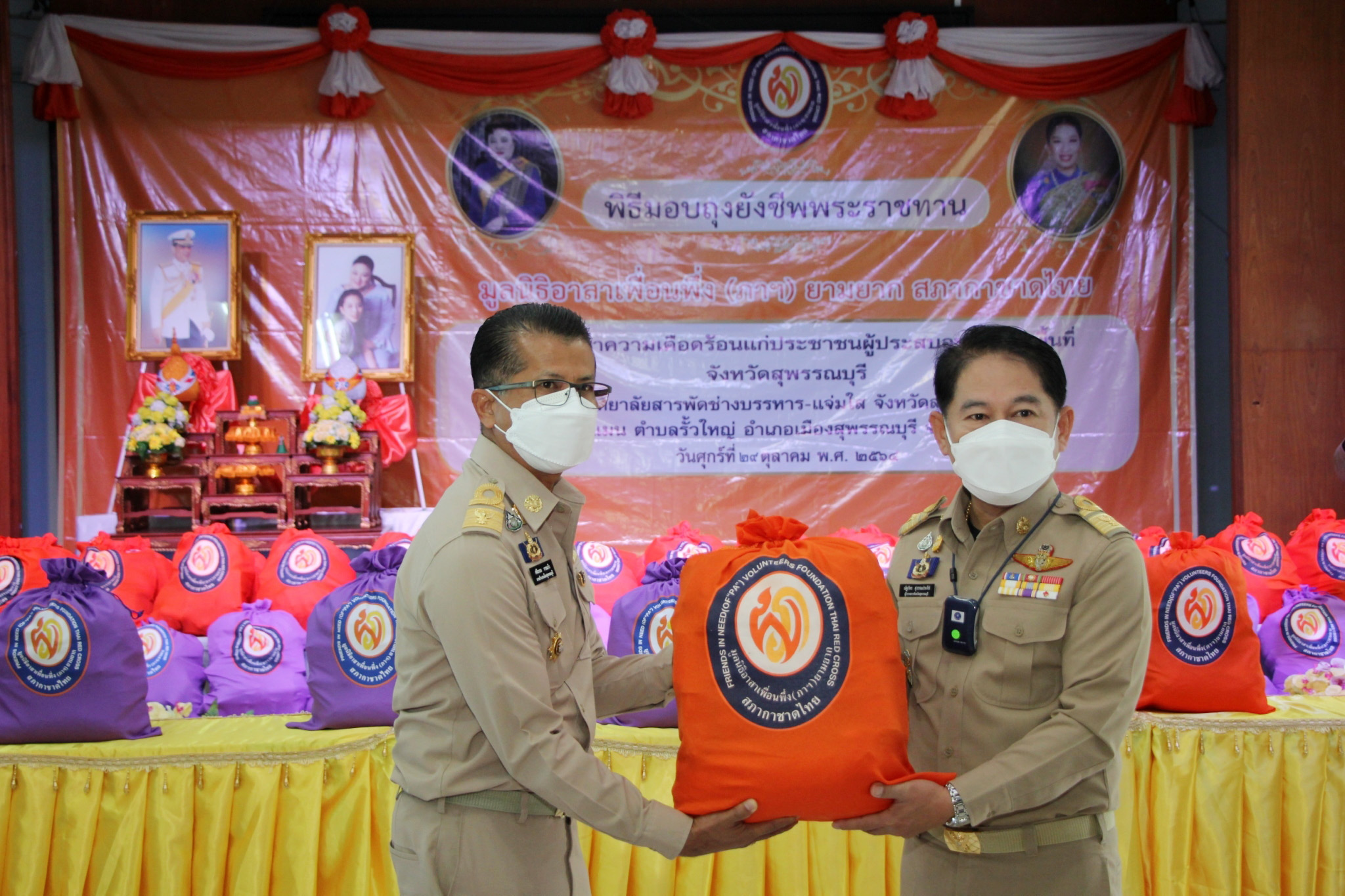 โดยมีนายณัฐภัทร สุวรรณประทีป ผู้ว่าราชการจังหวัดสุพรรณบุรี เป็นผู้เชิญสิ่งของพระราชทานถวายแก่พระภิกษุสงฆ์ จำนวน 5 ชุด และนายอำเภอเมืองสุพรรณบุรี อำเภอบางปลาม้า อำเภออู่ทอง อำเภอสามชุก อำเภอศรีประจันต์ อำเภอเดิมบางนางบวช และอำเภอสองพี่น้อง ที่หอประชุมวิทยาลัยสารพัดบรรหาร-แจ่มใส จังหวัดสุพรรณบุรี เพื่อนำไปมอบแก่ประชาชนผู้ประสบอุทกภัยในพื้นที่ต่อไป