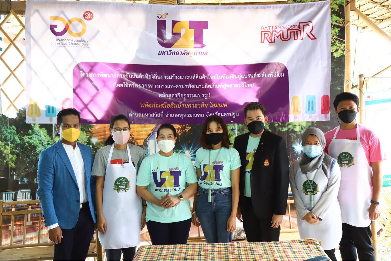 ทั้งนี้ได้รับเกียรติจาก รศ.ดร.อาคีรา ราชเวียง และดร.ธีรินทร์ คงพันธุ์ เป็นวิทยากรบรรยายเรื่อง การเตรียมความพร้อมและการเตรียมวัตถุดิบการแปรรูปผลิตภัณฑ์ไอติมโฮมเมด พร้อมทั้ง อ.จารุพัฒน์ กาญจนรงค์ อ.กิตติยา สุเหม อ.วิจิตรา ปล้องบรรจง อาจารย์ประจำคณะวิทยาศาสตร์และเทคโนโลยี บรรยายวิธีการและขั้นตอนการผลิตไอติมโฮมเมด และคุณกชพรพรรณ นนท์พันธุ์ชนา CHIEF MARKETING OFFICER บริษัท VALUE CREATOR เป็นวิทยากรบรรยาย ให้ความรู้เกี่ยวกับการออกแบบบรรจุภัณฑ์ ณ ชุมชนบ้านศาลาดิน ต.มหาสวัสดิ์ อ.พุทธมณฑล จ.นครปฐม