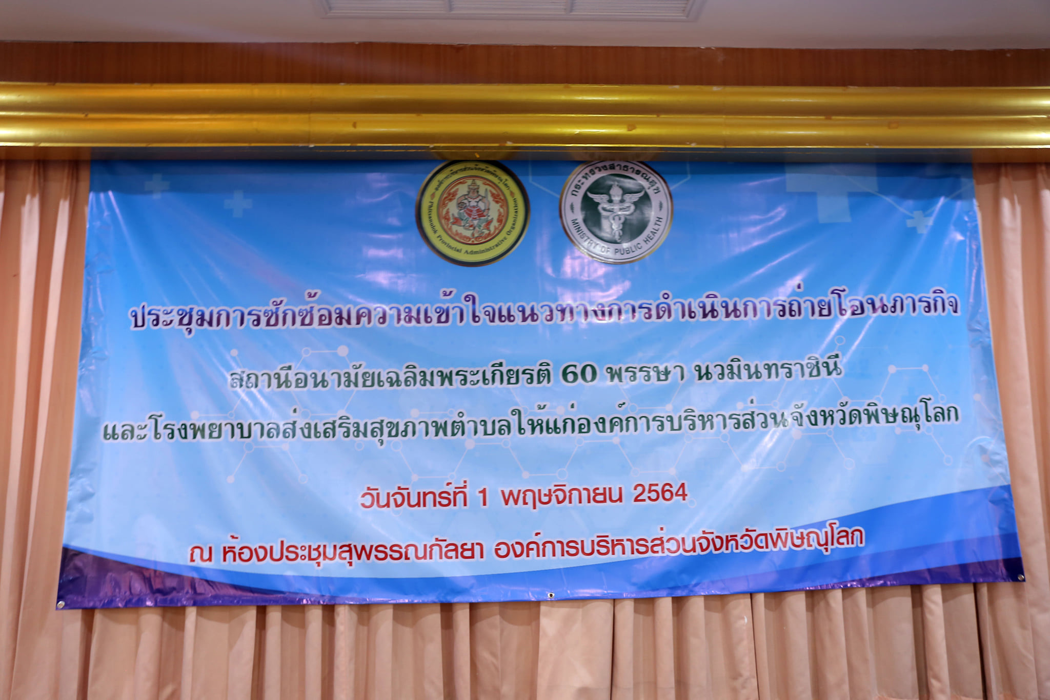 เมื่อวันที่ 1 พฤศจิกายน พ.ศ. 2564 นายกิตติพงษ์ เกิดฤทธิ์ ผู้อำนวยการกองสาธารณสุขท้องถิ่น เข้าร่วมการประชุมการซักซ้อมความเข้าใจแนวทางการดำเนินการถ่ายโอนภารกิจสถานีอนามัยเฉลิมพระเกียรติ 60 พรรษา นวมินทราชินีและโรงพยาบาลส่งเสริมสุขภาพตำบลให้แก่องค์การบริหารส่วนจังหวัดพิษณุโลก ณ ห้องประชุมสุพรรณกัลยา องค์การบริหารส่วนจังหวัดพิษณุโลก เพื่อเป็นการซักซ้อมความเข้าใจเกี่ยวกับแนวทางการถ่ายโอนสถานีอนามัย ฯ / โรงพยาบาลส่งเสริมสุขภาพตำบลให้แก่องค์การบริหารส่วนจังหวัดพิษณุโลก