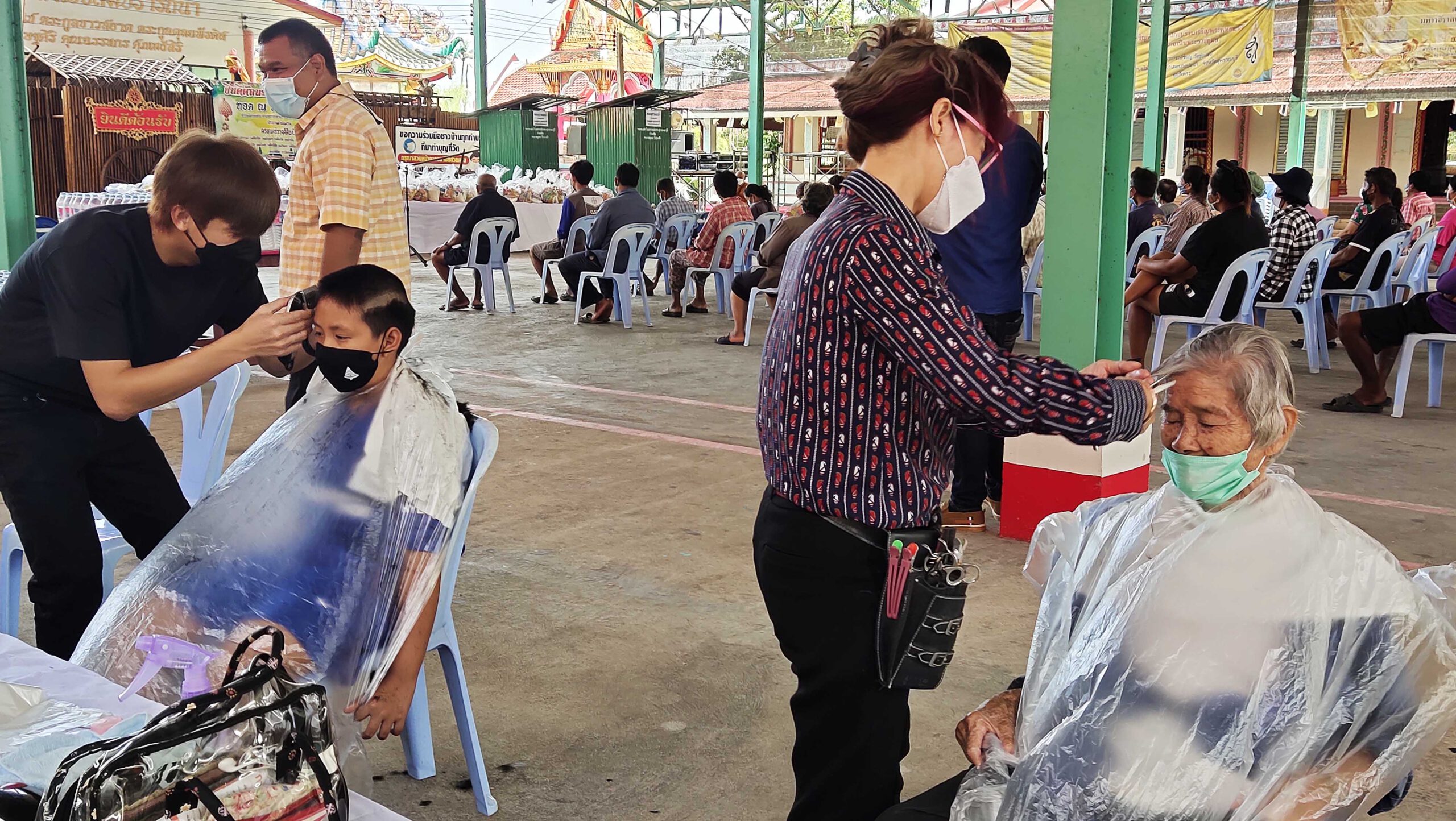 น.ส.รษิกา ศรายุธยศกร หรือ พิมพ์ สาวใจหล่อ เจ้าของร้านเสริมสวยกล่าวว่าปกติทุกปีที่ร้านจะออกมาจัดกิจกรรมตัดผมนอกพื้นที่ถิ่นธุรกันดารพร้อมนำสิ่งของเครื่องใช้ไปแจกประจำอยู่แล้ววันนี้ได้มาที่จังหวัดสุพรรณบุรี 5 วันตั้งแต่วันที่ 1- 5 พฤศจิกายน ส่วนแรงบันดาลใจที่ตนทำคือปกติเป็นคนชอบทำบุญอยู่แล้วจะออกไปตัดผมให้เด็ก หรือผู้ประสบภัยอย่างต่อเนื่องเป็นการช่วยกันอย่างน้อยๆก็เป็นส่วนหนึ่งเล็กๆน้อยๆไม่ได้เยอะมากโดยตนจะมีร้านอยู่2ที่คือกรุงเทพ กับนนทบุรี นอกจาก พื้นที่ใกล้ๆแล้วยังออกไปร่วมกับมูลนิธิต่างๆออกไปจัดกิจกรรมตัดผม ผู้ใหญ่ เด็กเล็ก แจกของเลี้ยงอาหารกลางวันและครั้งนี้ก็มาช่วยพี่น้องประชาชนที่ได้รับความเดือดร้อนและเป็นกำลังใจให้มีพลังสู้และผ่านพ้นไปด้วยกัน และขอฝากเชิญชวนเพื่อนๆเจ้าร้านเสริมสวยที่มีความประสงค์จะมาร่วมกิจกรรมก็ขอเชิญมาร่วมได้เลยจะได้ช่วยกัน ขอเป็นกำลังใจให้พี่น้องผู้ประสบอุทกภัยสู้ๆเราจะผ่านมันไปด้วยกัน
