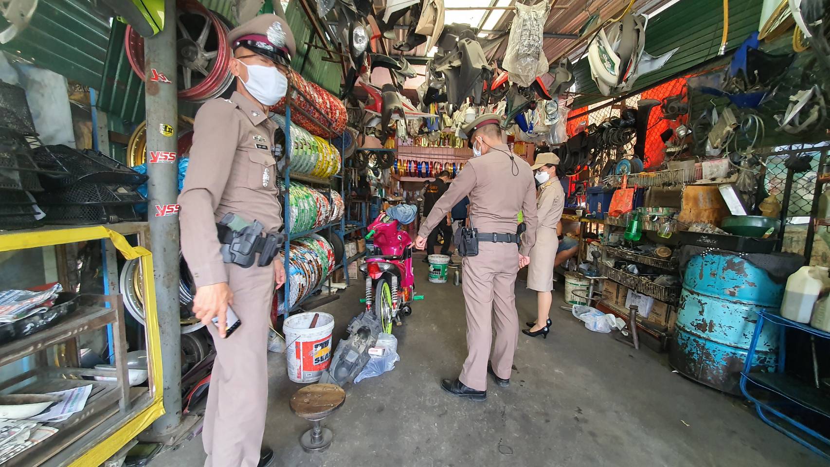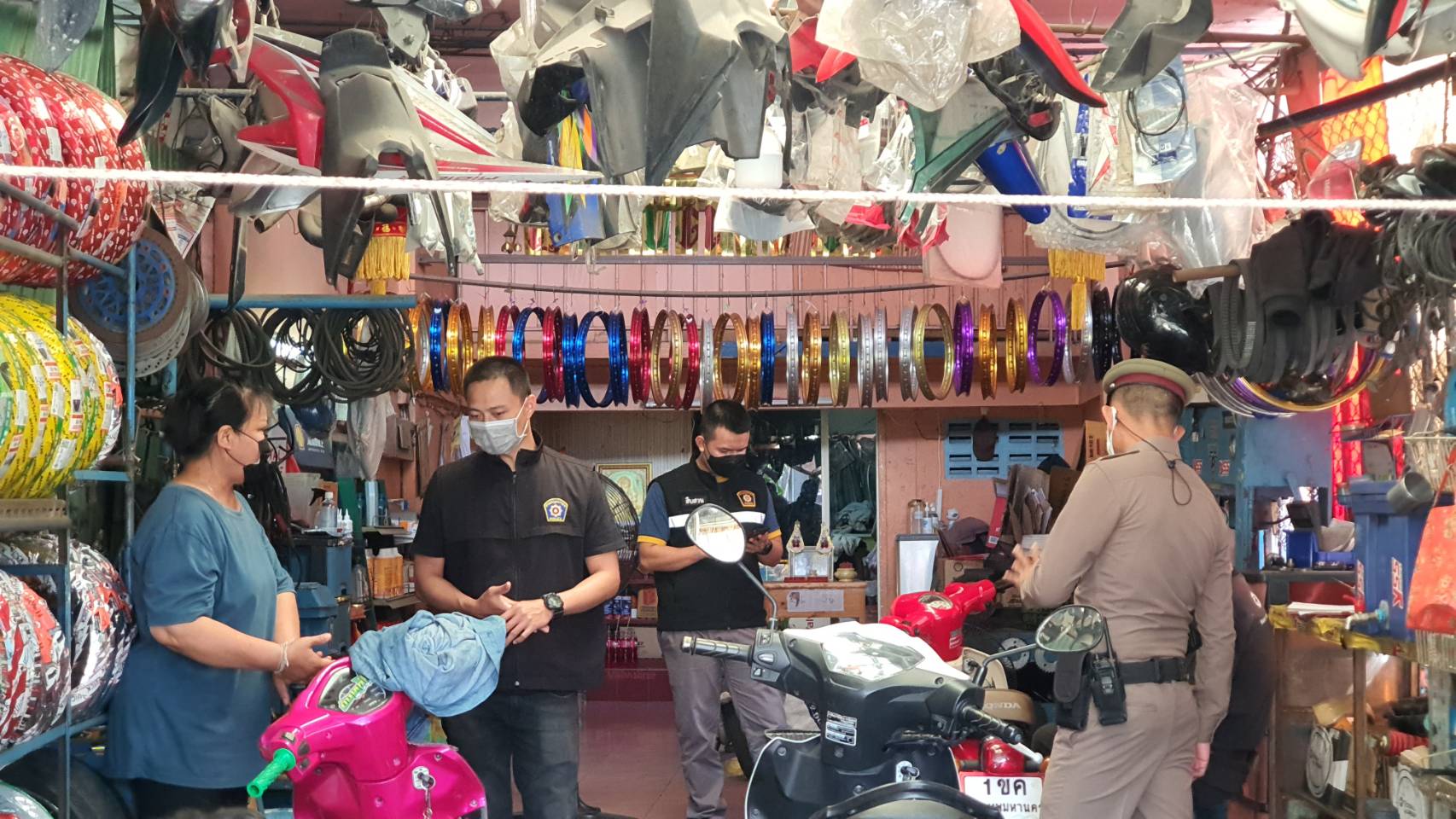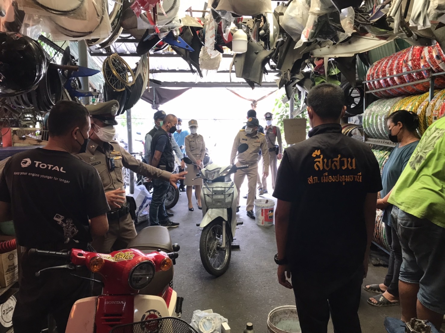 ตำรวจเมืองปทุมธานี ร่วมหน่วยงานที่เกี่ยวข้อง ตรวจร้านอุปกรณ์อะไหล่แต่งรถและร้านซ่อมรถจยย. ขอความร่วมมือปฏิบัติตามกฎหมายอย่าแต่งท่อเสียงดัง