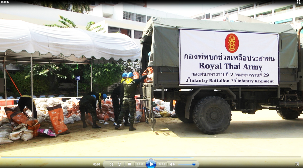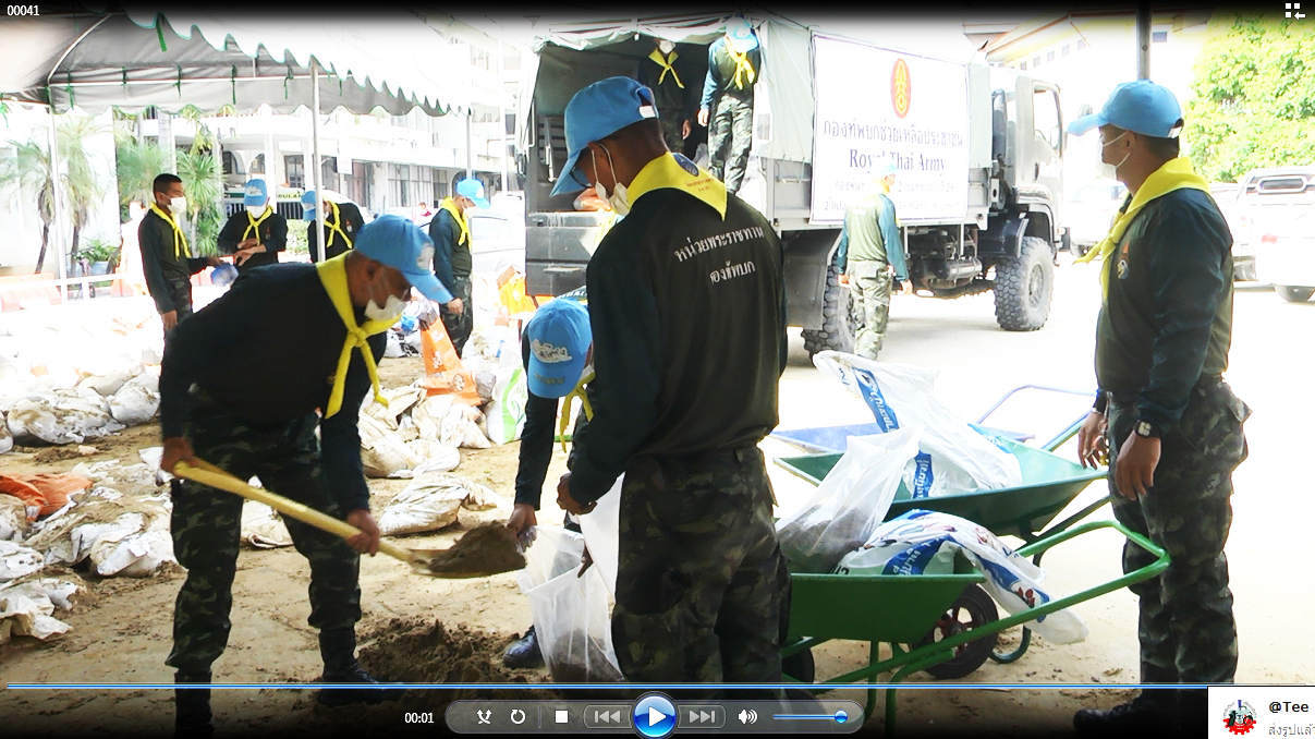 ที่ โรงพยาบาลศูนย์เจ้าพระยายมราช อำเภอเมืองสุพรรณบุรี กำลังเจ้าหน้าที่ทหารจากกองพันทหารราบที่ 2 กรมทหารราบที่ 29 จำนวน 30 นายกำลังเจ้าหน้าที่กองอำนวยการรักษาความมั่นคงภายในจังหวัดสุพรรณบุรี เข้าช่วยเหลือฟื้นฟูเก็บกวาดแนวคันกั้นน้ำบริเวณทางเข้าออกโรงพยาบาลศูนย์เจ้าพระยายมราช และเก็บกระสอบทรายที่ใช้ทำแนวกั้นน้ำโดยรอบโรงพยาบาล และกระสอบทรายในบริเวณโรงพยาบาลทั้งหมดขึ้นของทหารและรถของโรงพยาบาลนำออกไปเก็บไว้ใช้งานอื่นต่อไป