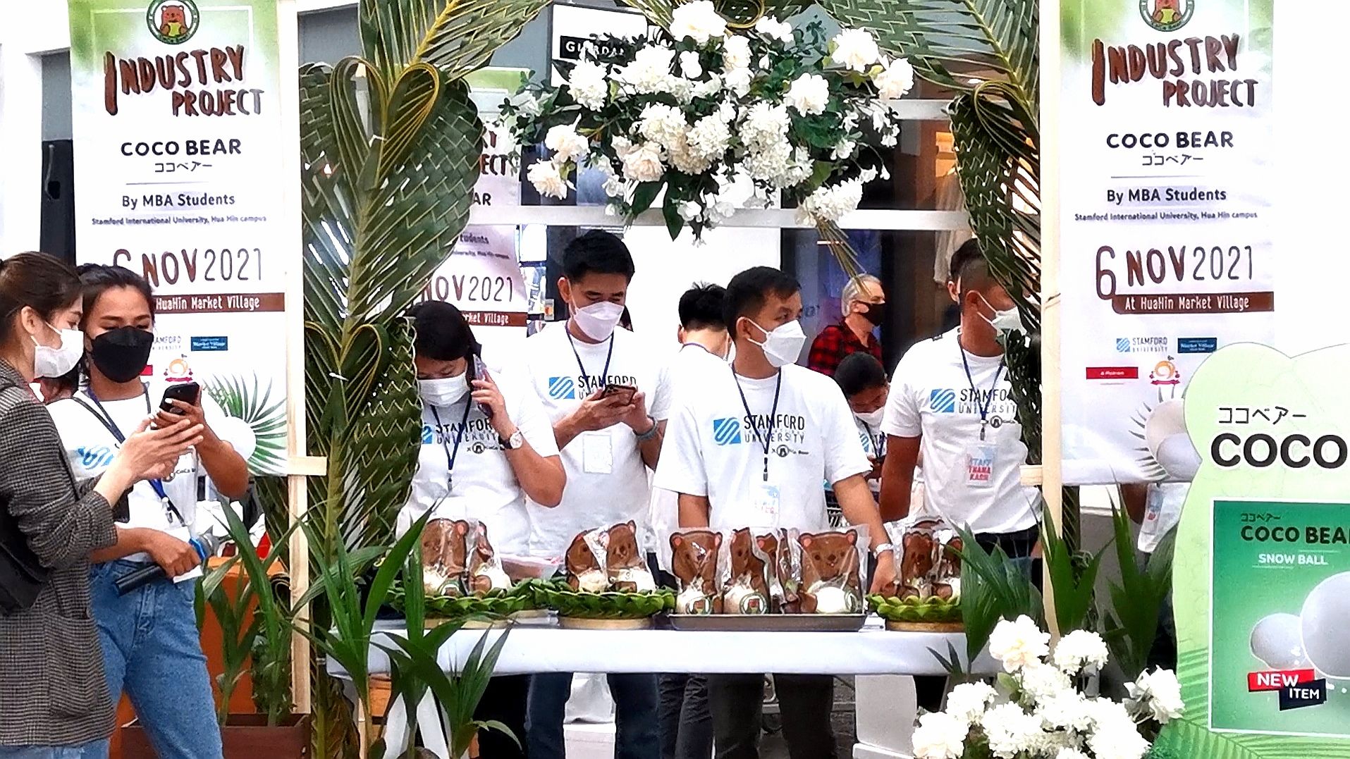 โดยจากการเรียนรู้ในห้องเรียนของนักศึกษาระดับ ป.โท มหาวิทยาลัยนานาชาติแสตมฟอร์ดฯ สู่การนำองค์ความรู้ที่ได้จากการเรียนรู้ในหลายๆ วิชามาบูรณาการ สู่การนำไปปฏิบัติจริง จึงได้เกิด “CoCo Bear” มะพร้าว ซึ่งมี ถิ่นกำเนิดจากอำเภอดำเนินสะดวก ซึ่งถือได้ว่าเป็นแหล่งปลูกมะพร้าวน้ำหอมที่มีคุณภาพที่ดีที่สุดในประเทศไทย โดยใช้มะพร้าวเกรดเอนำมาผลิต เพื่อการส่งออกในบรรจุภัณฑ์สะดวกพร้อมดื่ม เน้นความน่ารักในสไตล์ญี่ปุ่นและสะดวกในการดื่มในราคา ที่สมเหตุสมผล จนสามารถพัฒนาต่อยอดสร้างธุรกิจนี้ขึ้นมาได้จริงในรูปแบบ สตาร์ตอัพขนาดย่อม จนมีกลุ่มนายทุนภายนอกที่ได้เห็น รูปแบบแนวคิดและความน่าสนใจของ “CoCo Bear” ได้มีการติดต่อสนใจซื้อ ผลิตภัณฑ์กับทางกลุ่มนักศึกษาระดับปริญญาโท มหาวิทยาลัยนานาชาติแสตมฟอร์ด วิทยาเขตหัวหิน