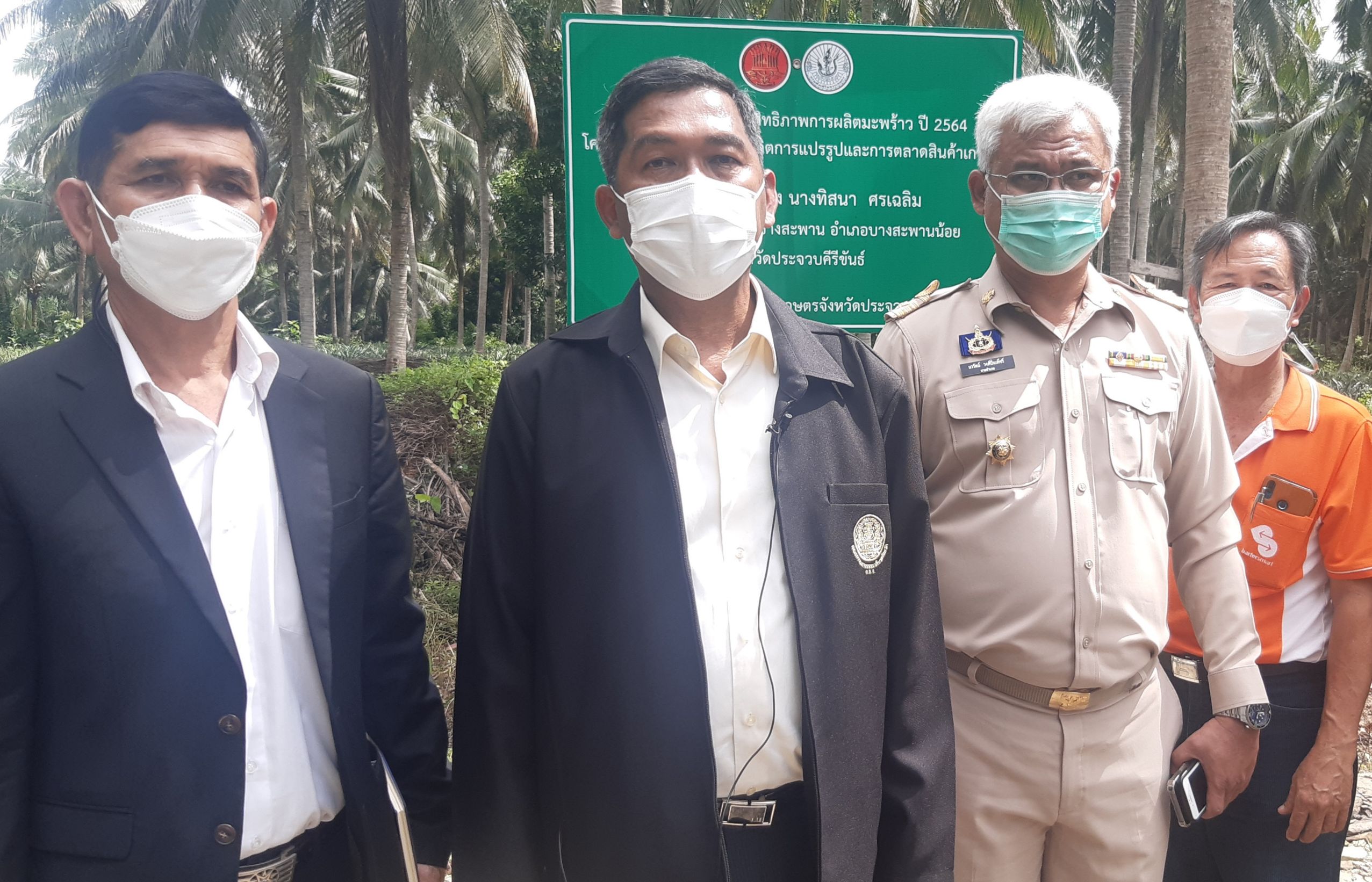 ต่อมา ผู้ตรวจราชการสำนักนายกรัฐมนตรีนำคณะ กธจ. ติดตามการดำเนินงานโครงการ พัฒนาและปรับปรุงโครงสร้างพื้นฐานด้านการเกษตร ส่งเสริมการผลิตมะพร้าว แปลงการเรียนรู้ของนางทิสนา ศรเฉลิม หมู่ที่ 8 ต.บางสะพาน อ.บางสะพานน้อย จากนั้น เข้าเยี่ยมชมศูนย์เรียนรู้มะพร้าวครบวงจร วิสาหกิจชุมชน กลุ่มร้อยพันมะพร้าวไทย ต.ปากแพรก ต่อมาได้เดินทางดูโครงการก่อสร้างถนน คอนกรีตเสริมเหล็กสายตลาดบางสะพานน้อยบ้านเขาจันทร์หมู่ที่ 2,3,4,6 สร้างโดย อบต.ปากแพรก ความกว้าง 6 เมตรยาว 20 เมตร หนา 0.15 เมตร งบประมาณ 9,136,000 บาท ที่ได้ดำเนินการเสร็จสิ้นแล้ว เพื่อให้ประชาชนได้ใช้ประโยชน์ในการขนถ่ายพืชผลทางการเกษตรและเดินทางจากหมู่บ้านไปตลาดบางสะพานน้อย