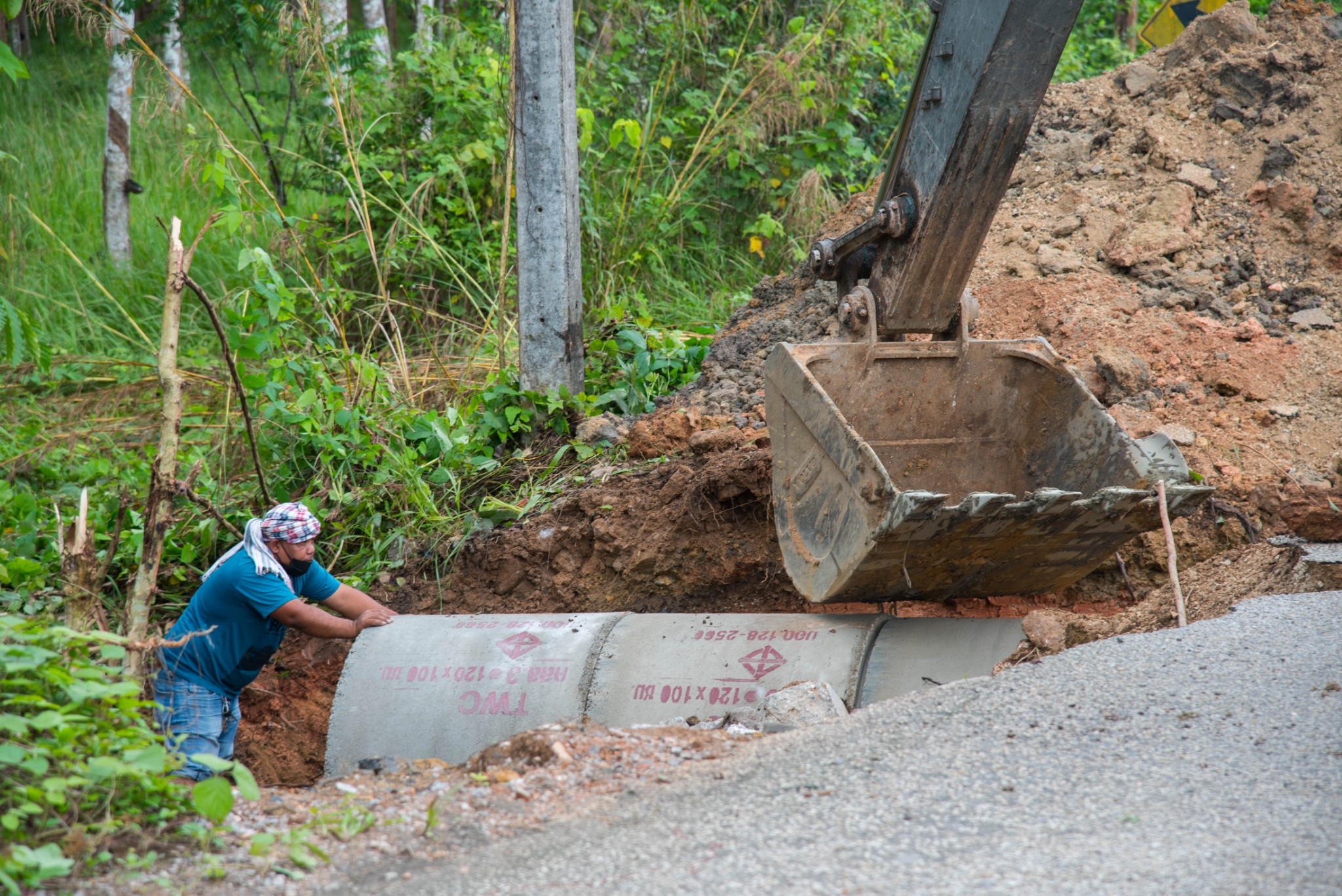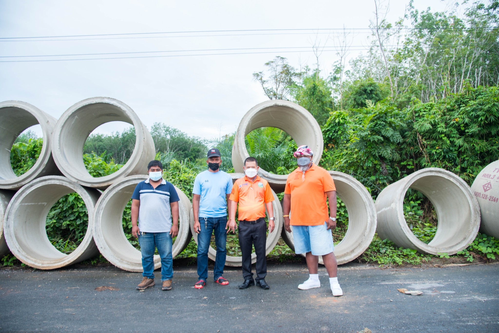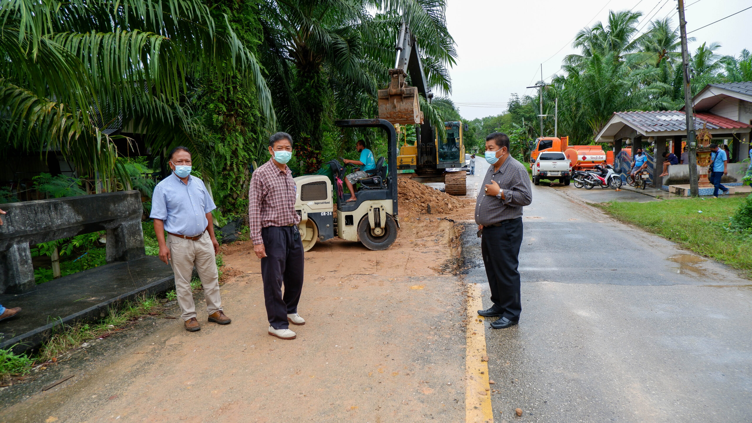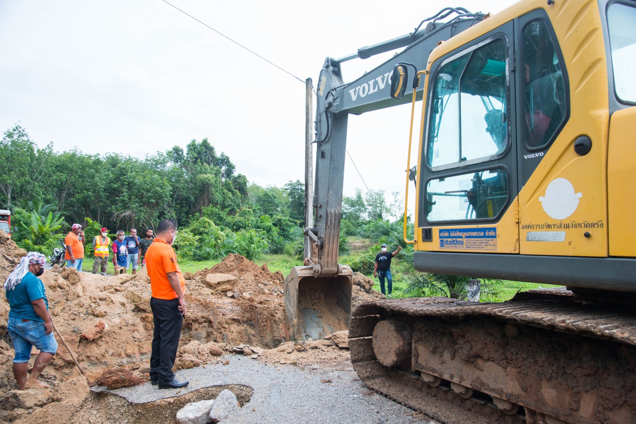 นอกจากนี้ นายบุ่นเล้ง โล่สถาพรพิพิธ นายก อบจ.ตรัง ยังได้มอบหมายให้นายละมุน สงบดี เลขานุการนายก อบจ.ตรัง และนายณรงค์ พิชัยรัตน์ นายช่างโยธาอาวุโส กองช่าง อบจ.ตรัง และเจ้าหน้าที่ที่เกี่ยวข้อง ลงพื้นที่ติดตามการซ่อมแซมถนนสายสี่แยกหนองดุกหมู่ที่ 4 – เชื่อมกับปากสุหรา หมู่ที่ 10 ตำบลท่าสะบ้า อำเภอวังวิเศษ จังหวัดตรัง ซึ่งชำรุดจากถูกน้ำกัดเซาะท่อระบายน้ำ ความยาวประมาณ 20 เมตร และความลึก ประมาณ 2.5 เมตร โดยวันนี้ เจ้าหน้าที่กองช่าง อบจ.ตรัง ได้ฝังท่อระบายน้ำ ขนาดเส้นผ่านศูนย์กลาง 1.20 เมตร จำนวน 12 ท่อน พร้อมหินคลุก 30 คิว ดำเนินการเสร็จเรียบร้อย เพื่อเปิดเส้นทางจราจรให้ประชาชนได้สัญจรไปมาสร้างความสะดวก และปลอดภัยให้กับประชาชน