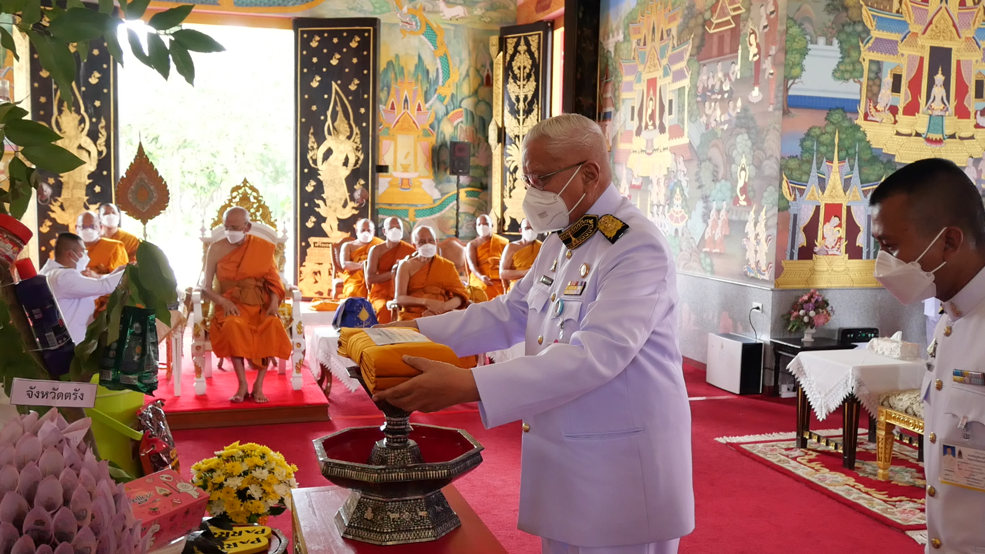 โดยมี พระพรหมจริยาจารย์ เจ้าคณะใหญ่หนใต้ เจ้าอาวาสวัดกะพังสุรินทร์ พระอารามหลวง เป็นประธานฝ่ายสงฆ์ และนายขจรศักดิ์ เจริญโสภา ผู้ว่าราชการจังหวัดตรัง พร้อมด้วยหัวหน้าส่วนราชาชการ ข้าราชการ ประชาชนมาร่วมในพิธีทอดผ้าป่าสมทบทุนโครงการเล่าเรียนหลวงสำหรับพระสงฆ์ไทย ซึ่งต้องปฏิบัติตามมาตรการป้องกันโควิด-19 อย่างเคร่งครัด สำหรับในเขตปกครองคณะใหญ่หนใต้ ประกอบด้วย ภาค 16 ภาค 17 และภาค 18 มีผู้มีจิตศรัทธาร่วมสมทบทุนโครงการเล่าเรียนหลวงสำหรับพระสงฆ์ไทยในจังหวัดตรัง เป็นเงินรวม 450,450 บาท ยอดรวมทั้ง 14 จังหวัด เป็นเงิน 8,289,326.50 บาท โครงการทุนเล่าเรียนหลวงสำหรับพระสงฆ์ไทย จัดตั้งขึ้นตามพระราชดำริของ พระบาทสมเด็จพระบรมชนกาธิเบศร มหาภูมิพลอดุลยเดชมหาราช บรมนาถบพิตร เมื่อวันที่ 5 กุมภาพันธ์ 2547 พร้อมพระราชทานทุนปฐมฤกษ์ส่วนพระองค์ เป็นทุนเริ่มแรกเพื่อสนับสนุนพระภิกษุและสามเณร ให้มีโอกาสศึกษาพระพุทธศาสนาขั้นสูงจากสถาบันพุทธศาสนาในประเทศ โดยปัจจุบัน พระบาทสมเด็จพระเจ้าอยู่หัว ทรงรับโครงการทุนเล่าเรียนหลวงสำหรับพระสงฆ์ไทย ไว้ในพระบรมราชูปถัมภ์
