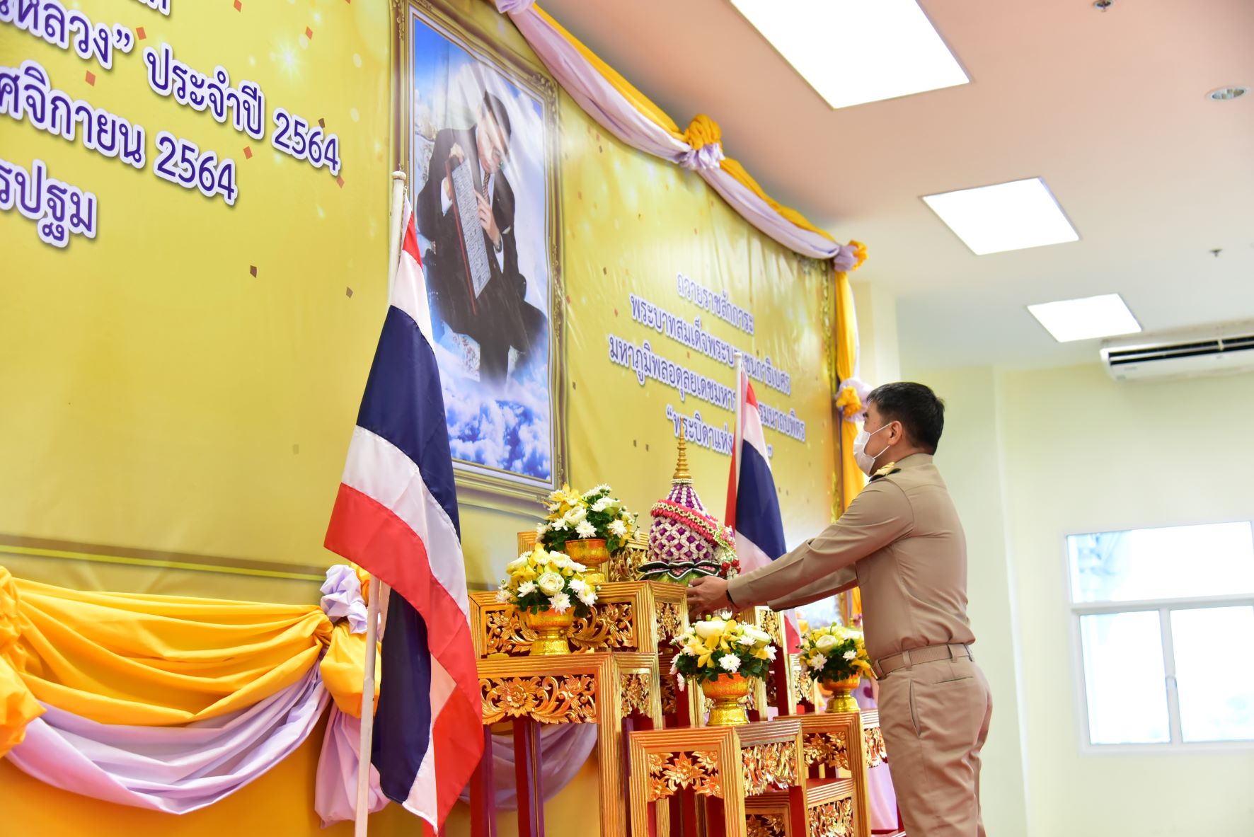 วันที่ 14 พฤศจิกายน 2564 ที่ห้องประชุมสนามจันทร์ ศาลากลางจังหวัดนครปฐม นายธนิศร์ วงศ์ปิยะสถิตย์ รองผู้ว่าราชการจังหวัดนครปฐม เป็นประธานวางพานพุ่มดอกไม้สด เพื่อแสดงความจงรักภักดีและสำนึกในพระมหากรุณาธิคุณของพระบาทสมเด็จพระบรมชนกาธิเบศร มหาภูมิพลอดุลยเดชมหาราช บรมนาถบพิตร เนื่องในวันพระบิดาแห่งฝนหลวง ประจำปี 2564 โดยมีหัวหน้าส่วนราชการ ข้าราชการ เจ้าหน้าที่ ร่วมพิธี