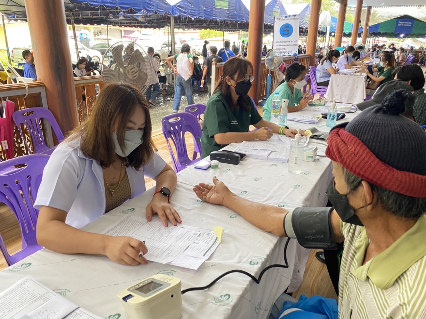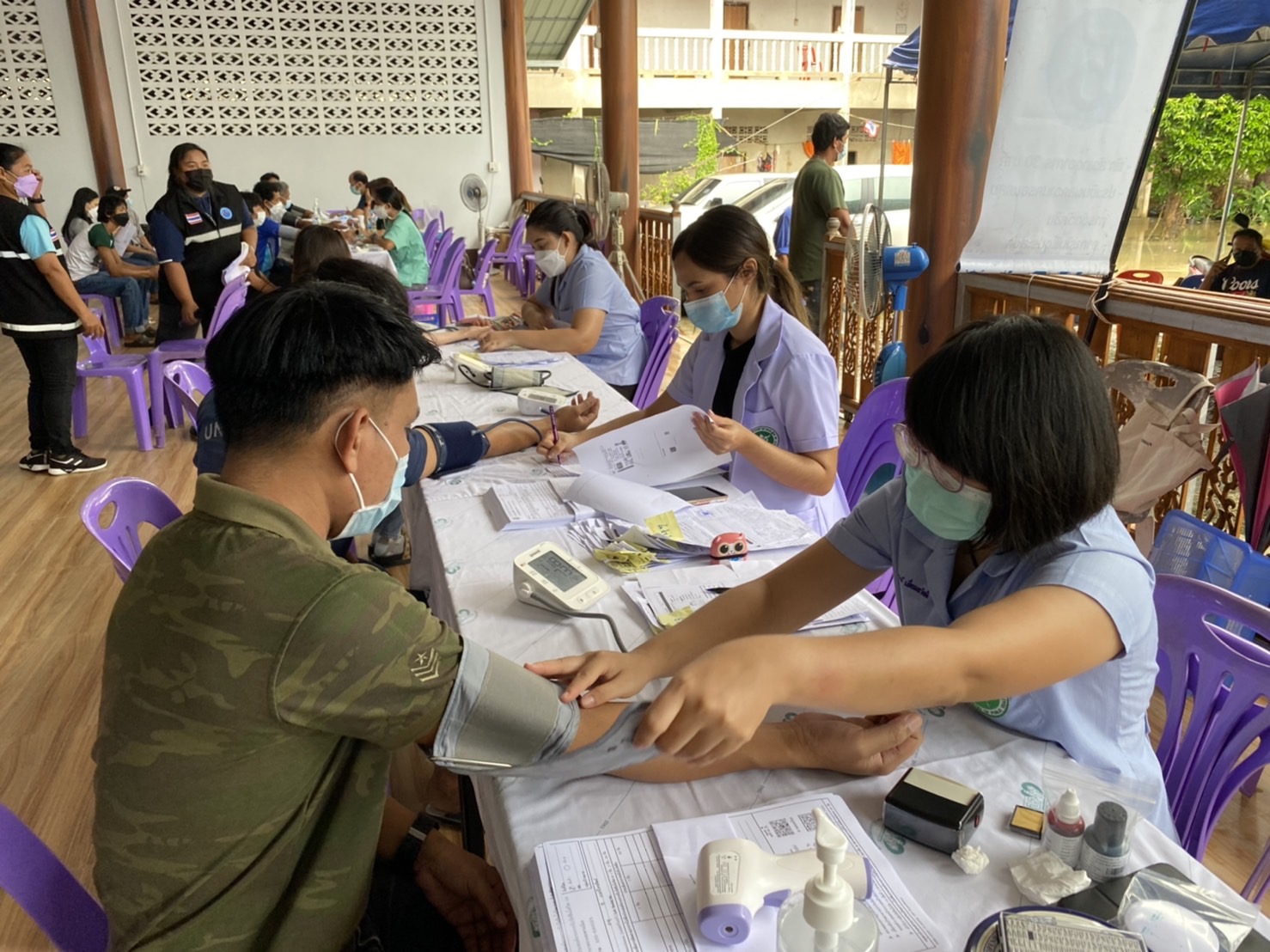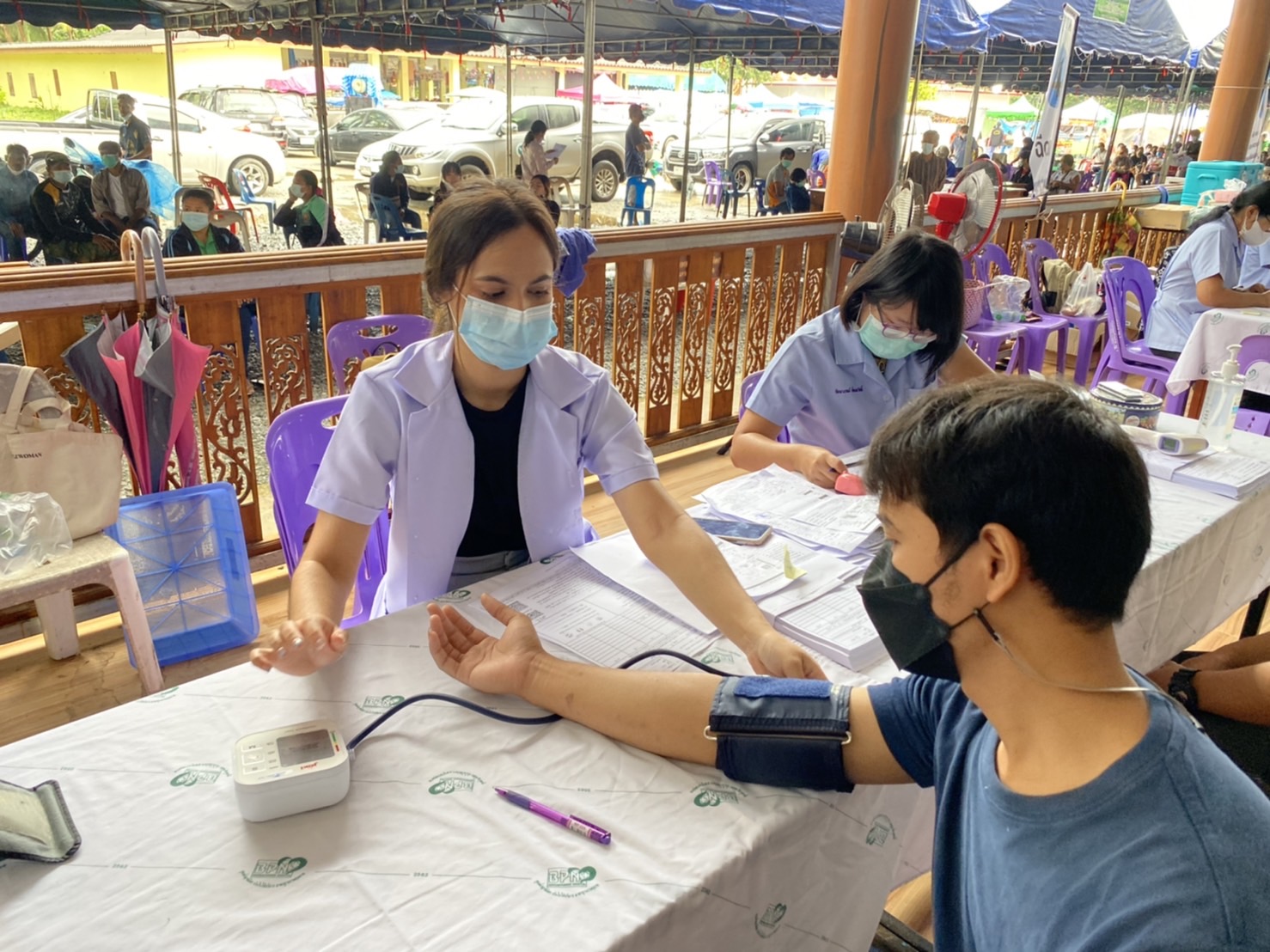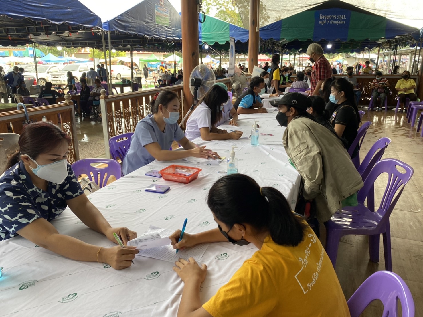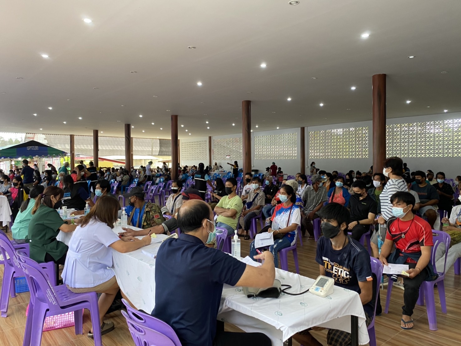 วันที่ 17 พฤศจิกายน 2564 ผู้สื่อข่าวรายงาน ที่วัดละหาน หมู่ที่ 4 ต.บางสะพาน อ.บางสะพานน้อย จ.ประจวบคีรีขันธ์ ประชาชนชาวอำเภอบางสะพานน้อย จำนวนกว่า ,1500 คน เดินทางมาฉีดวัคซีน สูตร เข็ม 1 แอสตร้าเซเนก้า เข็ม 2 ไฟเซอร์ วันแรก โดยมีเจ้าหน้าที่ จาก ร.พ.บางสะพานน้อย เจ้าหน้าที่ รพ.สต.ในสังกัดของสำงานสาธารณสุขอำเภอบางสะพานน้อย และ อสม. ร่วมกว่า 60 คน ร่วมให้บริการ
