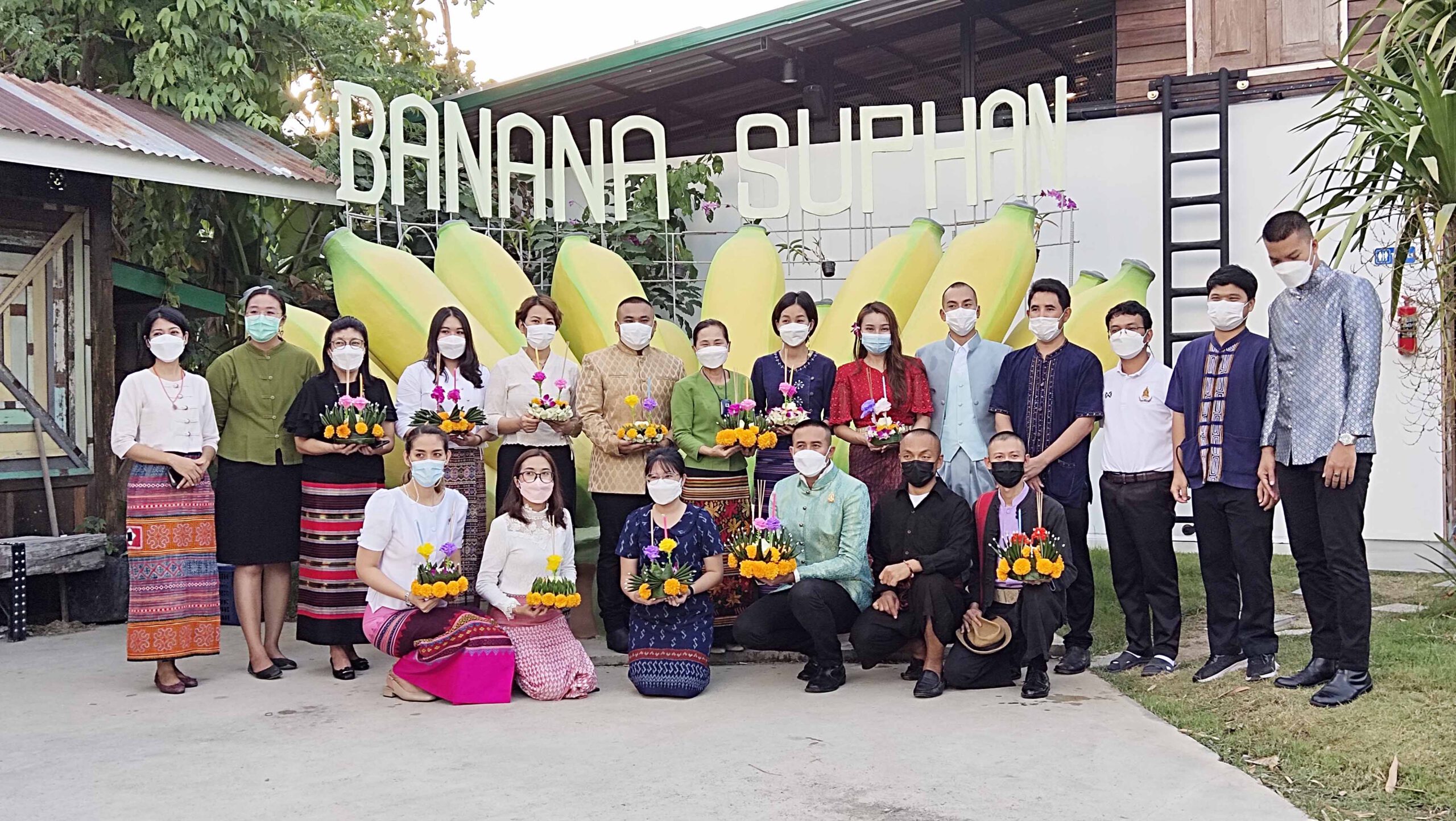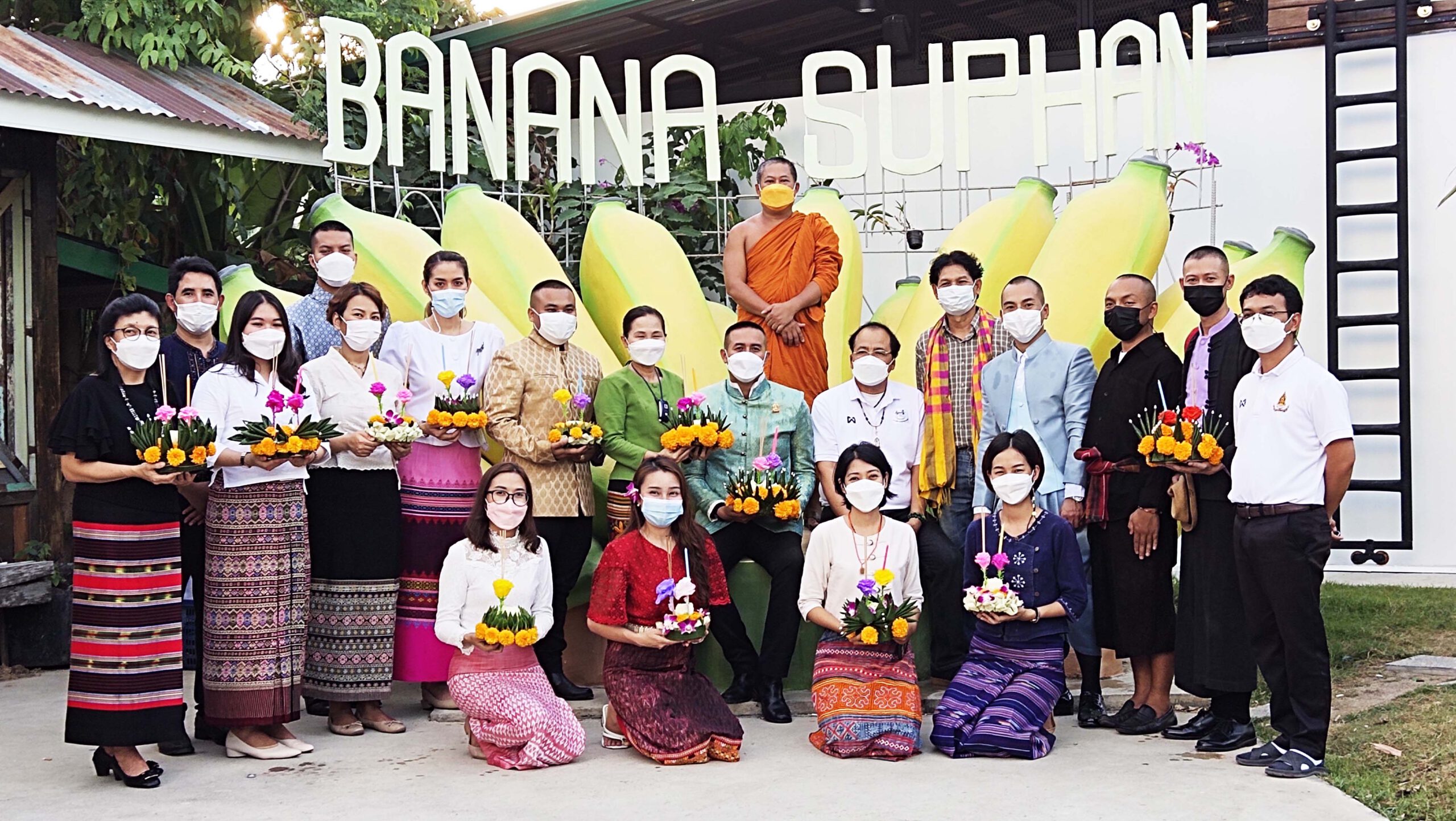 ที่ บานาน่า อาร์ต มาร์เก็ต สวนกล้วยสุพรรณบุรี ศูนย์อนุรักษ์พันธุ์กล้วยสุพรรณบุรี ร่วมกับ สำนักงานวัฒนธรรมจังหวัดสุพรรณบุรี วิทยาลัยสงฆ์สุพรรณบุรี ศรีสุวรรณภูมิ เตรียมจัดงานสืบสานประเพณีลอยกระทง สายน้ำ สายชีวิต สุพรรณบุรี แต่งชุดไทย นั่งเรือแจว ลอยกระทง งานจะจัดขึ้นระหว่างวันที่ 18-21 พ.ย.2564 ลอยกระทงวิถีใหม่ มีกิจกรรมต่างๆมากมาย จัดงานปลอดภัยตามมาตรการ การป้องกันโควิด 19 อย่างเคร่งครัด ทุกคนที่เข้ามาในงานต้องสวมหน้ากาก ล้างมือ เว้นระยะห่าง