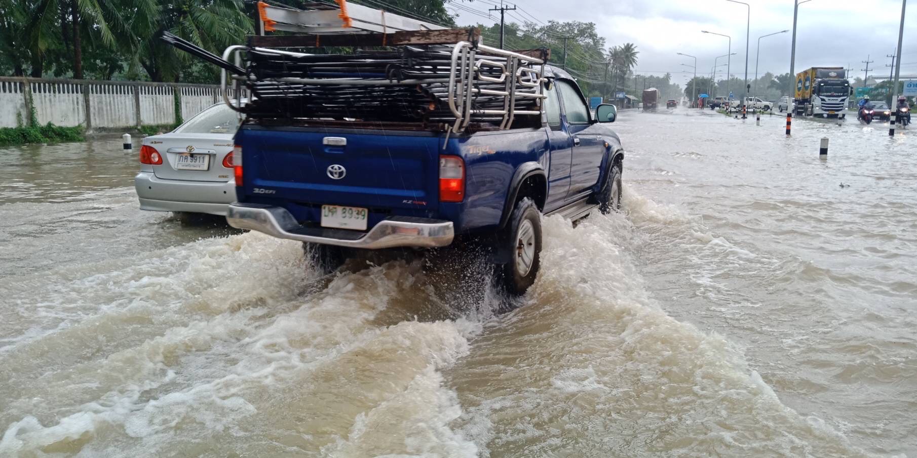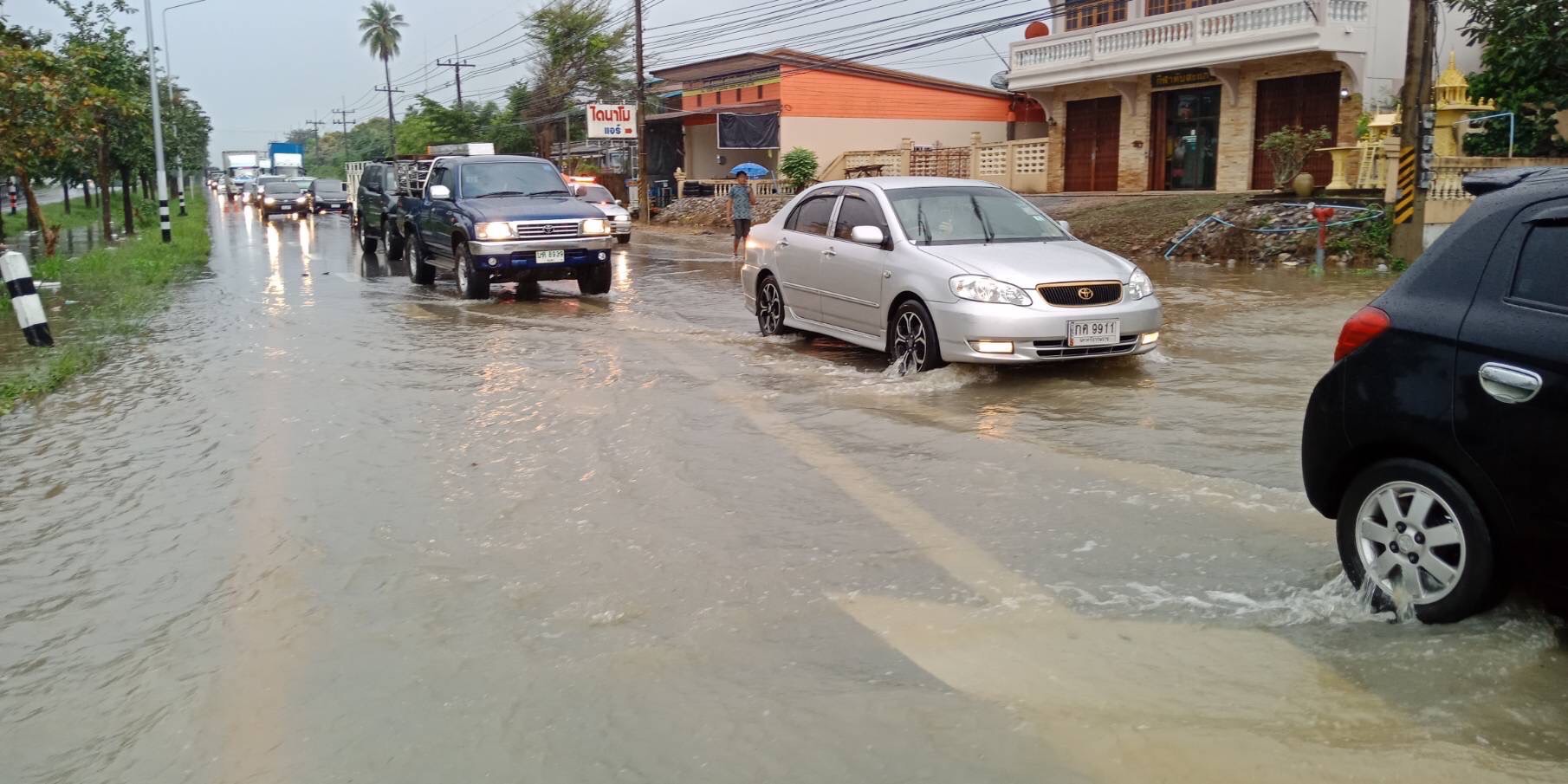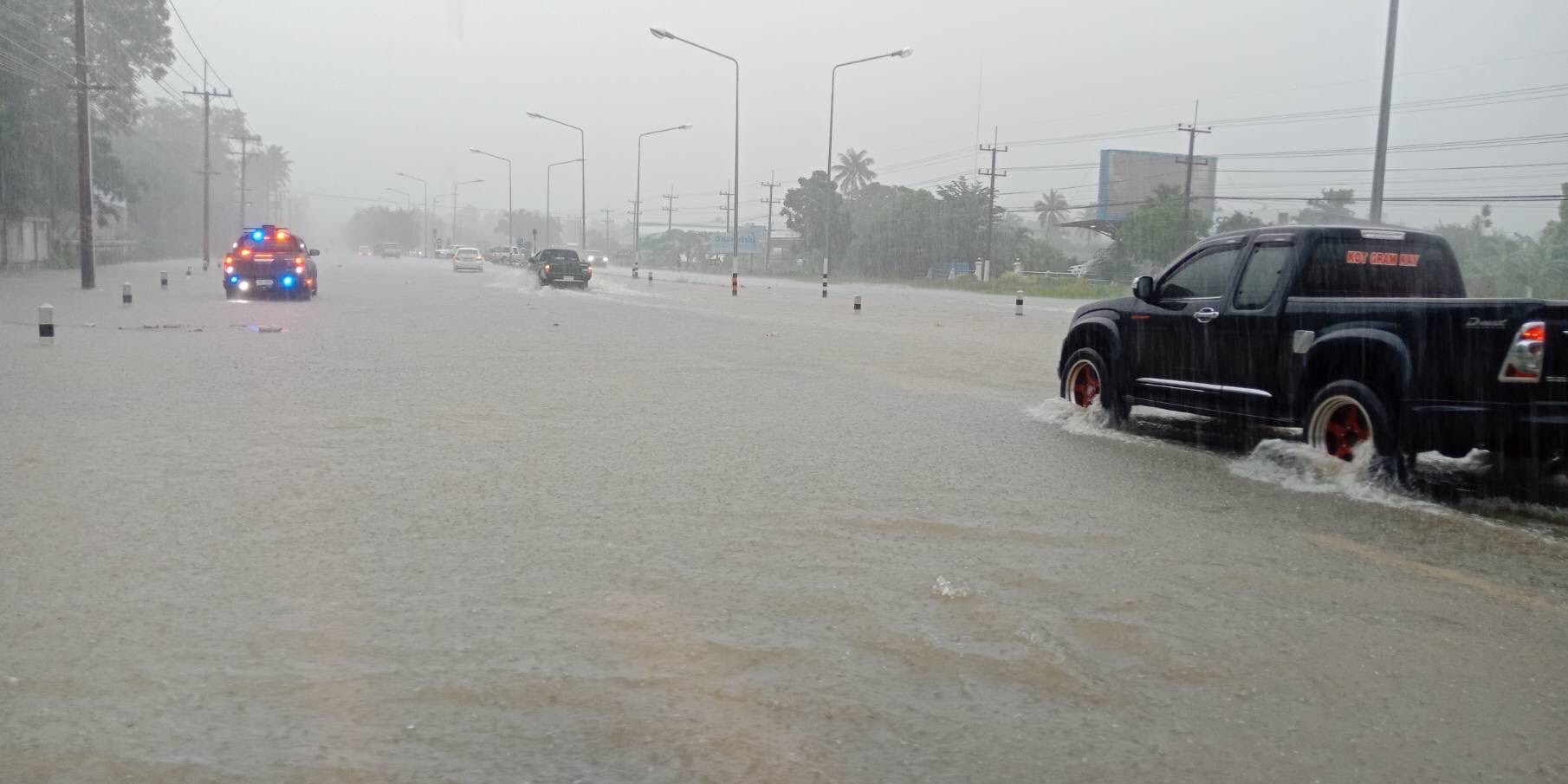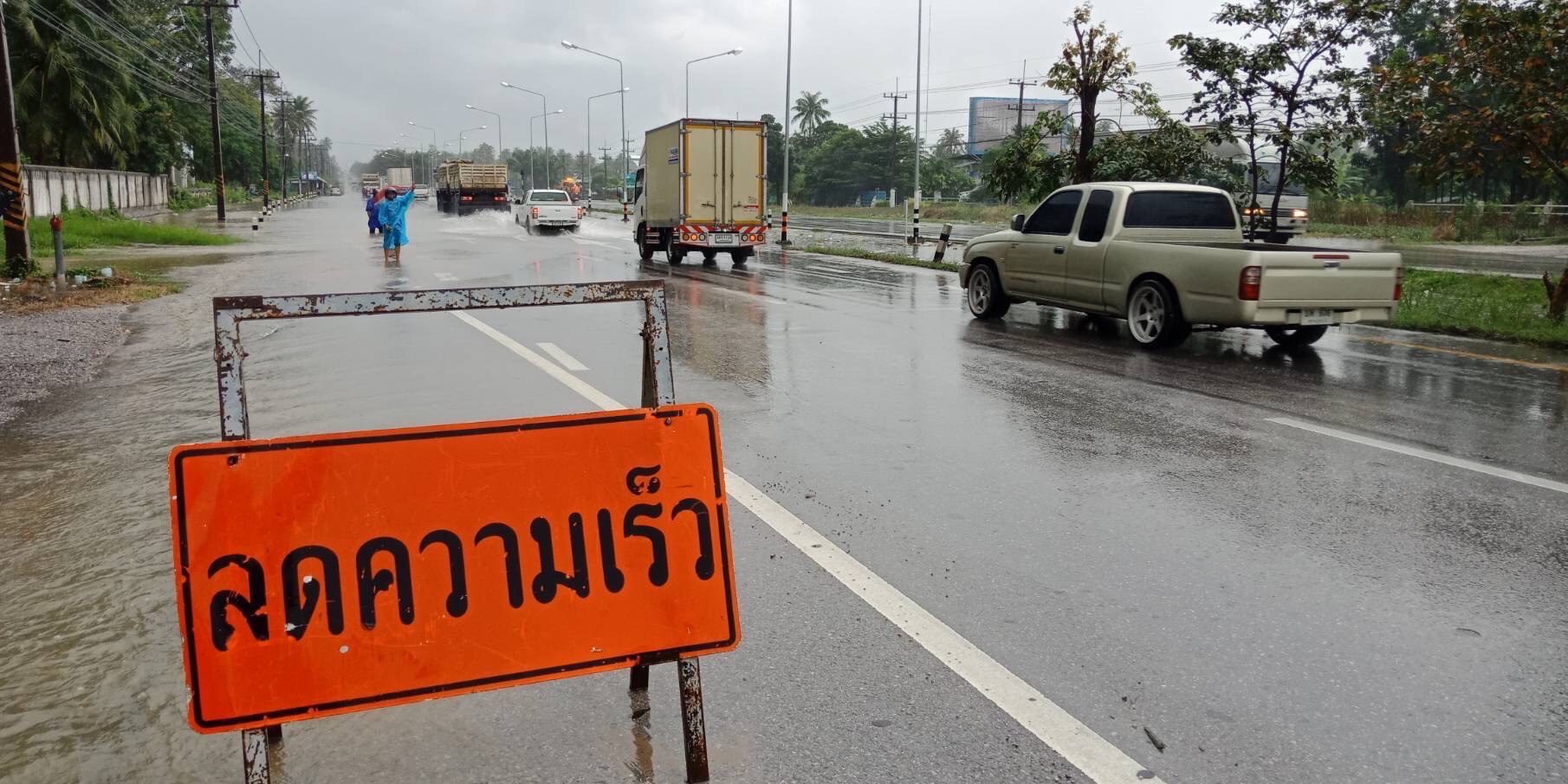 เตือนอันตรายน้ำข้ามถนนเพชรเกษมที่ทับสะแก กระทบขึ้นล่อง 14จังหวัดภาคใต้