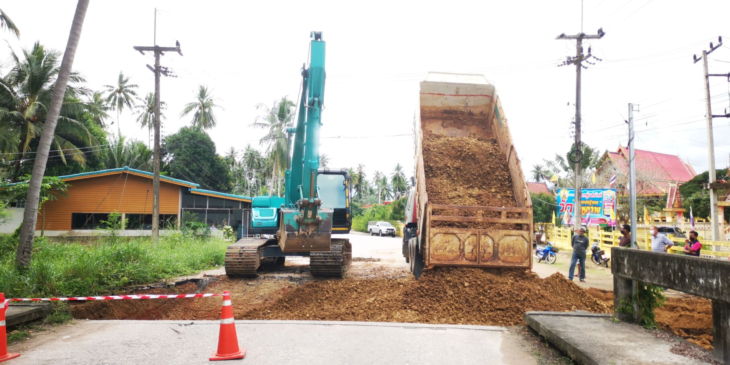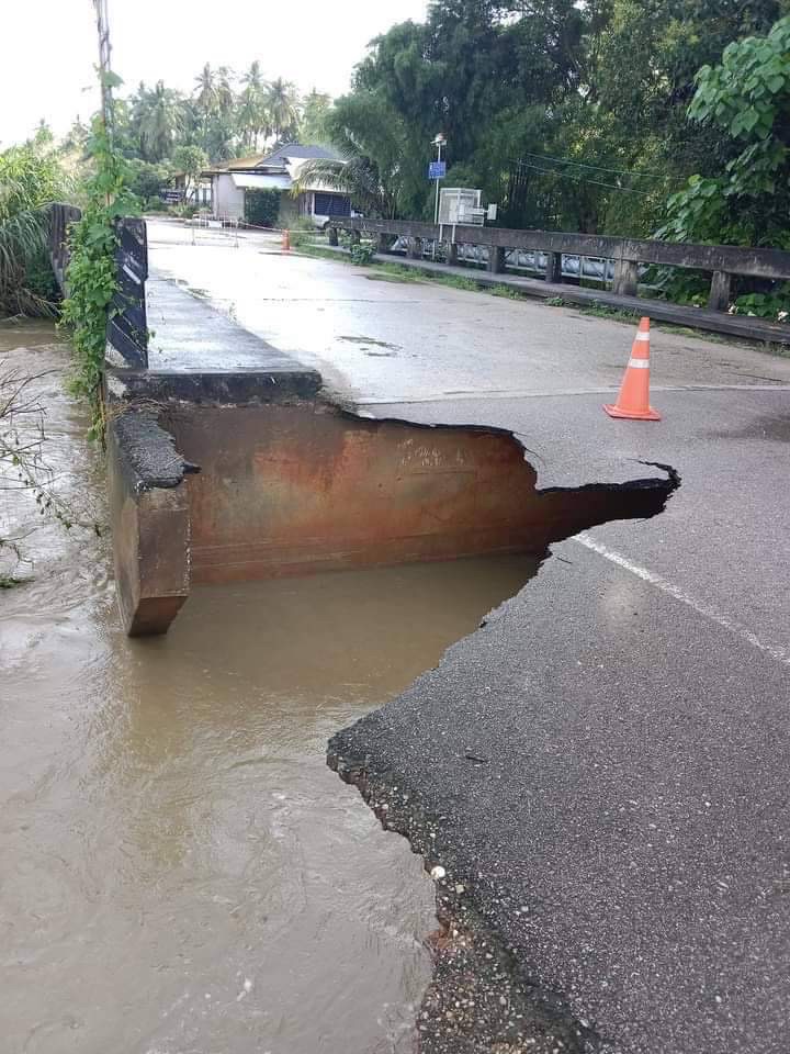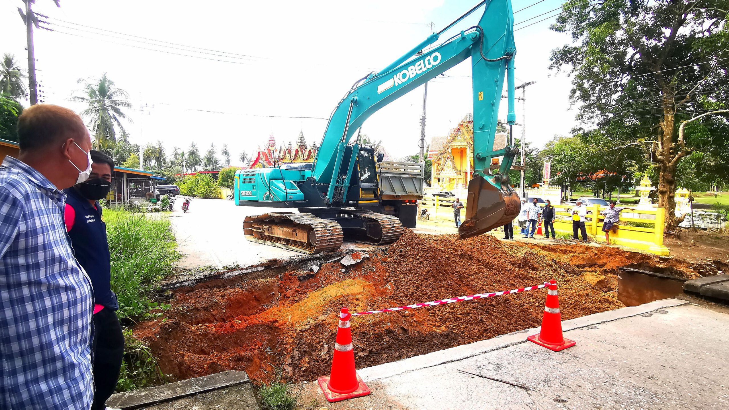 นายลือยศ ภู่ทอง สจ.ประจวบคีรีขันธ์ เขตอำเภอทับสะแก เปิดเผยว่า เมื่อช่วงค่ำที่ผ่านมาระดับน้ำในคลองทับสะแกได้เพิ่มสูงขึ้นอย่างต่อเนื่องจากระดับน้ำปกติกว่า 5 เมตร ซึ่งจุดบริเวณคอสะพานจะเป็นช่วงหัวโค้งน้ำจึงแทงเข้ามาในบริเวณคอสะพานทำให้เป็นปัญหา พอน้ำเริ่มกัดเซาะใต้ผิวถนนที่เป็นคอสะพาน น้ำก็จะวนอยู่เฉพาะด้านหน้าทำให้จุดบริเวณตรงนี้พังเสียหาย จนแทงทะลุใต้พื้นถนนบริเวณคอสะพานทำให้ได้รับความเสียหาย โดยเมื่อช่วงเช้าเมื่อน้ำลดระดับลงจึงได้แจ้งหน่วยงานให้รีบดำเนินการซ่อมแซมเป็นการชั่วคราวเพื่อให้ชาวบ้านได้ใช้สัญจรไปมาได้ ซึ่งถนนเส้นนี้ตั้งแต่แยกจากถนนเพชรเกษมเข้ามาก็จะเป็นในส่วนของ อบจ.เป็นคนดูแล ซึ่งในเบื้องต้นก็จะรีบดำเนินการซ่อมแซมเป็นการชั่วคราวให้ชาวบ้านได้ใช้งานได้ก่อน และจะให้นายช่างของ อบจ. ประสานงานกับทาง อบต. ดำเนินการตั้งงบประมาณดำเนินการปรับปรุงในส่วนนี้อีกครั้งต่อไป