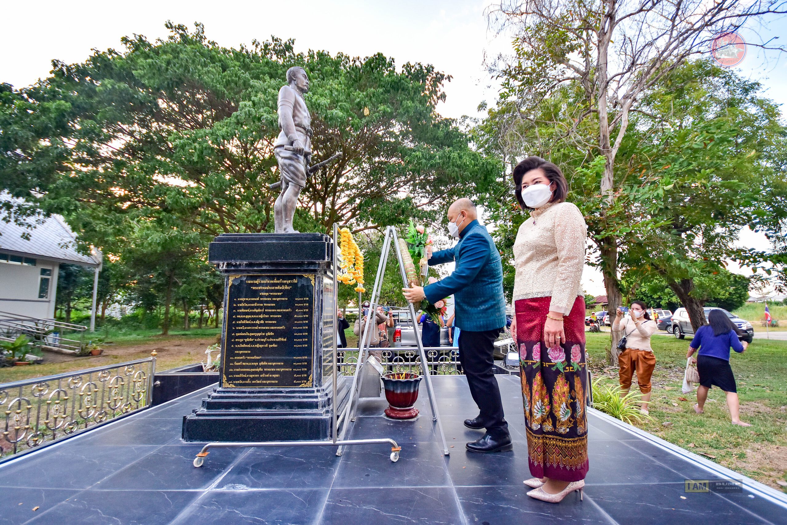นายชัยชาญ สิทธิวิรัชธรรม ผู้ว่าราชการจังหวัดสิงห์บุรีเดินทางมาเป็นประธานวางพวงมาลาอนุสาวรีย์