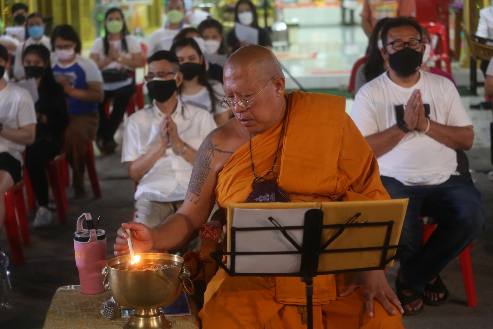 โดยมีคณะศิษย์ร่วมกันจุดธูปเทียน บูชาพระรัตนตรัย สิ่งศักดิ์สิทธ์ เทพยดา พร้อมจุดเทียนโอ่งน้ำมนต์ ซึ่งในวันนี้ตรงกับวันขึ้น 15 ค่ำ เดือน 12 เป็นวันลอยกระทง เป็นวันที่แหล่งน้ำทุกแห่ง จะมีประชาชนพากันไปวัดที่ตั้งอยู่ริมฝั่งแม่น้ำ ลำคลองและตามที่มีท่าน้ำ หรือไปตามริมแม่น้ำ เพื่อลอยกระทงบูชา ขอขมาพระแม่คงคา ตามขนบธรรมเนียมประเพณีและวัฒนธรรมที่สืบสานกันมาตั้งแต่โบราณกาล ซึ่งวันเพ็ญเดือน 12 ในแต่ละปีจะเป็นวันที่พระจันทร์จะเต็มดวงสว่างไสว สวยงาม จึงมีการขอพรในการทำสิ่งใดๆให้เกิดเป็นมงคลแก่ชีวิต สำเร็จในสิ่งที่ได้ภาวนาขอพร