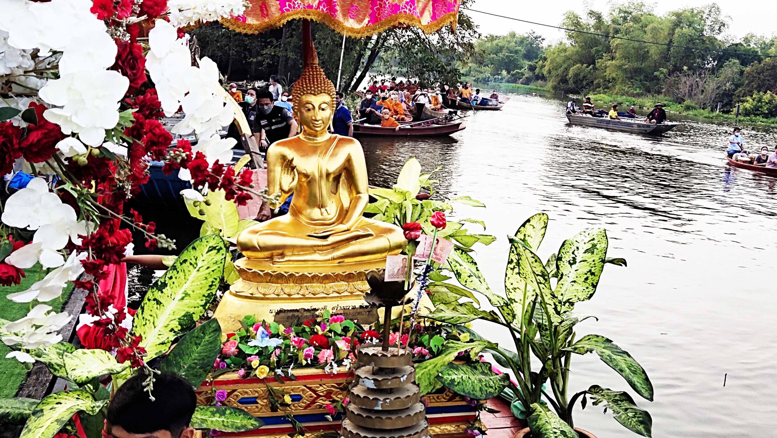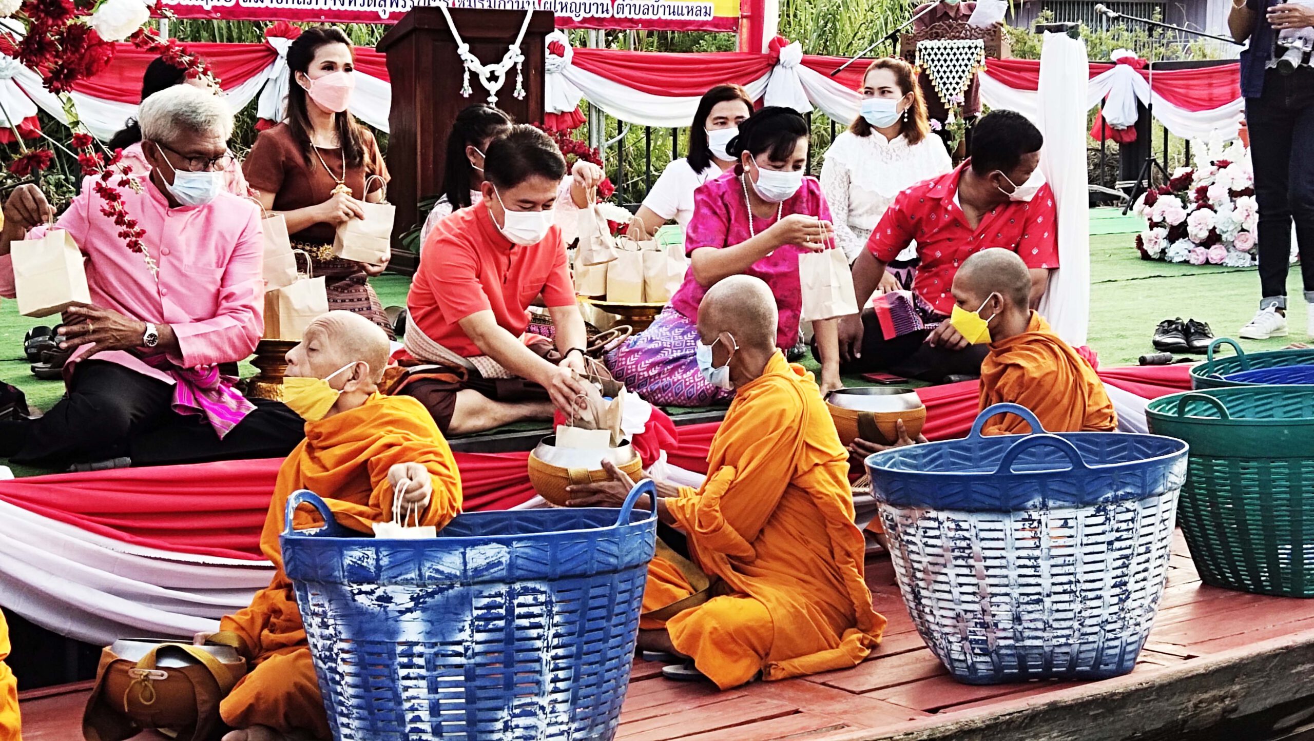 ที่ จ.สุพรรณบุรี นายณัฐภัทร สุวรรณประทีป ผู้ว่าราชการจังหวัดสุพรรณบุรี เปิดงานบุญประเพณีตักบาตรกลางน้ำ ประจำปี 2564 โดยจังหวัดสุพรรณบุรี ร่วมกับ อ.บางปลาม้า คณะกรรมการวัดป่าพฤกษ์ เทศบาลตำบลบ้านแหลม วัฒนธรรมและสภาวัฒนธรรม จ.สุพรรณบุรี ผู้นำชุมชน และชาวบ้านตำบลบ้านแหลม จัดขึ้น ณ วัดป่าพฤกษ์ ต.บ้านแหลม อ.บางปลาม้า โดยมีนายปรีชา น้อยอุทัย นากเทศมนตรีตำบลบ้านแหลม กล่าวรายงานวัตถุประสงค์ของการัดงาน มีนายปรีชาทองคำ รองผู้ว่าราชการจังหวัดสุพรรณบุรี นางณภัสสร สุวรรณประทีป นายกเหล่ากาชาดจังหวัดสุพรรณบุรี นายสรชัด สุจิตต์ สส.สุพรรณบุรี นายจตุพร อุ่นวิจิตร สอบจ.เขต 3 อ.บางปลาม้า นางนุชจรินทร์ อุ่นวิจิตร กำนันตำบลบ้านแหลม ประชาชนนักท่องเที่ยวร่วมพิธีจำนวนมาก