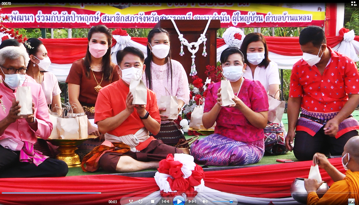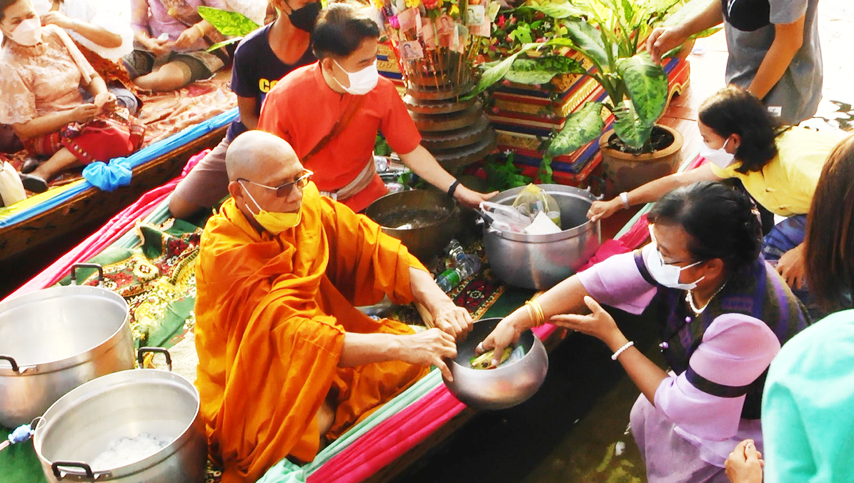 ทั้งนี้เพื่อเป็นการย้อนยุควิถีชีวิตของชาวบ้านสมัยโบราณ ที่อาศัยอยู่สองริมฝั่งแม่น้ำท่าจีน ให้เยาวชนรุ่นหลังได้ชมศึกษาหาความรู้และได้ช่วยกันอนุรักษ์ประเพณีเก่าแก่อันดีงามนี้เอาไว้ เป็นการส่งเสริมการท่องเที่ยววิถีชีวิตแห่งสายน้ำชาวบ้านและนักท่องเที่ยวได้พร้อมใจกันแต่งกายชุดไทยย้อนยุคหรือแต่งกายด้วยผ้าไทย และได้ช่วยกันรณรงค์ส่งเสริมให้ชาวบ้านและนักท่องเที่ยว ใช้วัสดุธรรมชาตีในการทำบุญตักบาตร เพื่อเป็นการช่วยกันรักษาสิ่งแวดล้อม บรรยากาศเป็นไปอย่างคึกคัก ภายใต้มาตรการป้องกันการแพร่ระบาดของเชื้อโควิด 19 ของกระทรวงสาธารณสุขอย่างเคร่งครัด