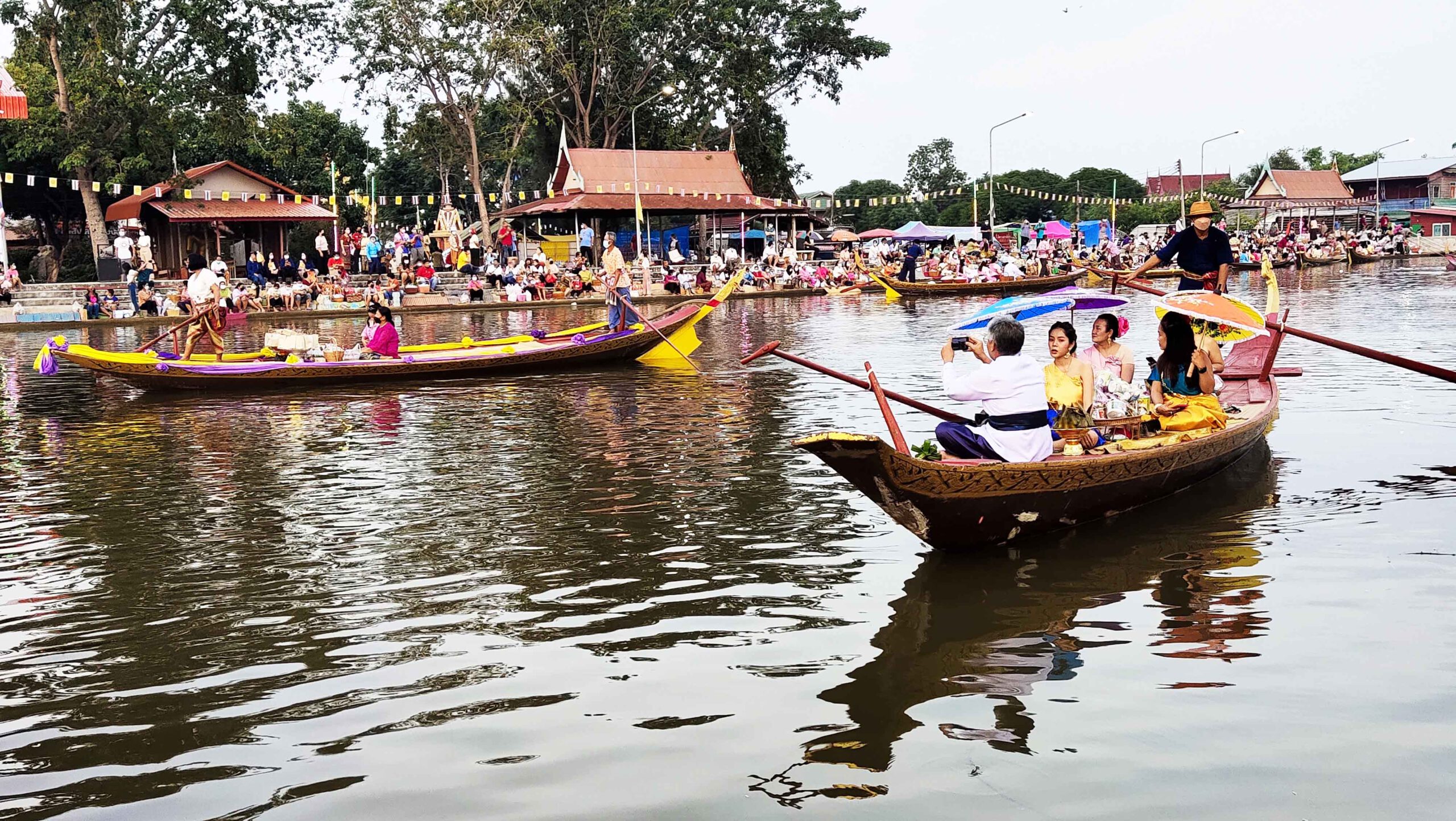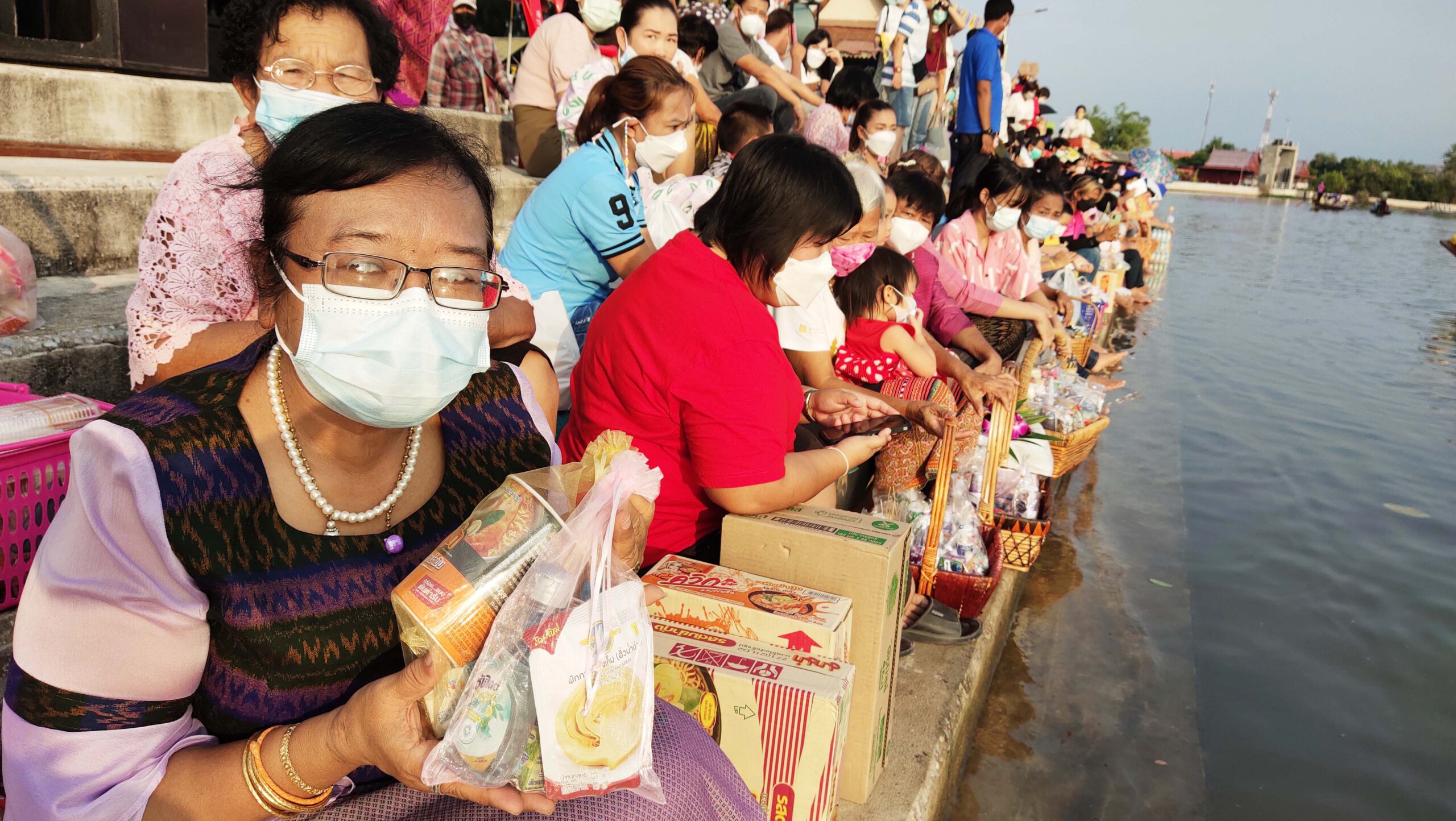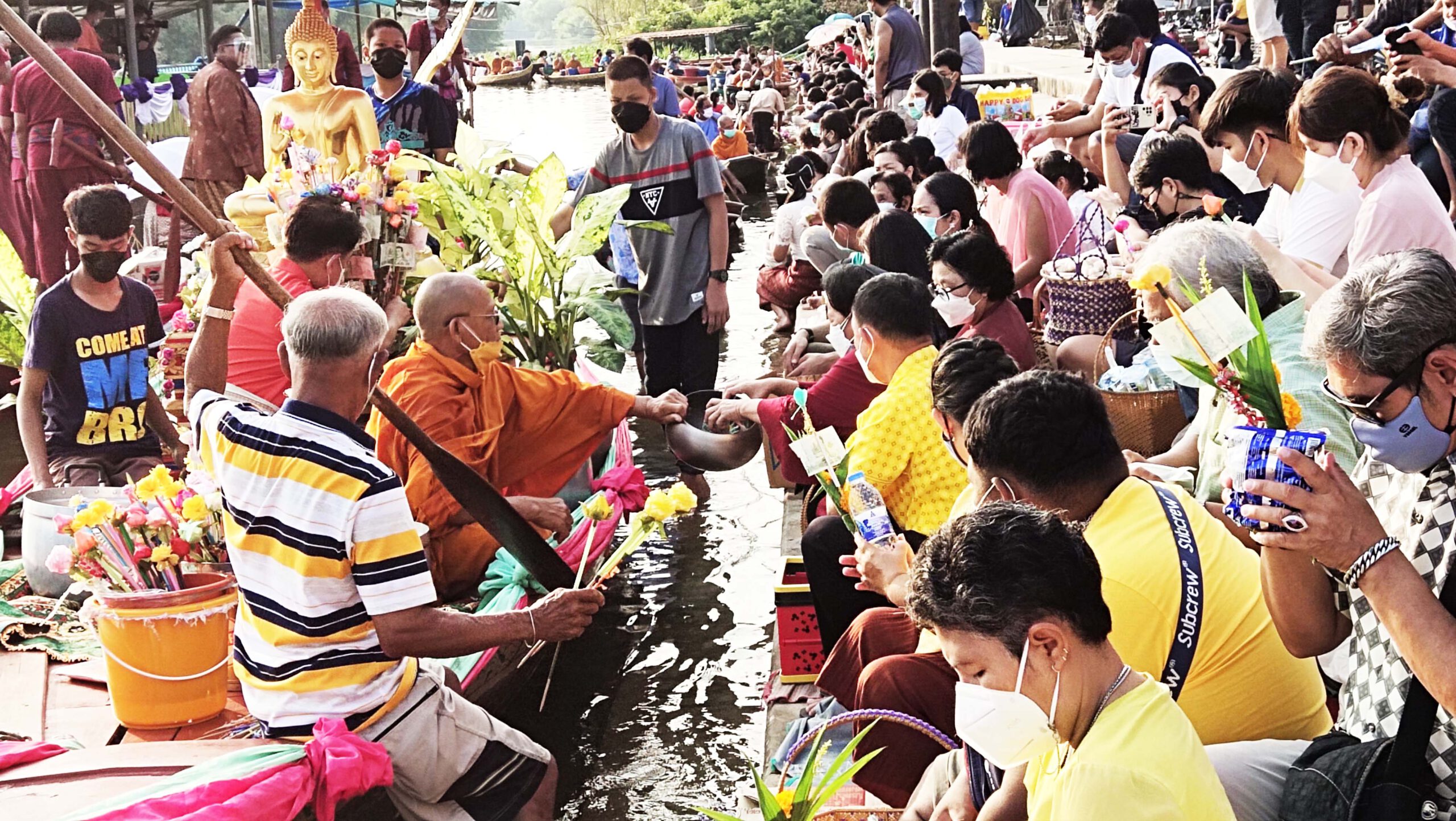 นักท่องเที่ยวและประชาชนซึ่งนอกจากเป็นคนในพื้นที่แล้วยังมีจำนวนมากที่เดินทางมาจากต่างจังหวัดที่มาร่วมงานประเพณีตักบาตรกลางน้ำครั้งนี้ต่างพูดเป็นเสียงเดียวกันว่ารู้สึกตื่นเต้นบางคนบอกไม่เคยเห็นที่ไหนมาก่อนนับเป็นบุญที่ได้มาร่วมทำบุญตักบาตรในครั้งนี้ อย่างไรก็ตามทุกคนที่มาร่วมงานครั้งนี้ต่างสวมใส่แมสก์ หน้ากาอนามัยกันทุกคน