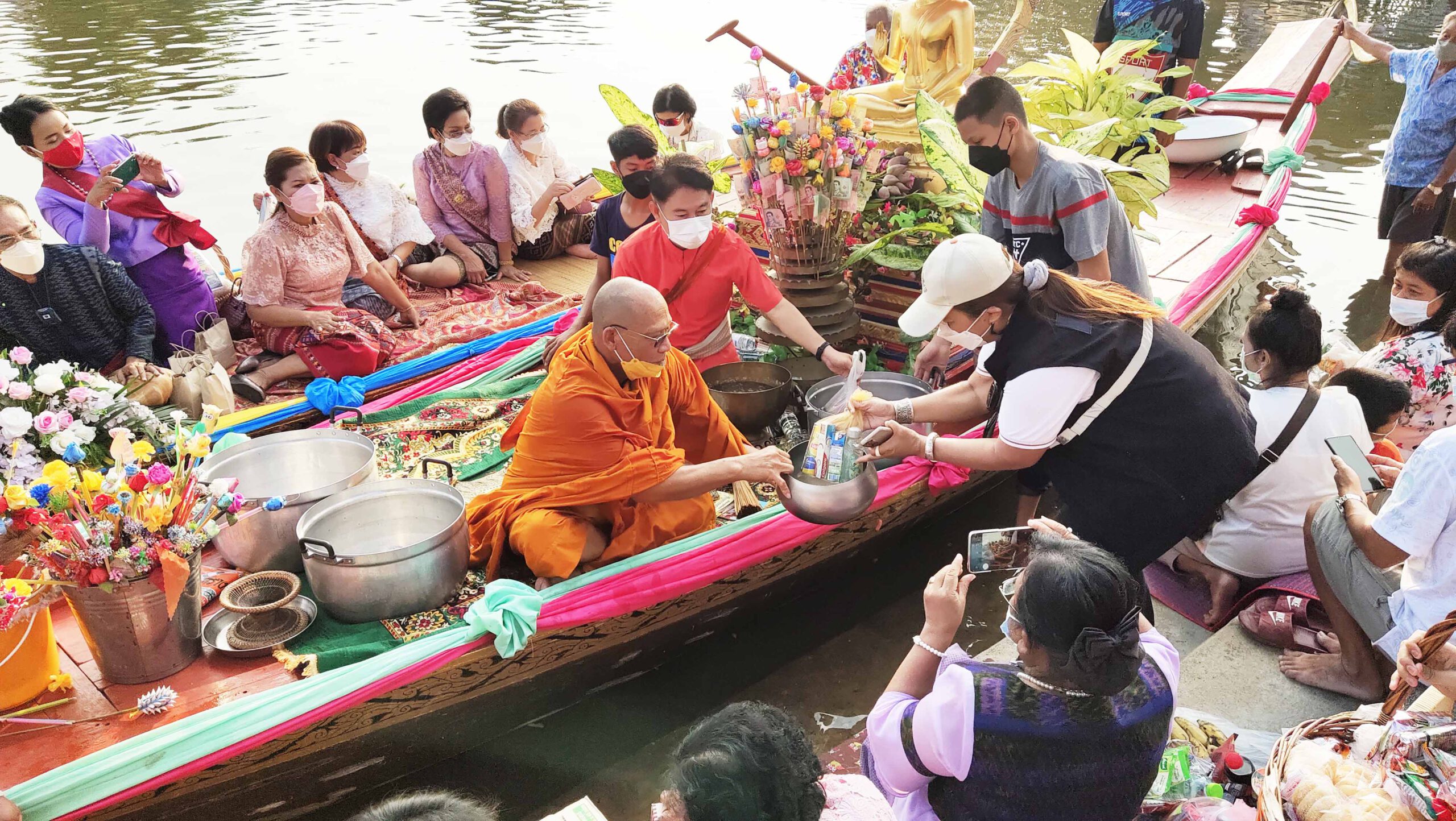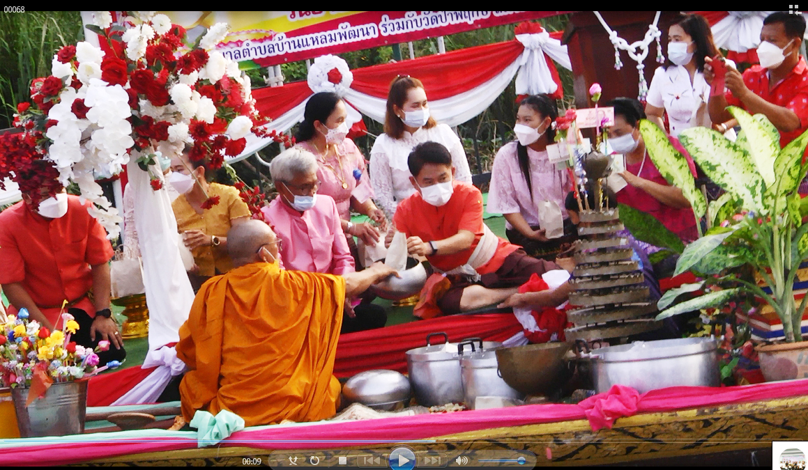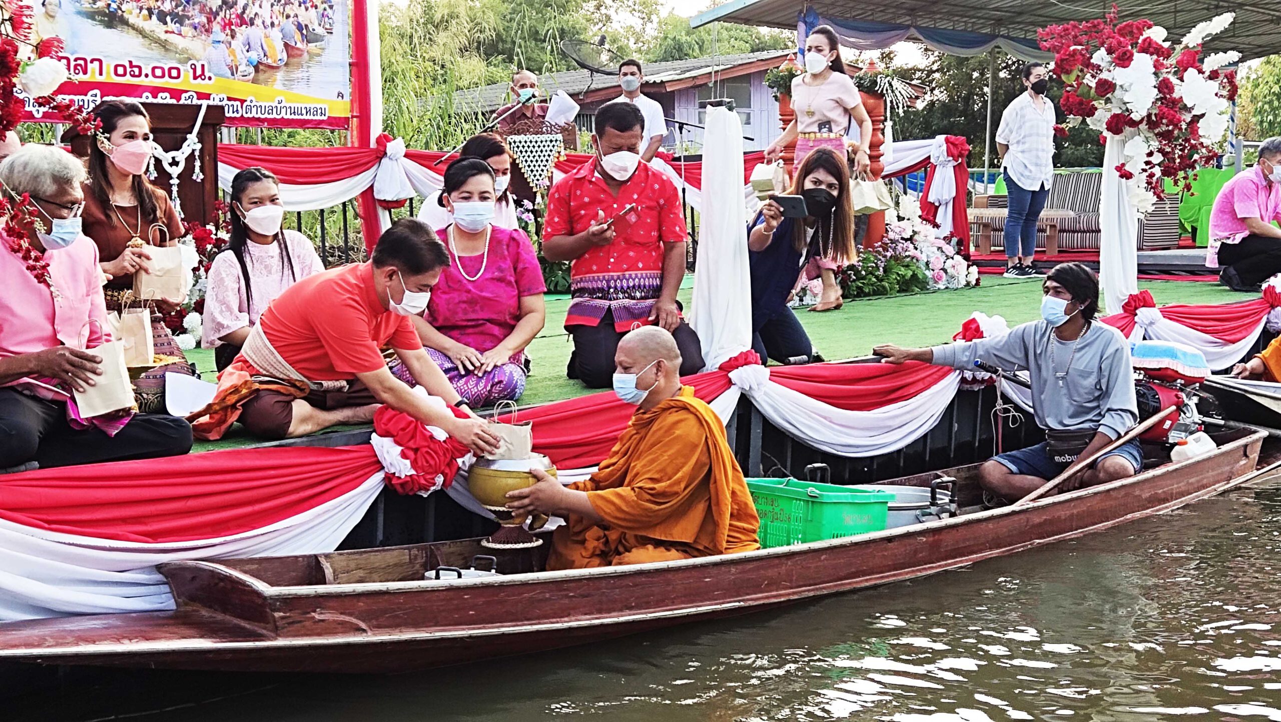 สุพรรณบุรี เทศบาลตำบลบ้านแหลมสืบสานงานประเพณีตักบาตรกลางน้ำ1เดียวของไทย
