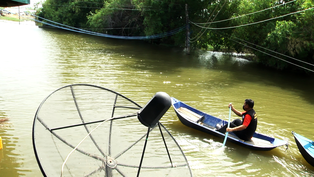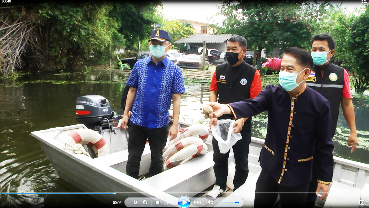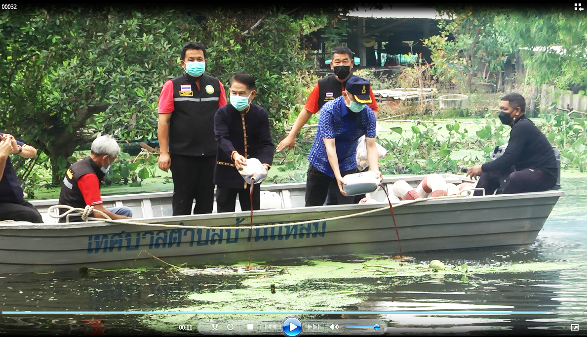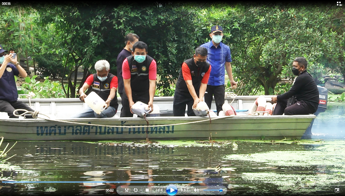 จากนั้นนายณัฐภัทร สุวรรณประทีป ผู้ว่าราชการจังหวัดสุพรรณบุรี พร้อมคณะได้ลงเรือสำรวจสภาพน้ำที่ท่วมขังพื้นที่และบ้านเรือนประชาชนหมู่ 2-3 บ้านป่าพฤกษ์ ต.บ้านแหลมตรวจ ขณะนี้มีน้ำเน่าเสียส่งกลิ่นเหม็นรบกวนสร้างความเดือดร้อนให้กับชาวบ้าน โดยผู้ว่าราชการจังหวัดสุพรรณบุรีและคณะได้ร่วมกันนำสาร EM และลูกบอล EM ราดลงในน้ำที่เน่าเสียเพื่อช่วยประสภาพและเติมค่าอ๊อกซิเจนในน้ำลดความเดือดของชาวบ้าน