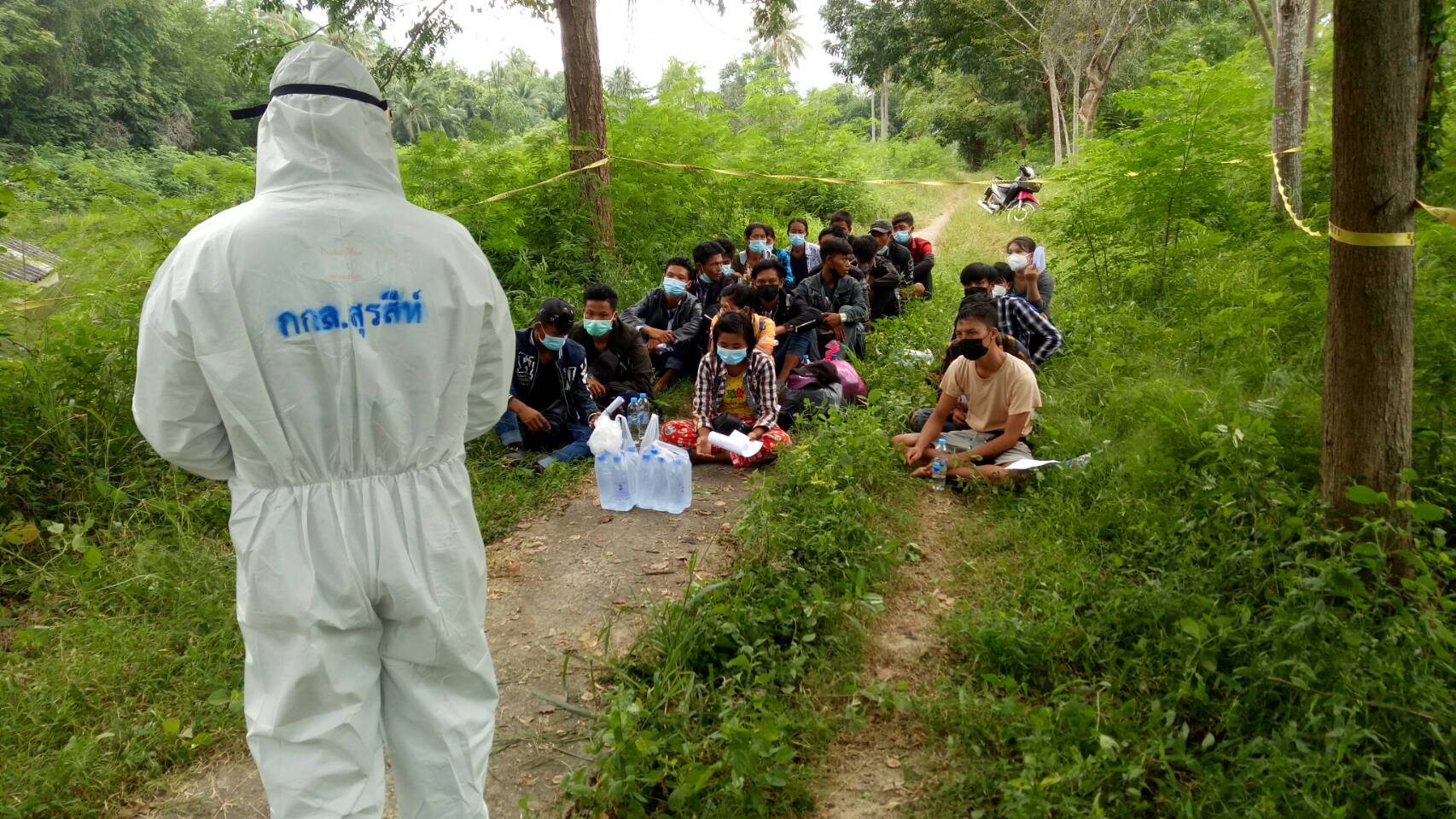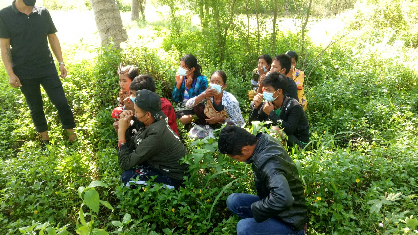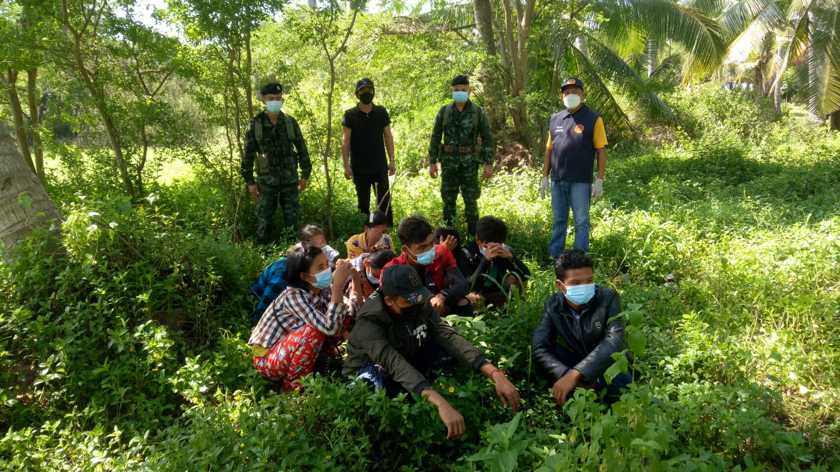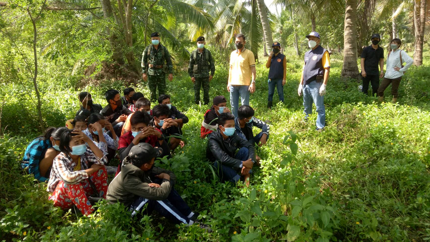 แต่กลุ่มแรงงานได้แยกย้ายกันวิ่งหลบหนี้เข้าสวนมะพร้าวมุ่งหน้าไปชายทะเล ชาวบ้านในพื้นที่ช่วยกันแจ้งเบาะแส จึงประสานทหารชุดกองกำลังสุรสีห์ และ ตร.สภ.ห้วยยาง มาช่วยกันค้นหา สามารถทำการควบคุมได้ชุดแรก 7 คน แต่เมื่อสื่อสารไปกลับทำเป็นพูดภาษาอังกฤษไม่ได้ พูดภาษาไทยไม่ได้ จนกระทั่งเจ้าหน้าที่ออกปิดล้อมตระเวรรอบหมู่บ้านเข้าตรวจค้นในสวนมะพร้าวสามารถร่วมกันควบคุมได้เพิ่มเติมได้ทั้งหมด 23 คน แยกเป็นหญิง 7 คน ชาย 16 คน โดยประสานฝ่ายสาธารณสุขใช้ชุดตรวจ ATK เข้าตรวจโควิด-19 เบื้องต้นผลเป็นลบทั้งหมด และได้ควบคุมตัวส่งตัวให้ สภ.ห้วยยาง ดำเนินการตามกฎหมายต่อไป