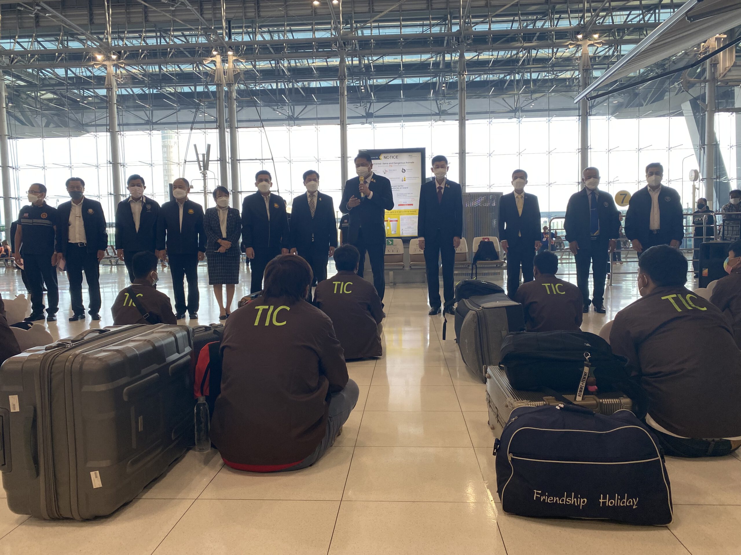 *****เมื่อเวลา 8.30น.วันที่ 23 พฤศจิกายน 2564 นายสุชาติ ชมกลิ่น รัฐมนตรีว่าการกระทรวงแรงงาน กล่าวให้โอวาทและให้กำลังใจแก่แรงงานไทย 120 คน ก่อนเดินทางทำงานภาคเกษตรในรัฐอิสราเอล ภายใต้โครงการ TIC โดยมีนายสุเทพ ชิตยวงษ์ เลขานุการรัฐมนตรีว่าการกระทรวงแรงงาน นางเธียรรัตน์ นะวะมะวัฒน์ โฆษกกระทรวงแรงงาน (ฝ่ายการเมือง) นายบุญชอบ สุทธมนัสวงษ์ ปลัดกระทรวงแรงงาน และนายไพโรจน์ โชติกเสถียร อธิบดีกรมการจัดหางาน ร่วมให้การต้อนรับ ณ ด่านตรวจคนหางาน ท่าอากาศยานสุวรรณภูมิ