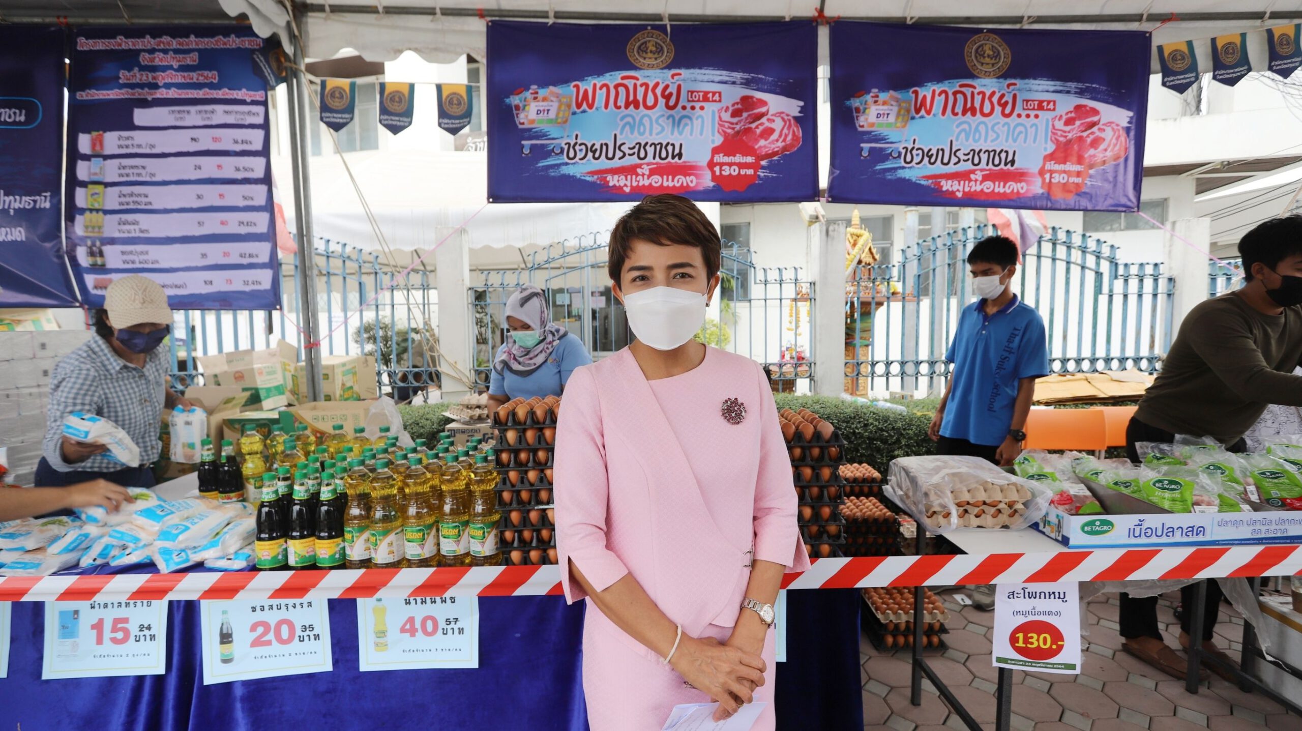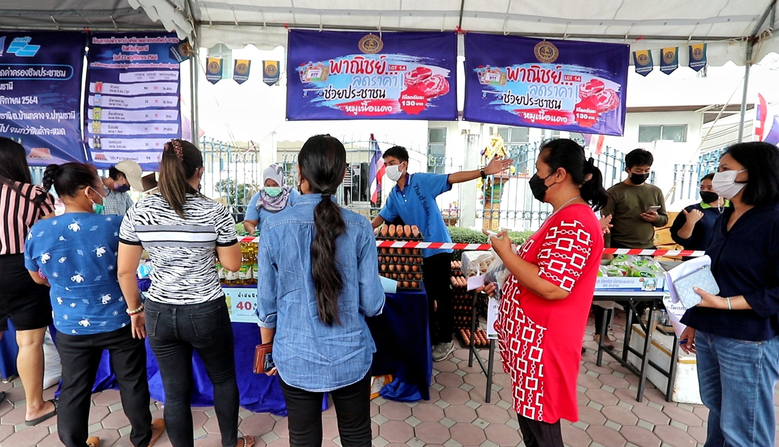 นางรวีพรรณ ช้างเย็นฉ่ำ พาณิชย์จังหวัดปทุมธานี เปิดเผยว่า ทางสำนักงานพาณิชย์จังหวัดปทุมธานี ได้จัดโครงการหมูพาณิชย์ ลดราคา ช่วยประชาชน LOT 14 ขึ้น โดยจำหน่ายหมูเนื้อแดง ต่ำกว่าราคาท้องตลาด ราคาไม่เกิน กก.ละ 130 บาท เพื่อช่วยลดค่าครองชีพให้กับประชาชน ช่วงสถานการณ์โควิด-19 ประกอบกับช่วงนี้ราคาหมูชำแหละปรับตัวสูงขึ้น สำนักงานพาพาณิชย์จังหวัดปทุมธานี จึงได้ร่วมกันจัดทำโครงการตามนโยบายของนายจุรินทร์ ลักษณวิศิษฏ์ รองนายกรัฐมนตรี และรัฐมนตรีว่าการกระทรวงพาณิชย์ ที่ได้ออกนโยบายควบคุมราคาเนื้อหมู เพื่อเป็นการคุ้มครองผู้บริโภค โดยประชาชนสามารถซื้อเนื้อหมูราคาที่เป็นธรรมได้ที่ร้านค้าที่เข้าร่วมโครงการฯ ส่วนร้านค้าทั่วไปที่ไม่ได้เข้าร่วมโครงการ กระทรวงพาณิชย์ได้มีการรณรงค์ให้ร้านค้าติดป้ายแสดงราคาให้ชัดเจน และหากผู้บริโภคเห็นร้านค้าไม่ติดป้ายแสดงราคาสามารถร้องเรียนได้ที่ สายด่วน 1569 ศูนย์รับเรื่องร้องเรียนราคาสินค้า สำนักงานพาณิชย์จังหวัดปทุมธานี