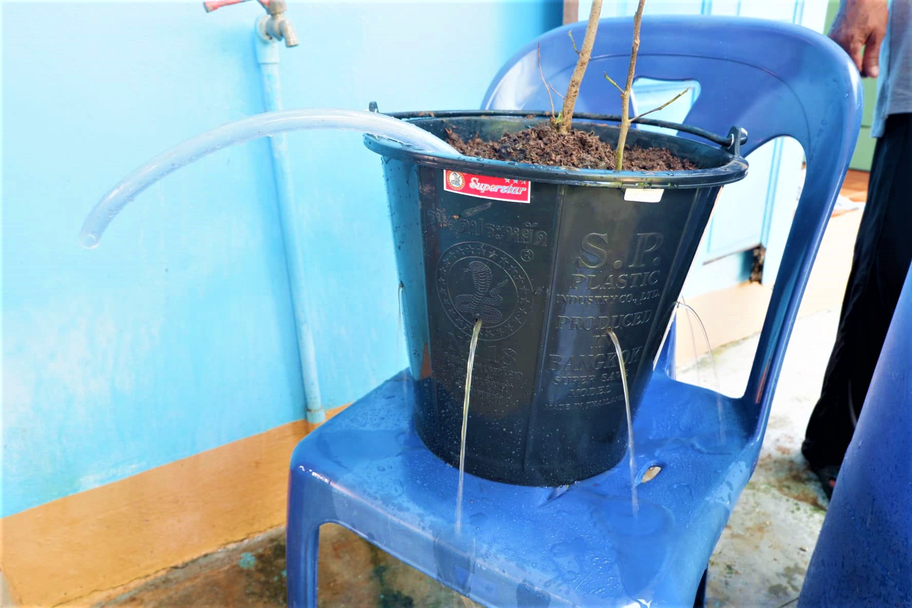 นางจันทิมา เชยกาญจน์ กล่าวว่า ความโดดเด่ดของ “กระถางแก้มลิง” สามารถปลูกพืชได้ในพื้นที่จำกัดดูแลง่าย รดน้ำครั้งเดียวก็ทำให้ต้นไม้อยู่ได้เกือบเดือนโดยไม่จำเป็นต้องรดน้ำบ่อย ซึ่งอุปกรณ์ที่ใช้ในการประดิษฐ์ก็สามารถหาได้ง่าย ประกอบด้วย ถังน้ำ ขนาด 14 ลิตร, กระถาง ขนาด 4 นิ้ว, ท่อPVC ยาว O.5 เมตร, ผ้าขี้ริ้ว, ขุยมะพร้าวสับ, ดินสำหรับปลูกจากนั้นใส่ดินปลูกพืชได้ตามปกติ โดย นำกระถางใบเล็กคว่ำลงในถังน้ำ เจาะรู้ด้านข้างถังน้ำความสูงเสมอขอบกระถางใบเล็ก ประมาณ 6 -8 รู เพื่อระบายน้ำ นำท่อเชื่อมต่อเข้าไปในกระถางที่คว่ำอยู่สำหรับใส่น้ำ จากนั้นใช้ผ้าขี้ริ้วปิดกันกระถางใบคว่ำ ใส่ขุยมะพร้าวสับหรือหินรอบๆกระถางใบเล็ก