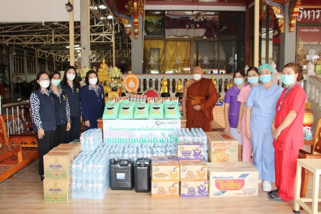 วันที่ 23 พฤศจิกายน 2564 เวลา 13.00 น. นางจิตติวรรณ สิทธิวิรัชธรรม นายกเหล่ากาชาดจังหวัดสิงห์บุรี /ประธานแม่บ้านมหาดไทยจังหวัดสิงห์บุรี พร้อมด้วยผู้ช่วยนายกเหล่ากาชาดจังหวัดสิงห์บุรี กรรมการเหล่ากาชาดจังหวัดสิงห์บุรี และสมาชิกแม่บ้านมหาดไทยจังหวัดสิงห์บุรี มอบเครื่องบริโภคและข้าวสาร 20 ถุง ๆ ละ 5 กิโลกรัม น้ำดื่ม จำนวน 50 แพ็ค พร้อมแอลกอฮอล์แกลลอน ๆ ละ 20 ลิตร จำนวน 2 แกลลอน ให้กับบุคลากร และผู้ป่วยในศูนย์ฟื้นฟูผู้ป่วยโควิดก่อนกลับบ้าน ณ วัดโพธิ์แก้วนพคุณ